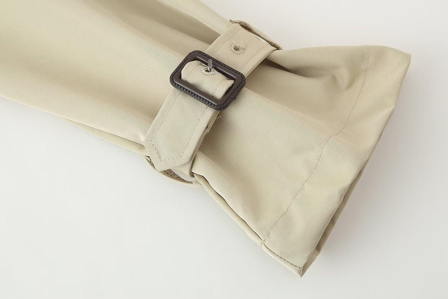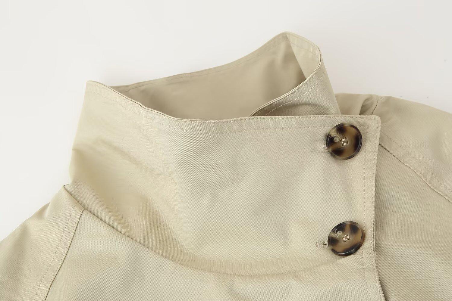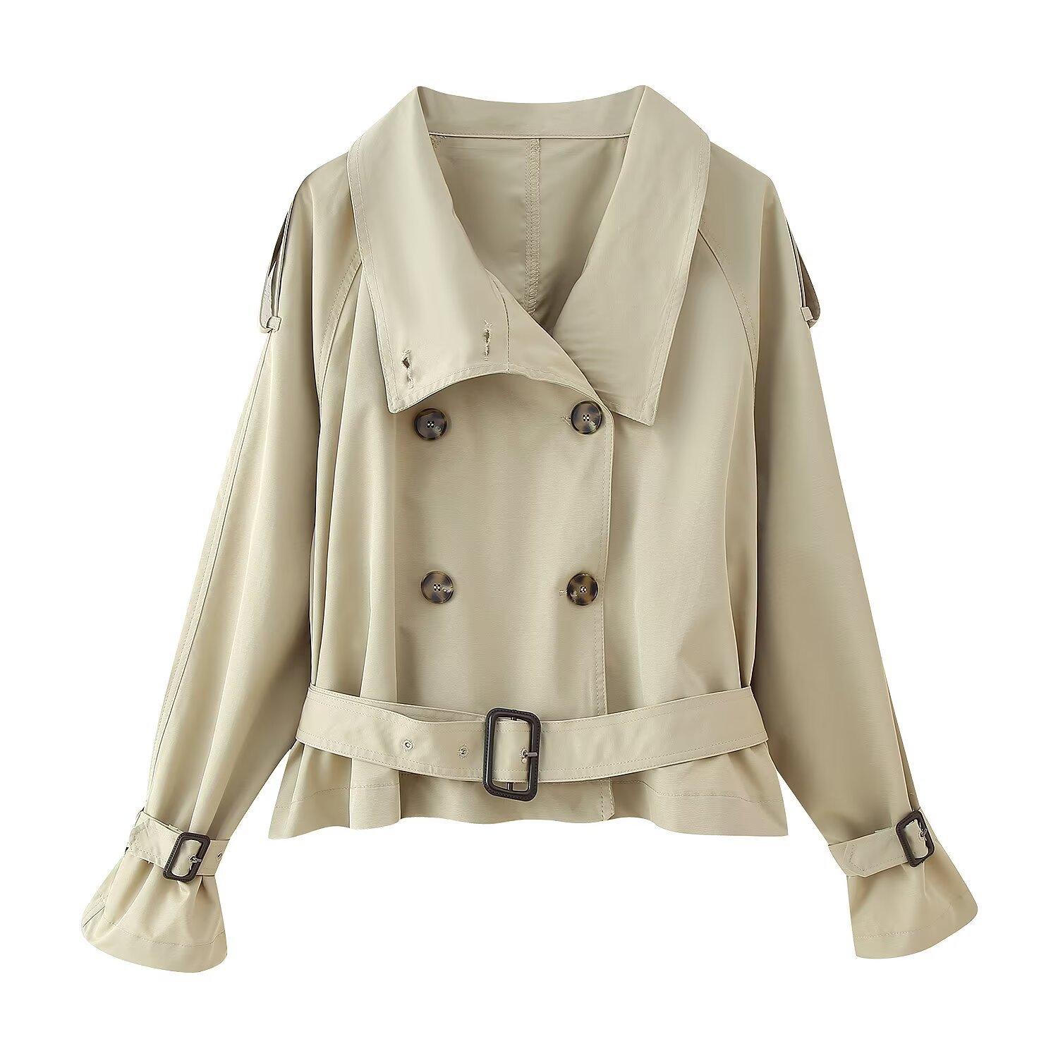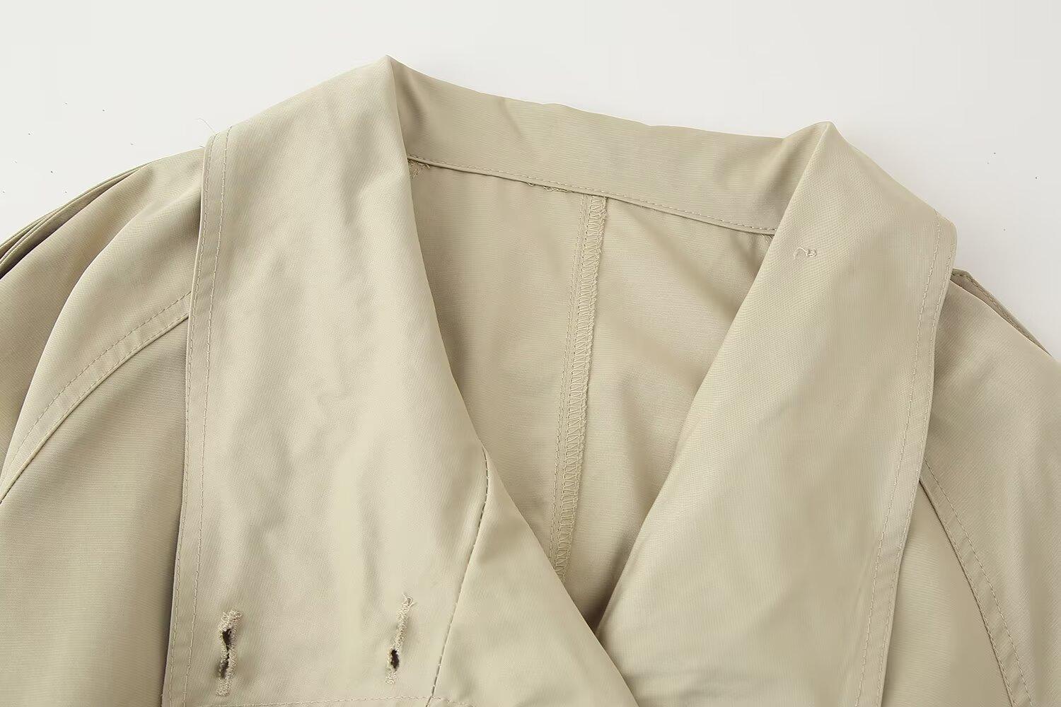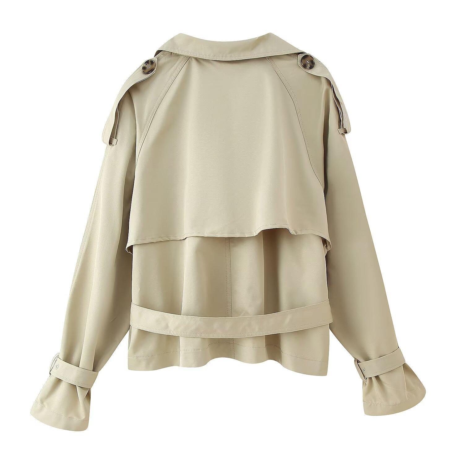 Venta al por Mayor Transfronteriza Estilo Europeo y Americano Moda Primavera y Otoño 2025 Chaqueta Cortavientos de Sarga Cruzada con Cinturón y Doble Botonadura para Mujer M6116