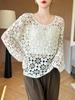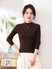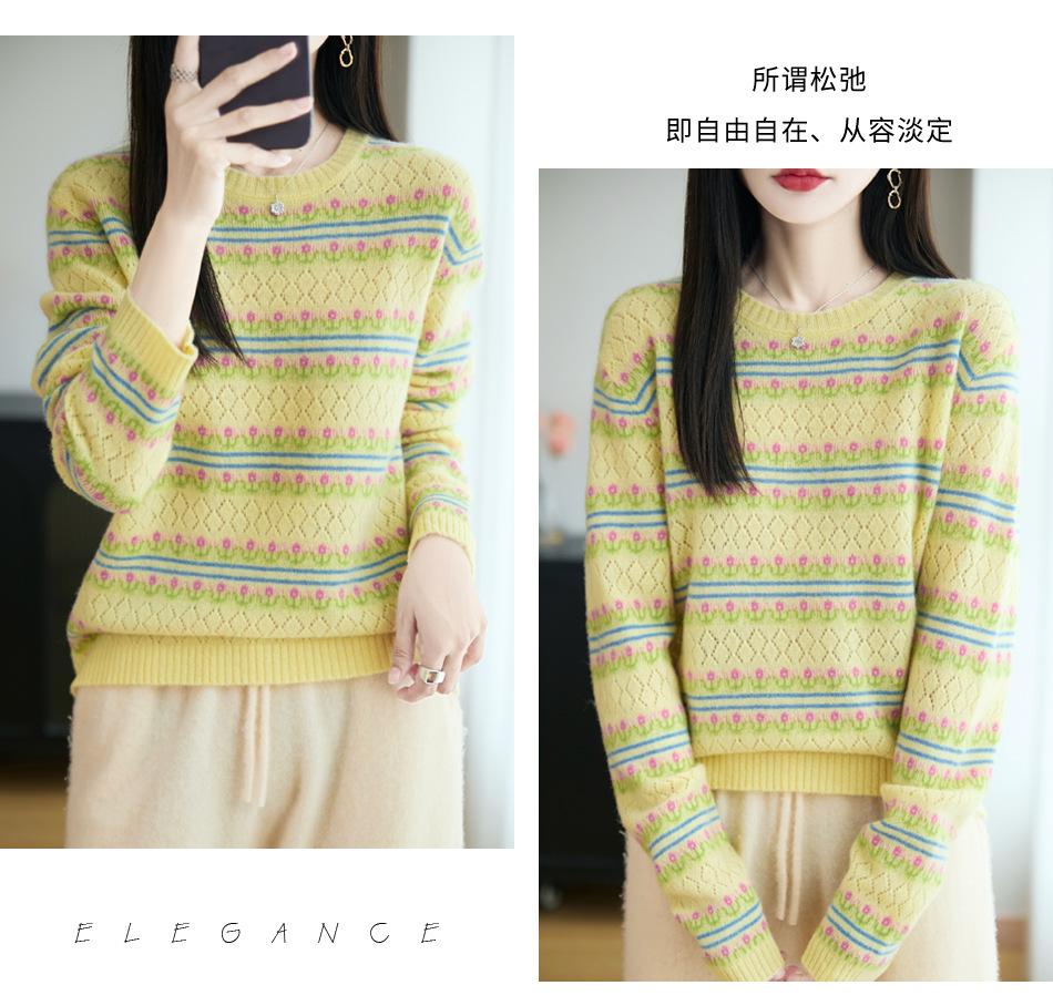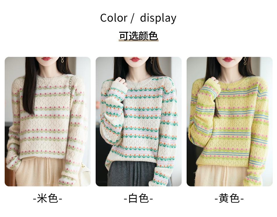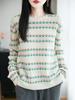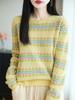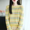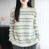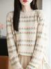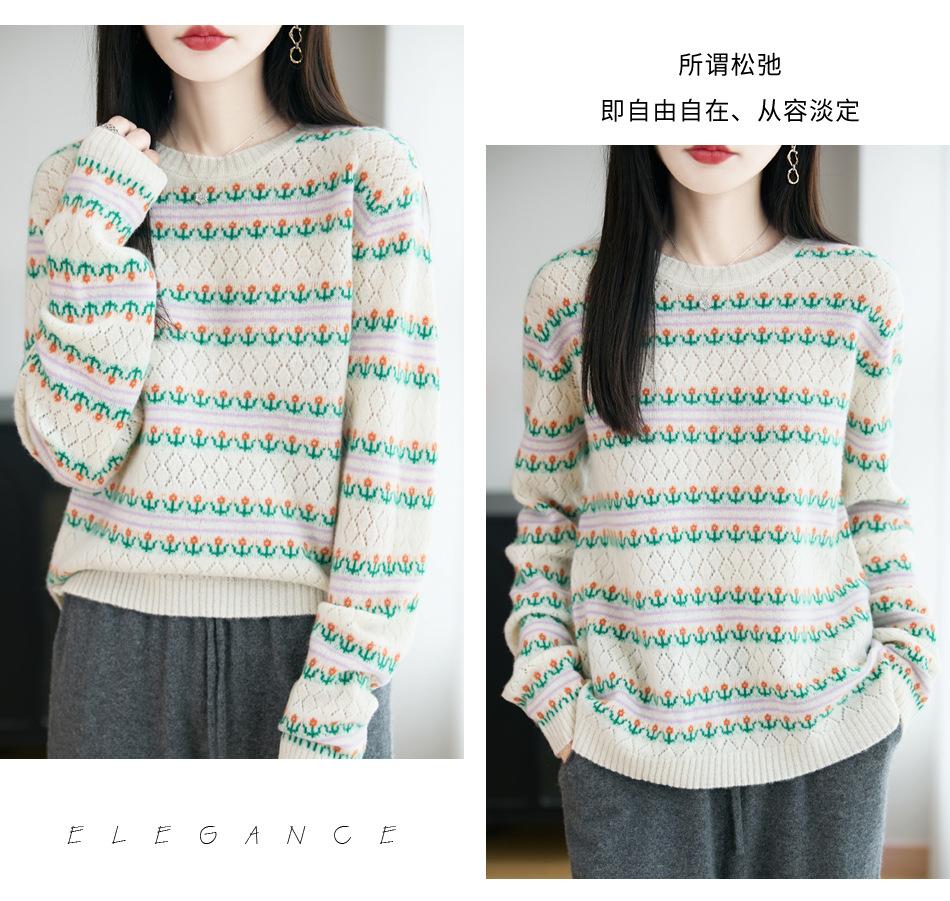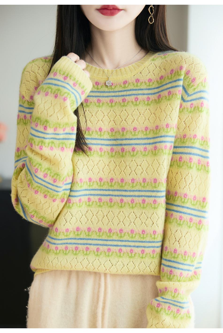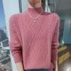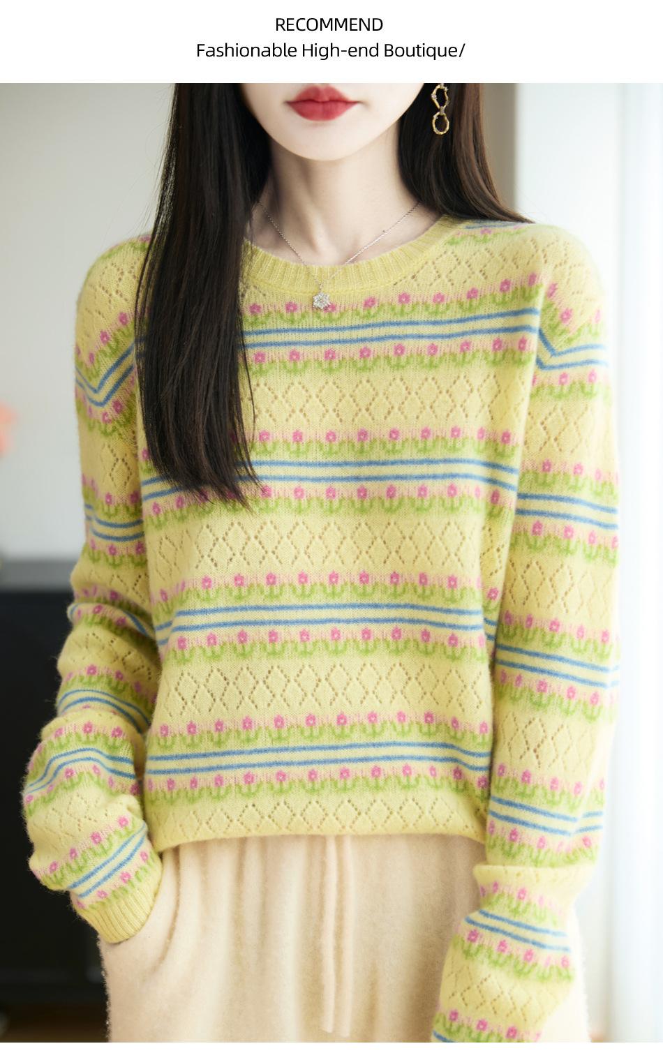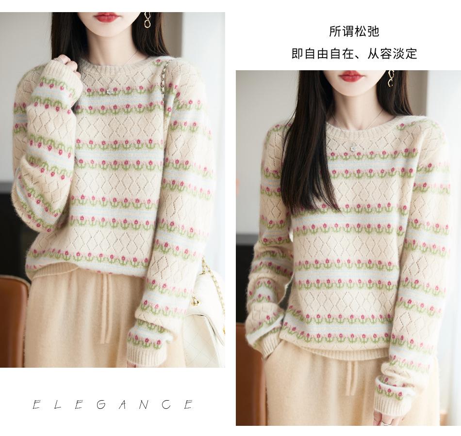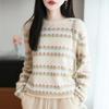 Otoño/Invierno 2025 Nuevo Suéter Tejido de Cuello Redondo de Lana Pura Manga Larga Jacquard Calado Diseño Suelto Sentido Capa Base Top Mujer
