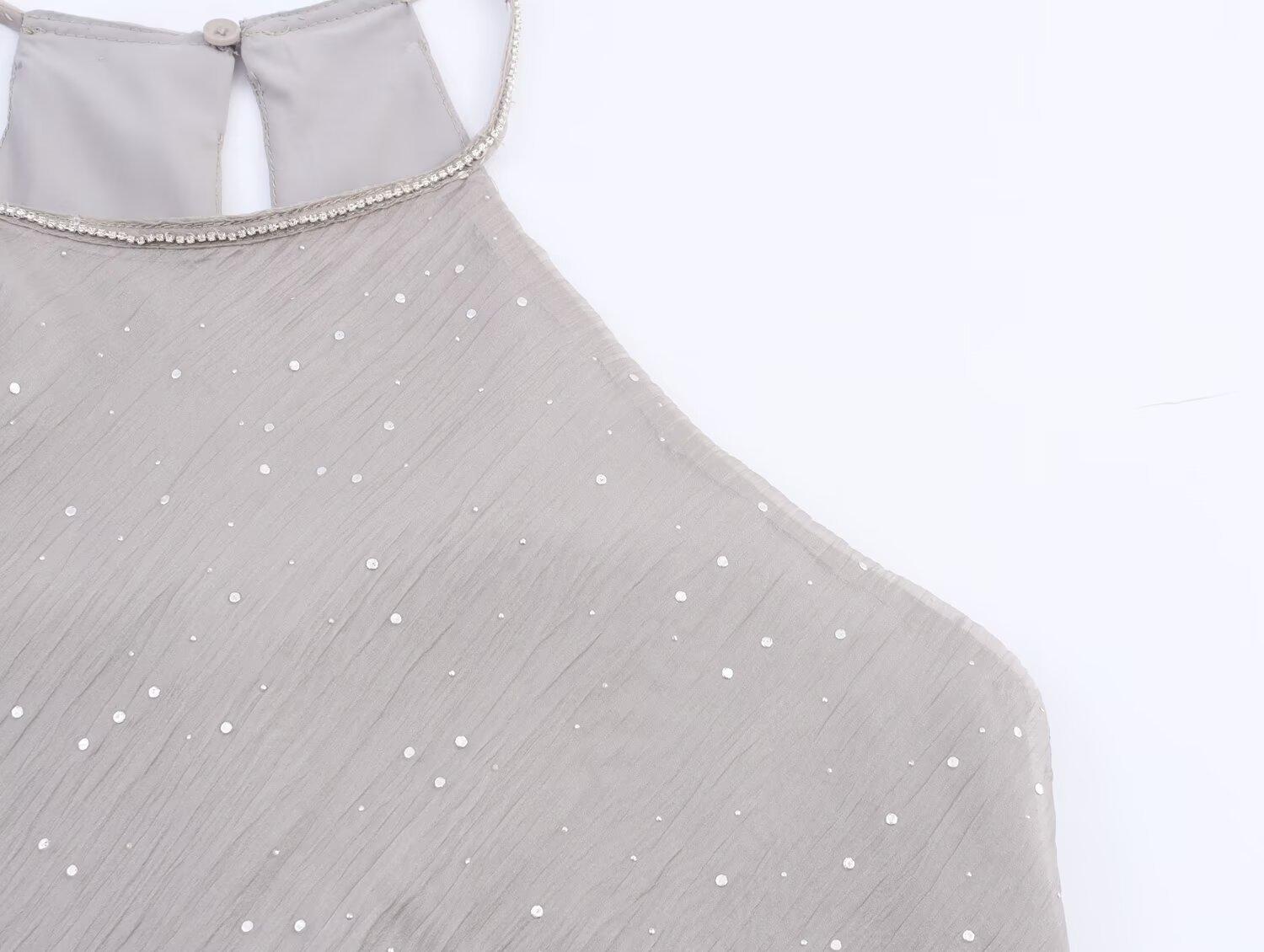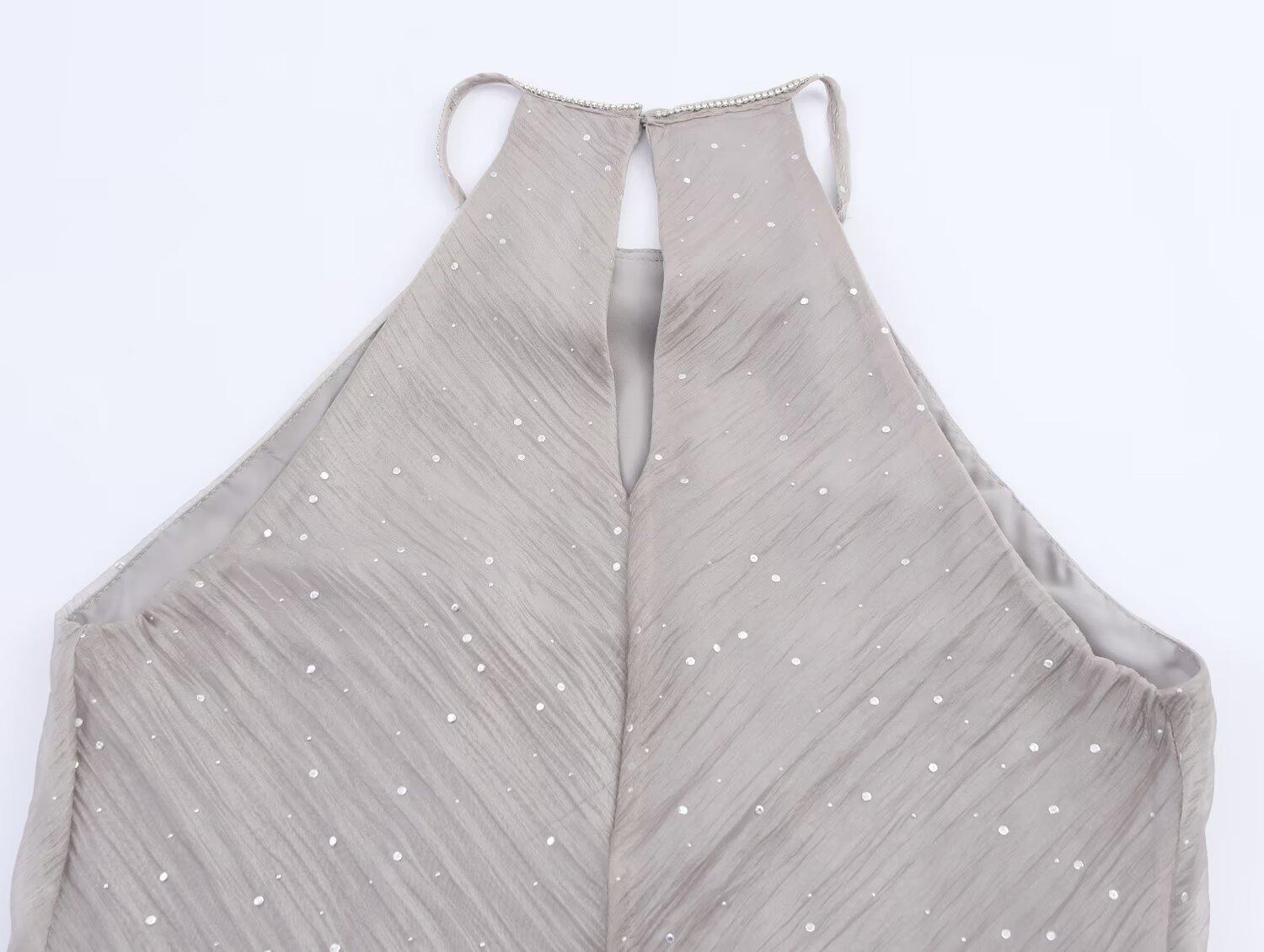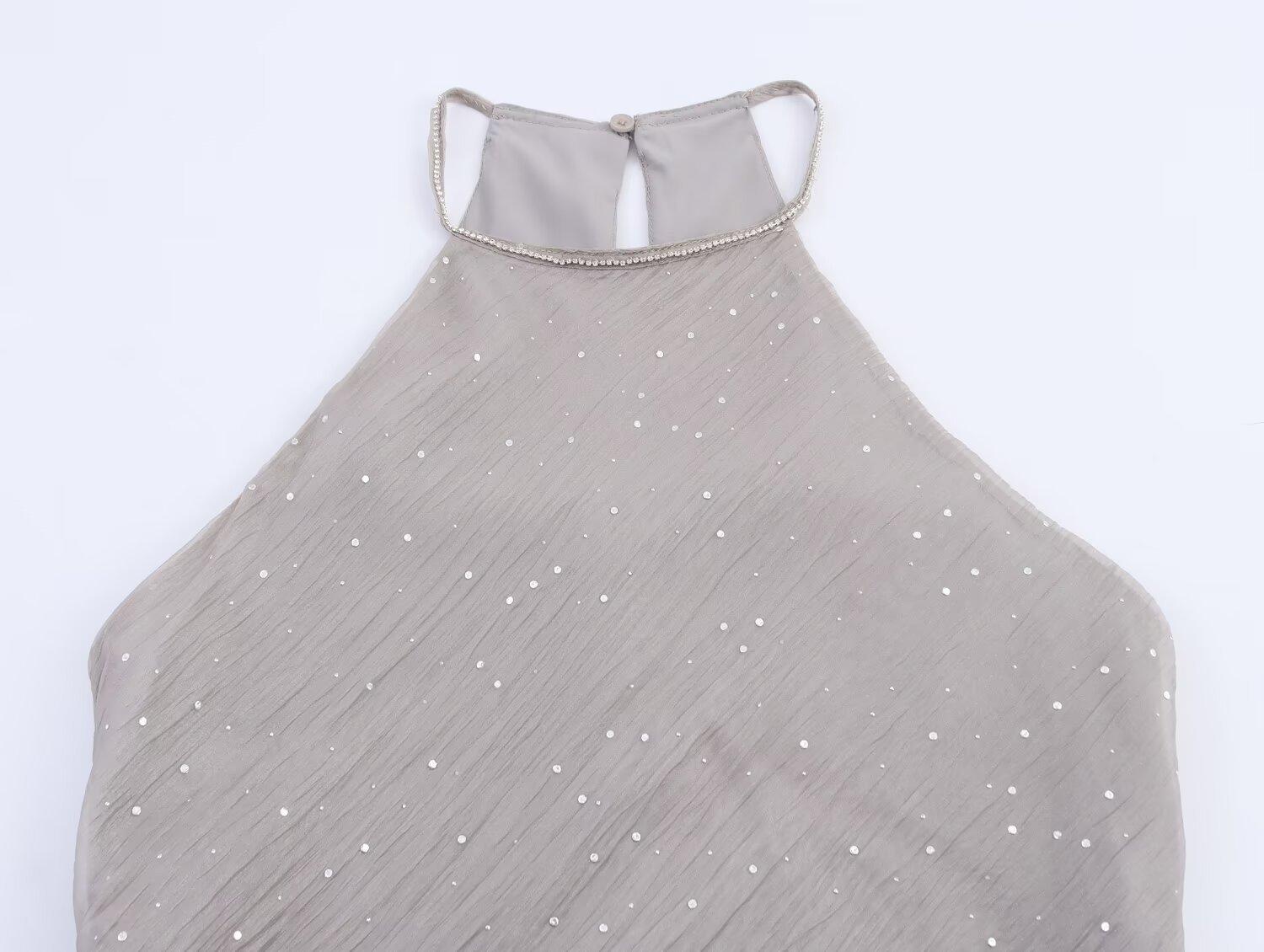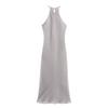 Ropa Europea y Americana Transfronteriza Vestido Midi Popular Brillante con Cuello Halter