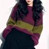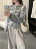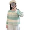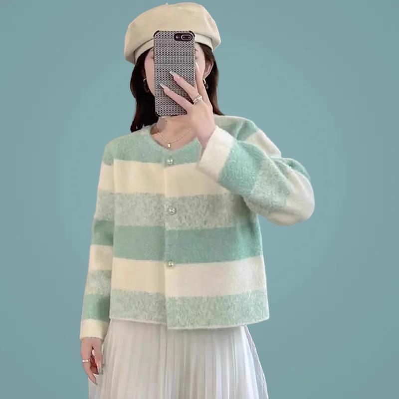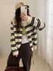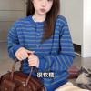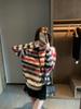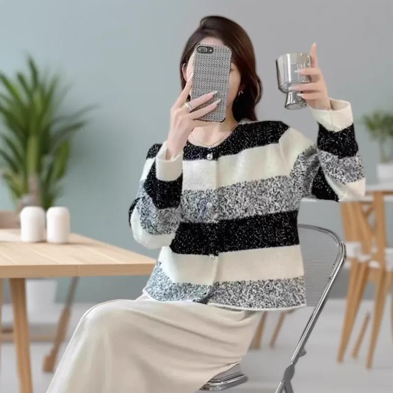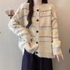 Cárdigan de Punto a Rayas con Bloque de Color Estilo Coreano para Mujer 2025 Otoño/Invierno Nuevo Estilo Relajado Cuello Redondo Suéter Holgado Abrigo