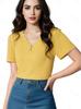 Nueva playera de manga corta de seda de hielo para mujer, holgada, de manga corta, coreana, con botones, cuello en V, top, camisa básica de punto, transpirable