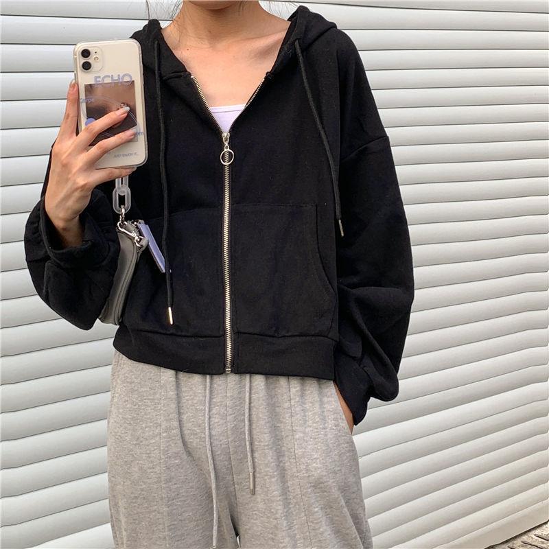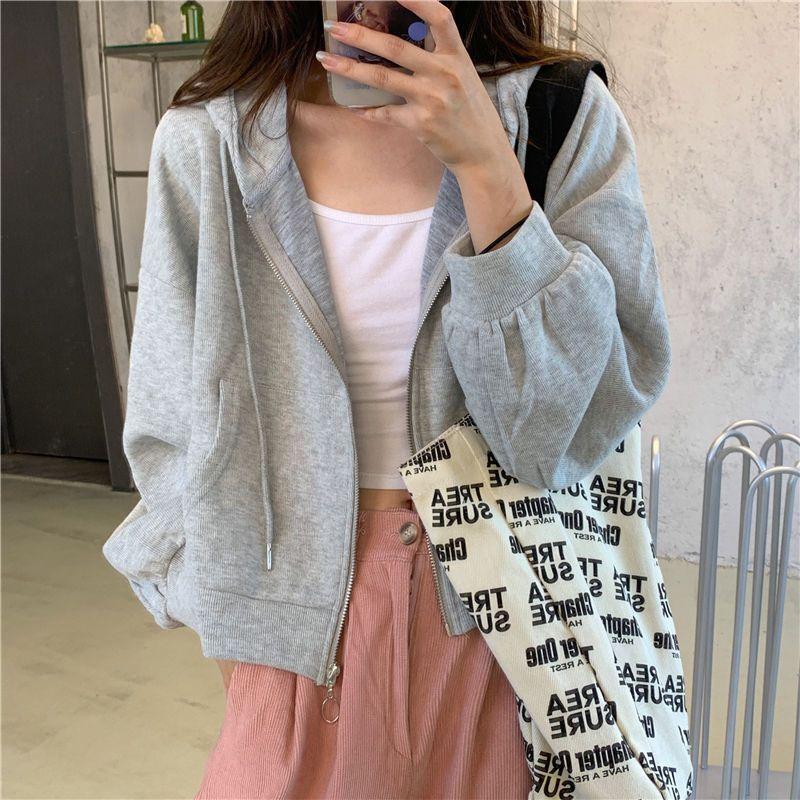 Sudadera Cárdigan con Capucha para Mujer Suelta 2025 Nuevo Principios de Otoño Nuevo Producto Adelgazante Versátil Chaqueta Corta Petite