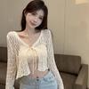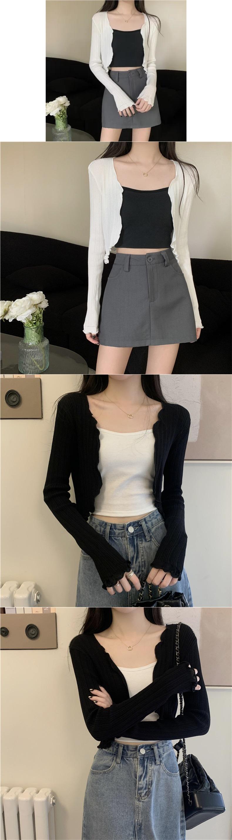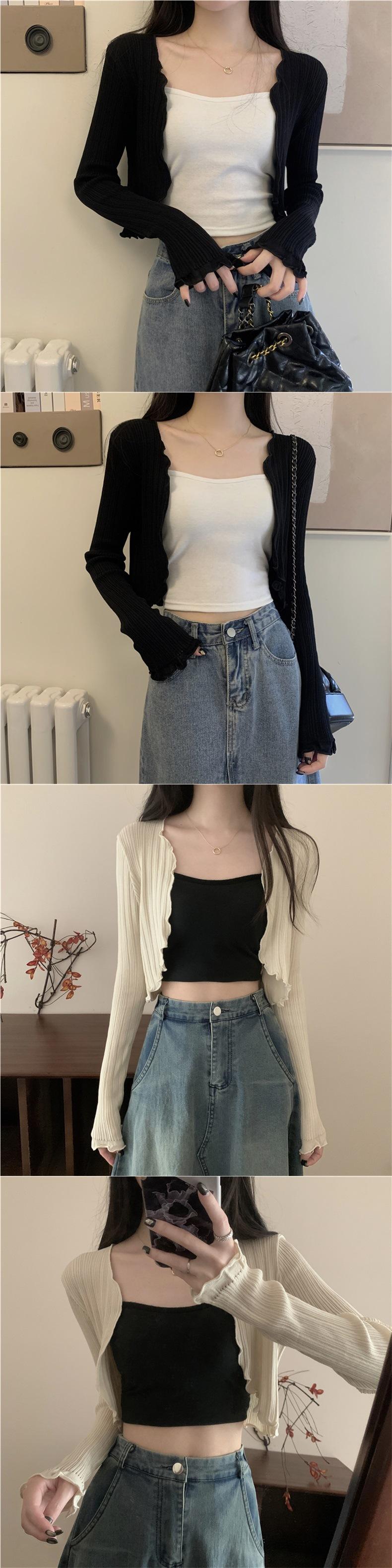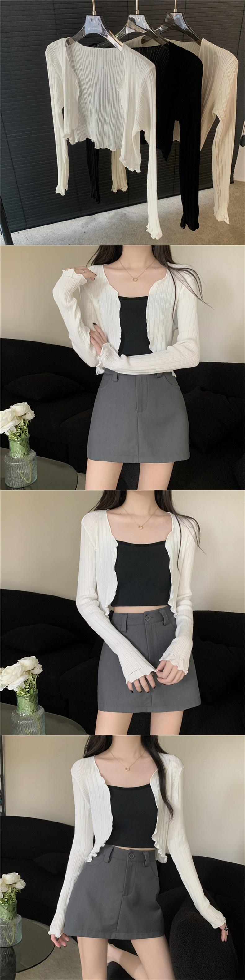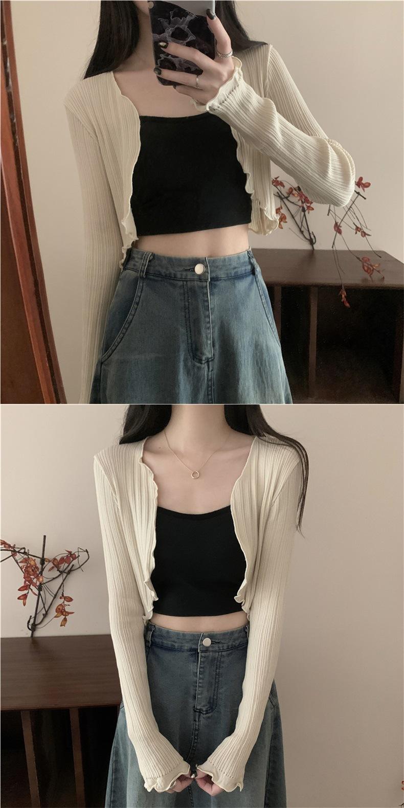 5736# Cárdigan Corto con Borde de Volante Protección Solar para Mujer Chal de Punto de Seda de Hielo Camisola Ropa Exterior Cubre Traje Chaqueta Corta a la Moda
