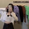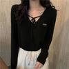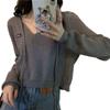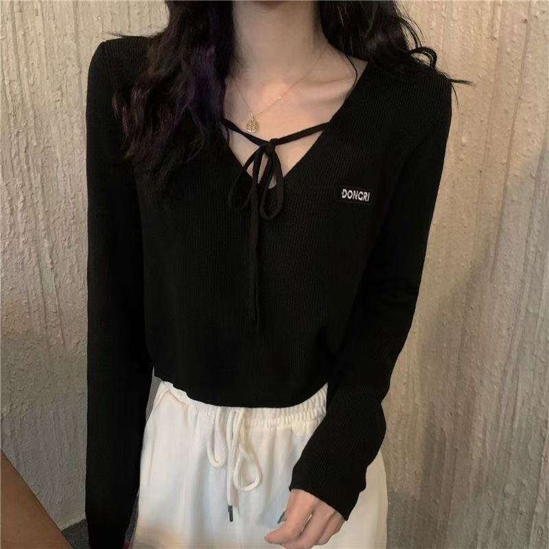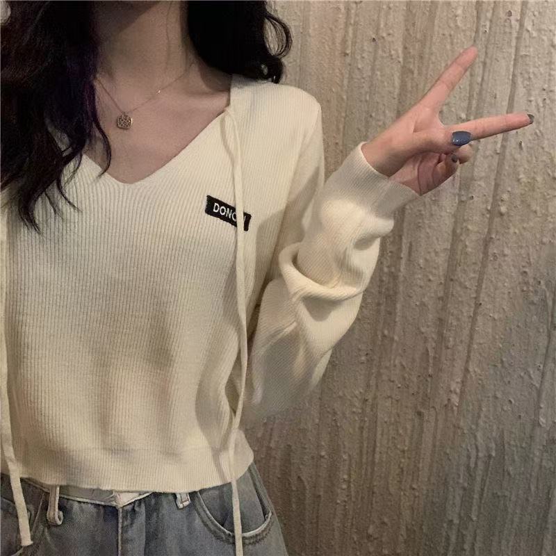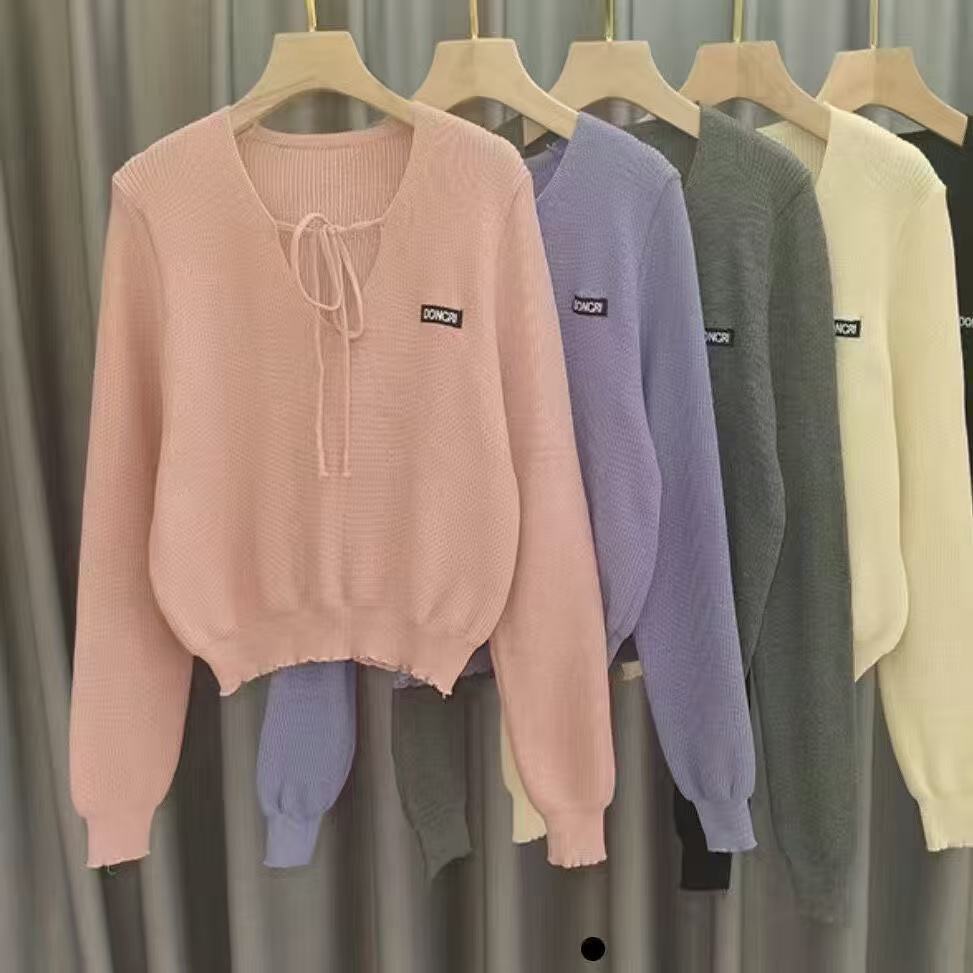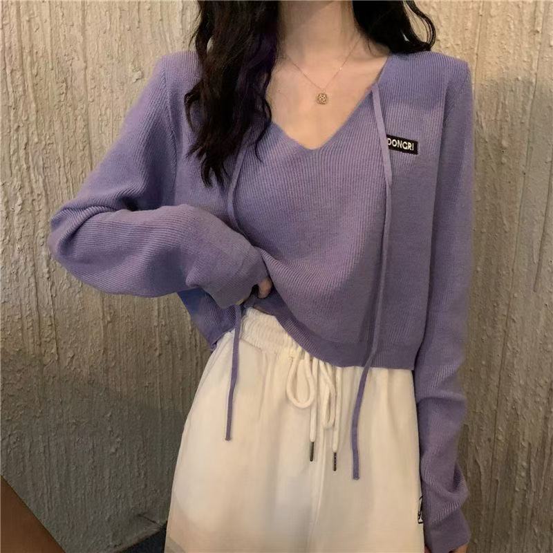 2025 Nuevo Otoño Primavera Estilo Coreano Suelto Versátil Cuello en V Lazado Manga Larga Top de Punto Morado Top de Mujer ins Suéter Tendencia