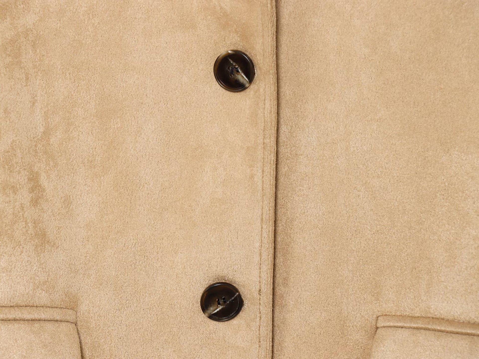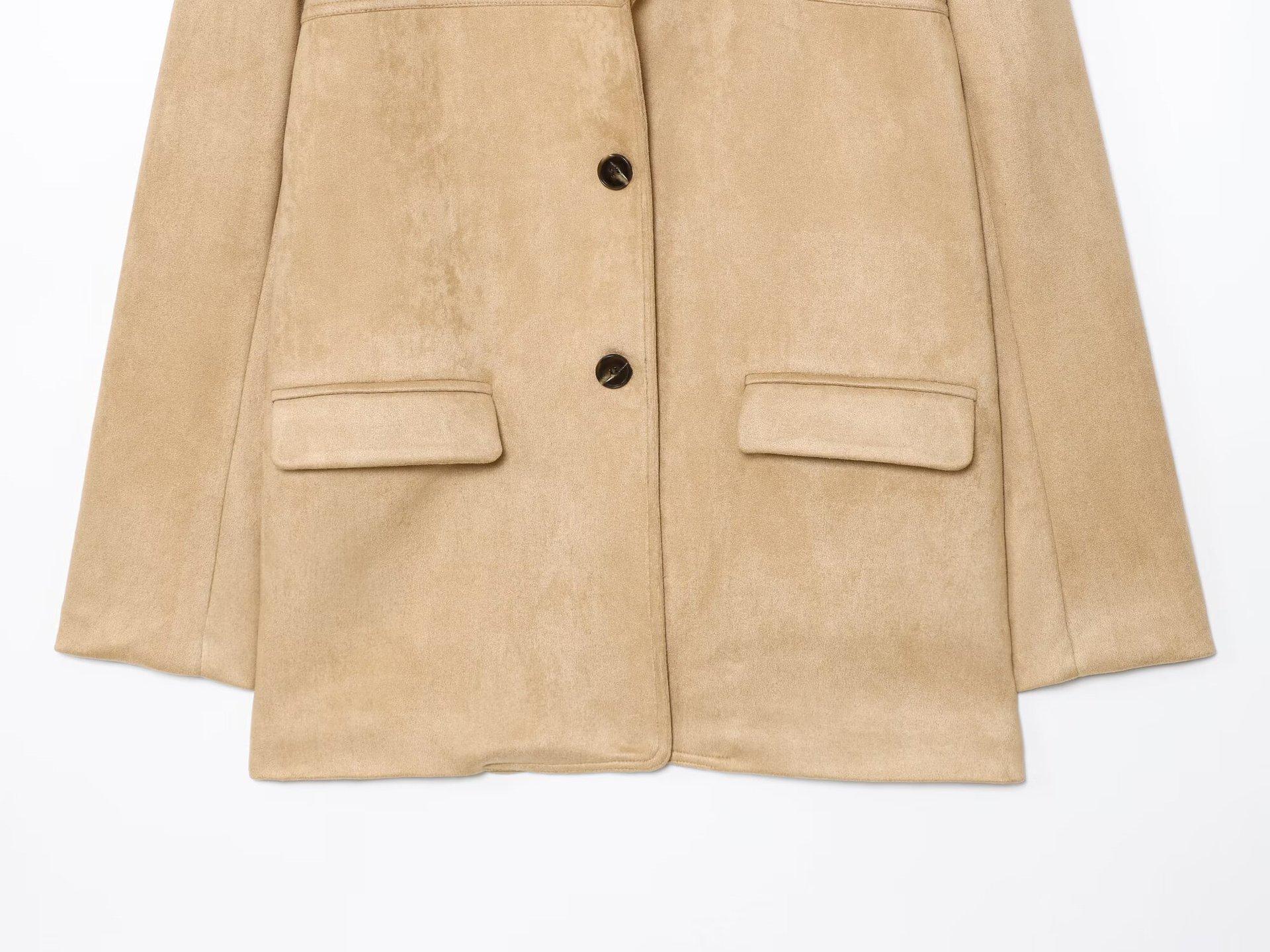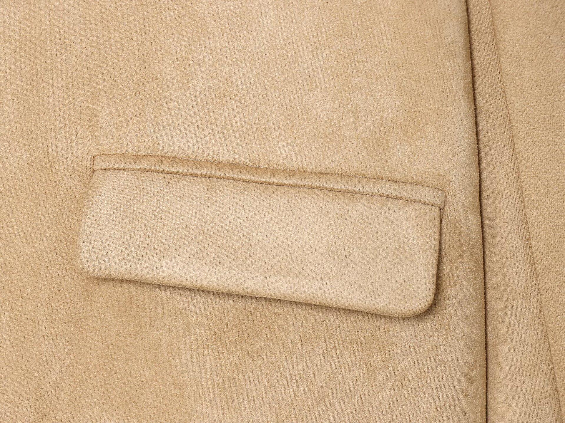 Ropa de Mujer de Comercio Exterior Transfronterizo Otoño 2025 Estilo Europeo y Americano Solapa Manga Larga Doble Bolsillo Chaqueta de Traje de Gamuza Mujer B69325