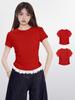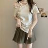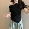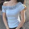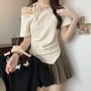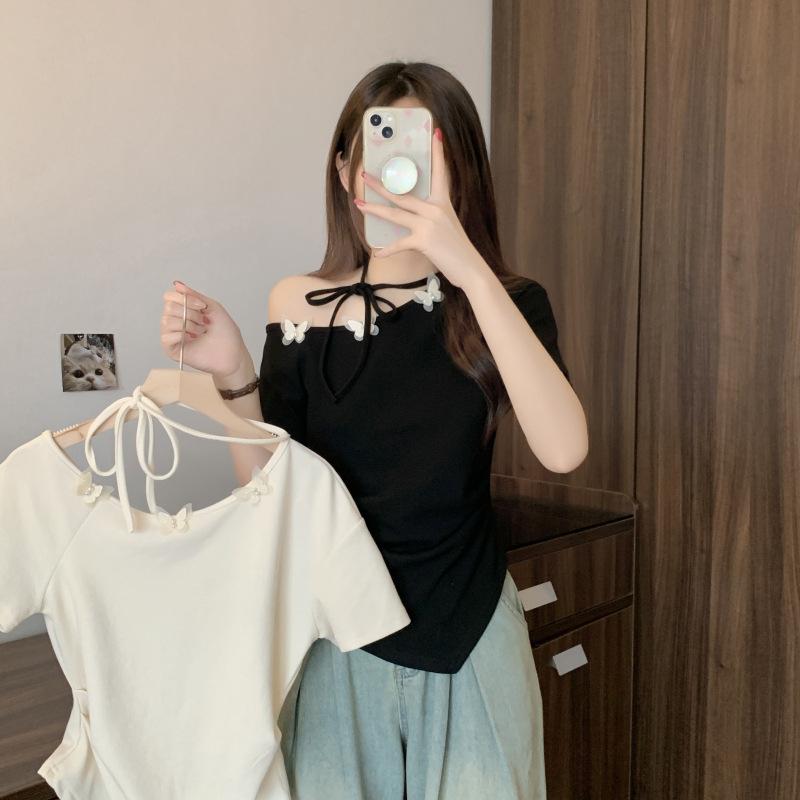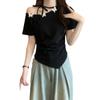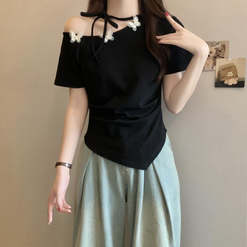 Deseo Puro Sexy Ajustado de Hombro Delgado con Cordones Camiseta de Manga Corta Verano Nuevo Nicho Irregular Top de Chica Caliente