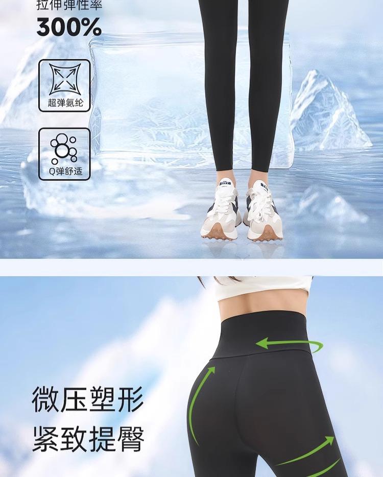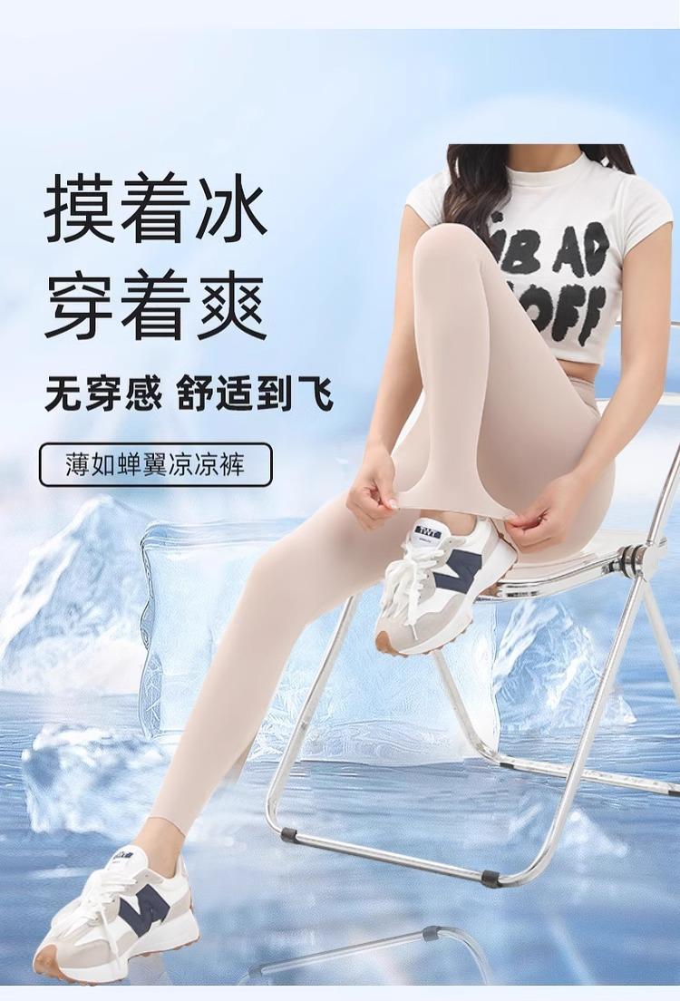 Leggings Ultrafinas para Mujer Verano Ropa Exterior Nueva Pantalones Máscara Seda de Hielo Talla Grande Cintura Alta Yoga Deportes Piel de Leche Pantalones Tiburón