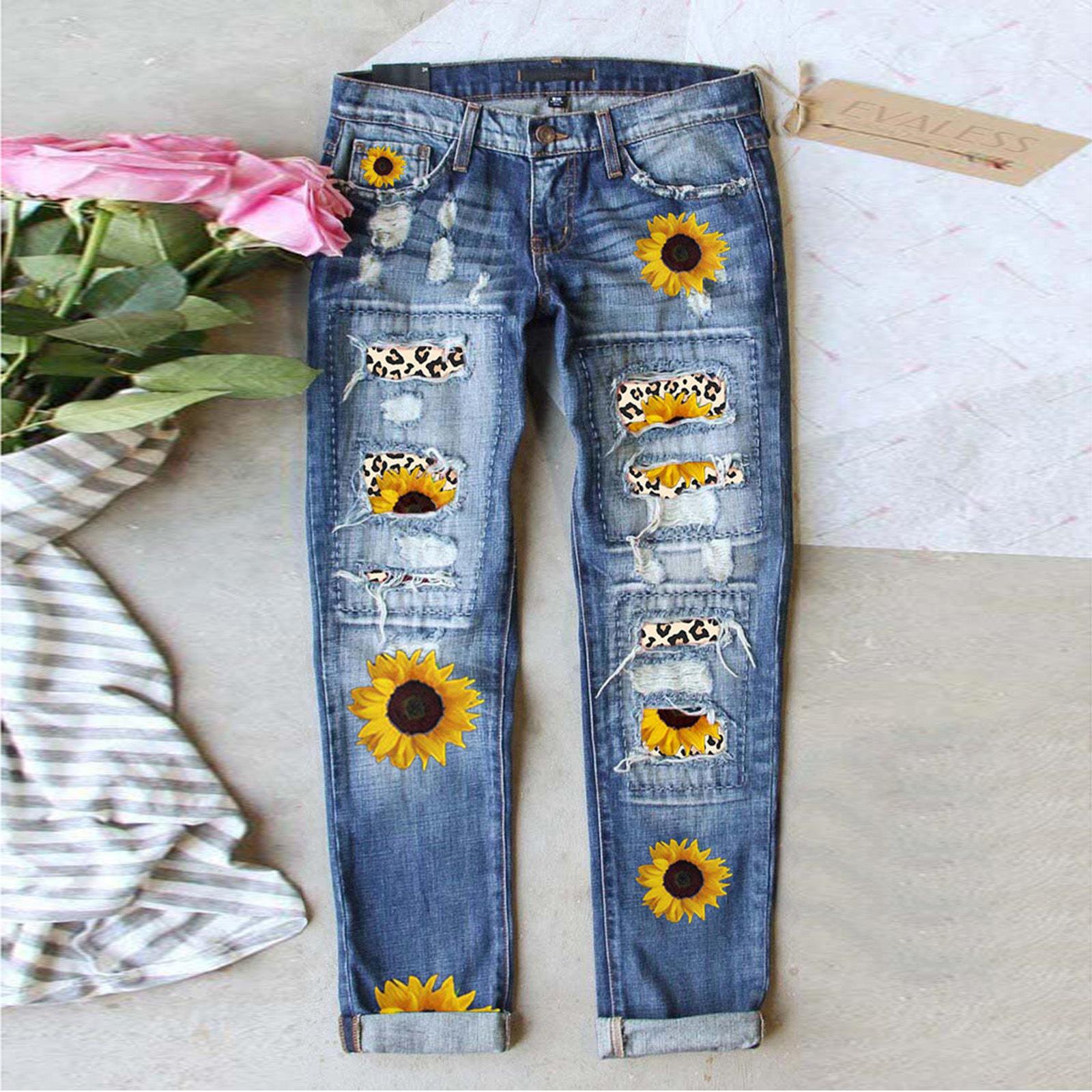 Pantalones de mezclilla estampados de moda y corte slim para mujer, suministro transfronterizo de comercio exterior europeo y americano