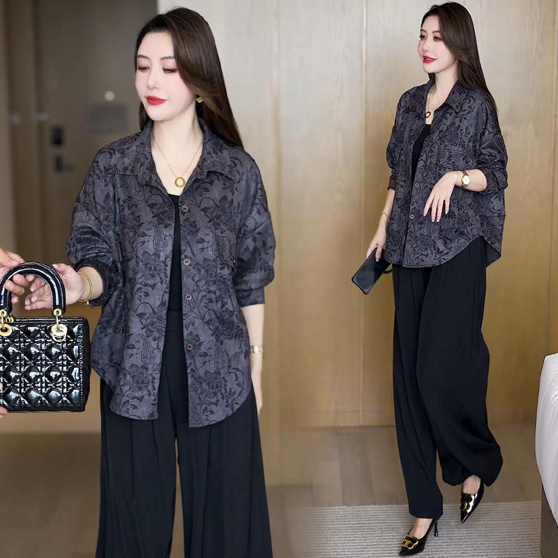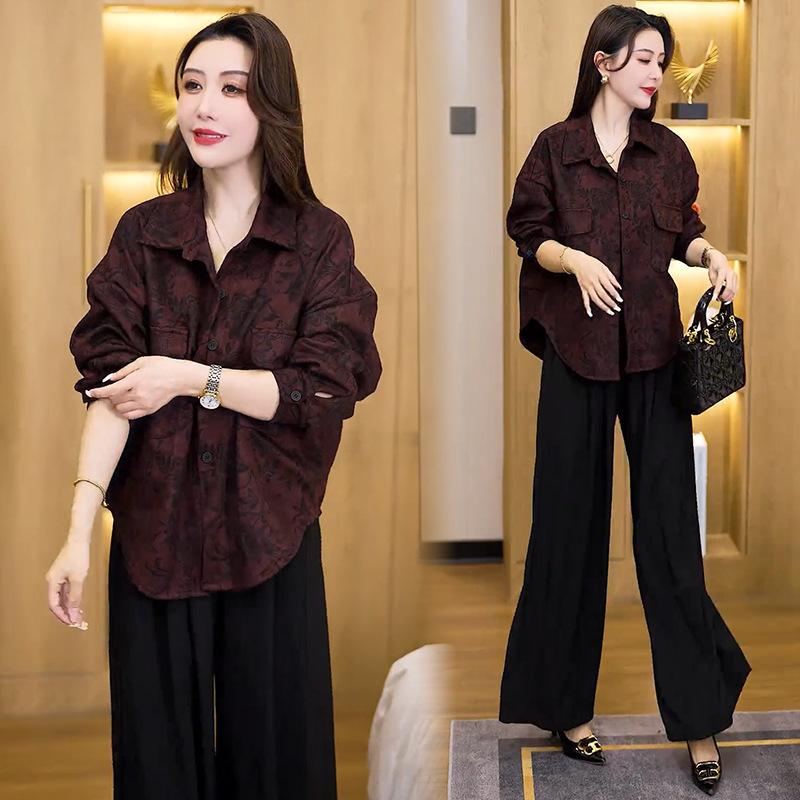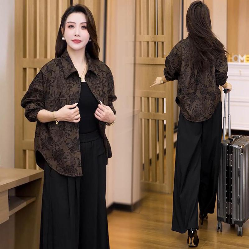 Camisa Estampada de Moda Chaqueta Corta Mujer 2025 Otoño Nuevo Estilo Estilo Extranjero Adelgazante Cuello Vuelto Manga Larga Casual Temperamento Top