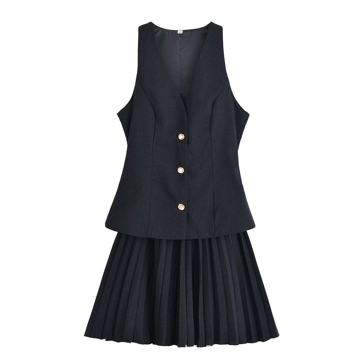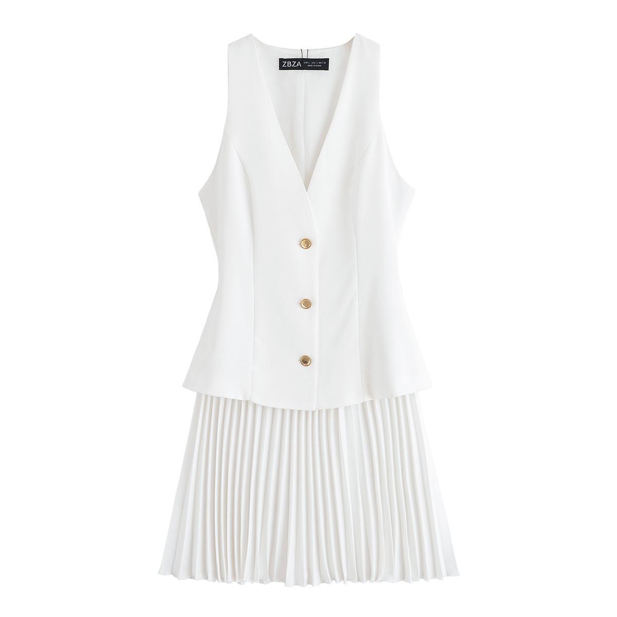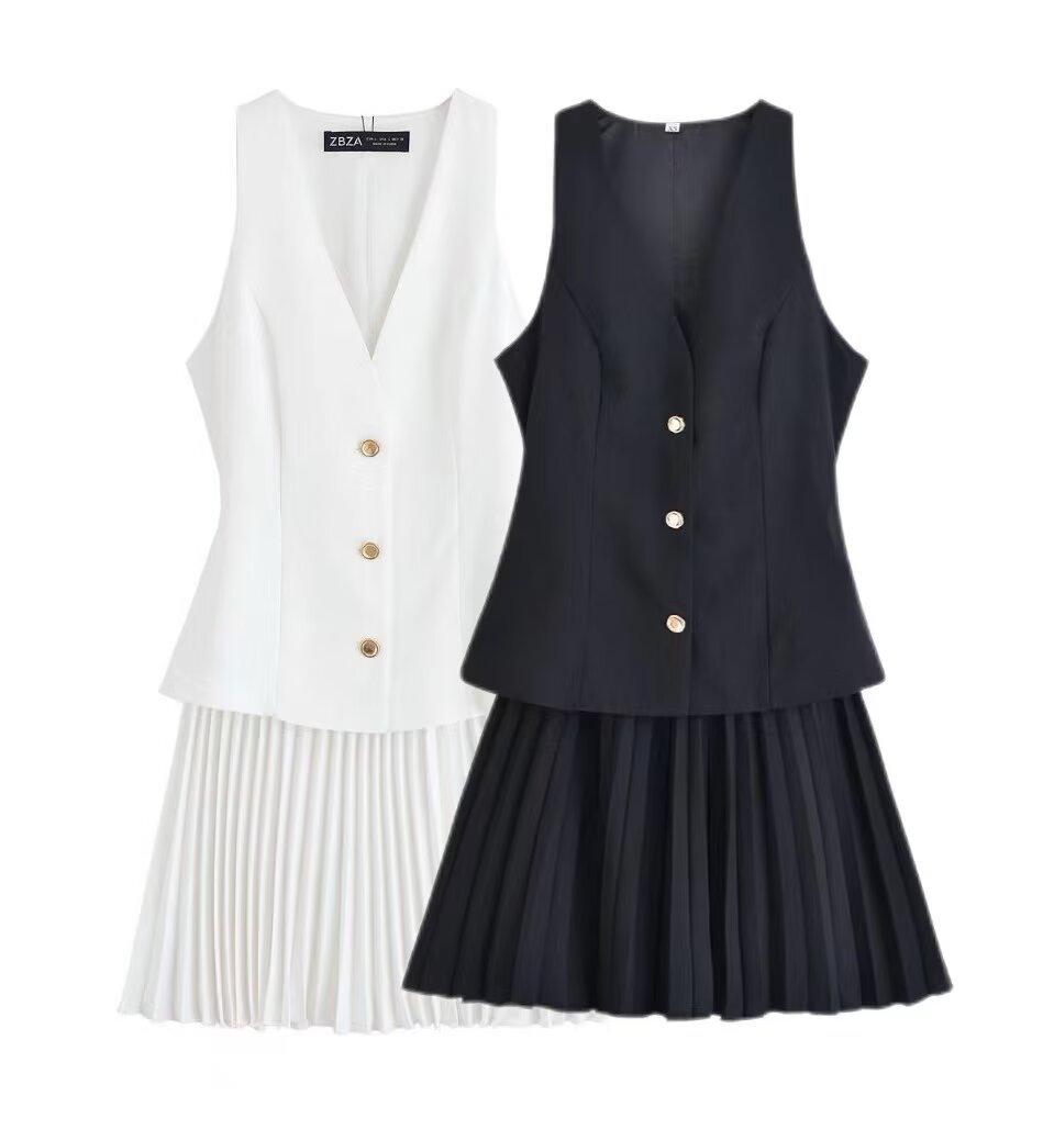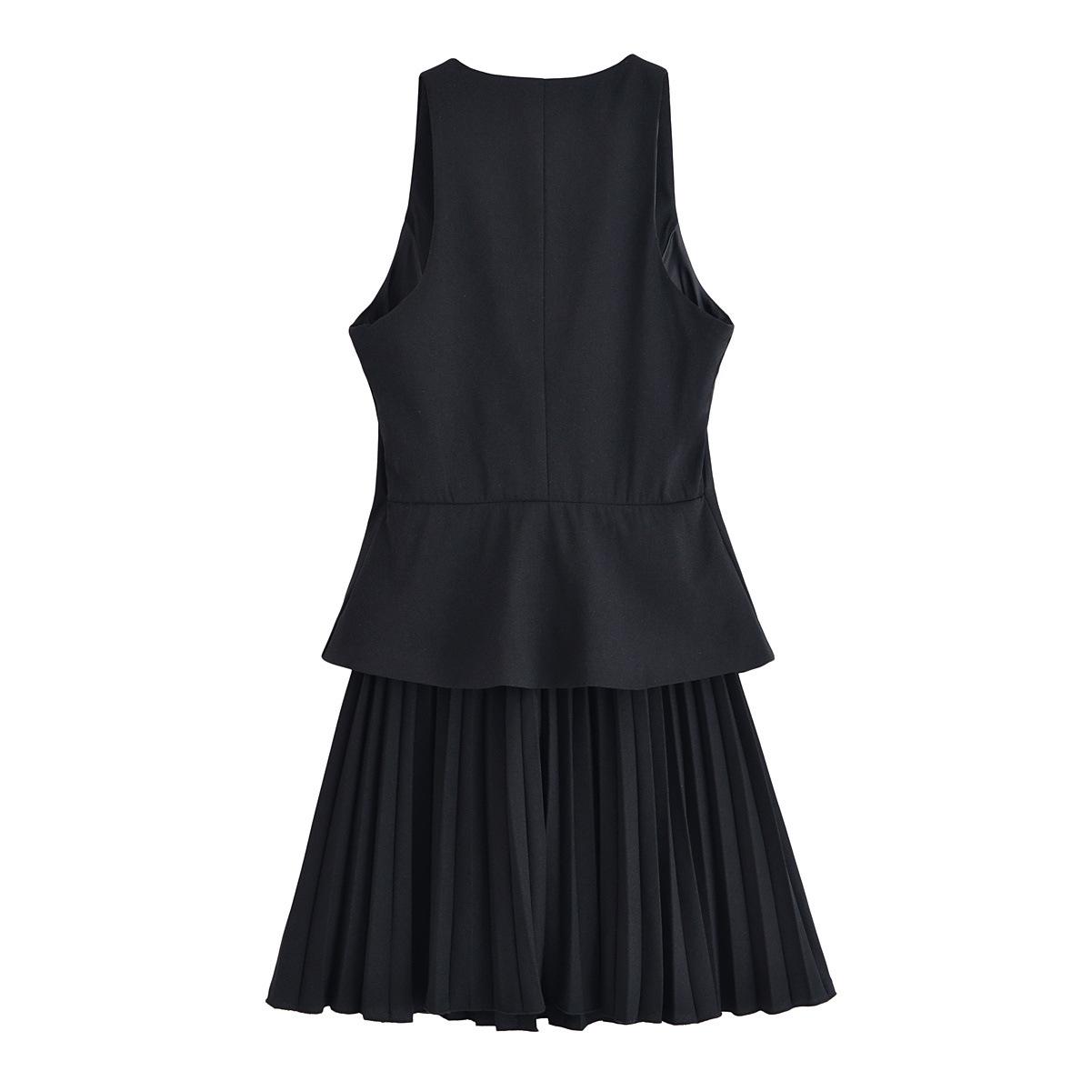 Comercio exterior transfronterizo verano 2025 nueva ropa de mujer estilo europeo y americano moda simple vestido plisado sin mangas 0387063
