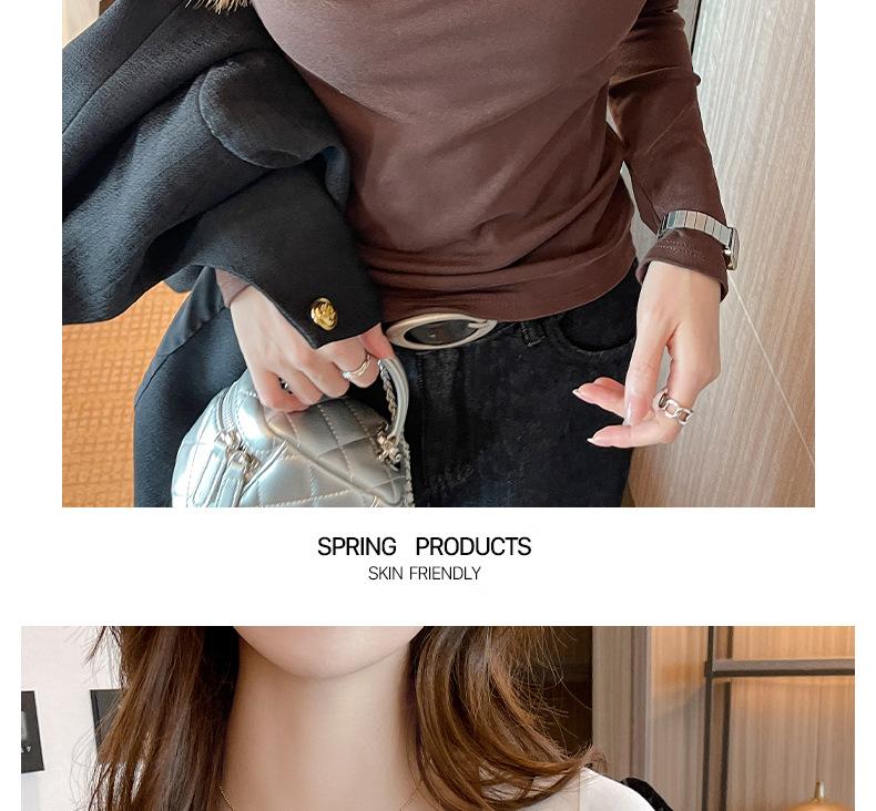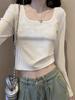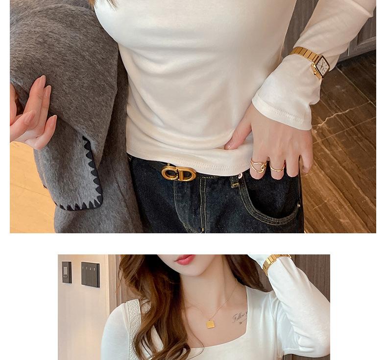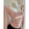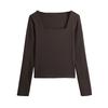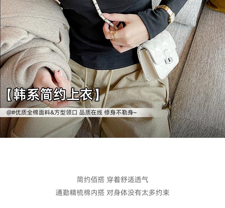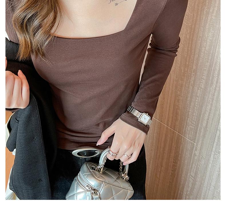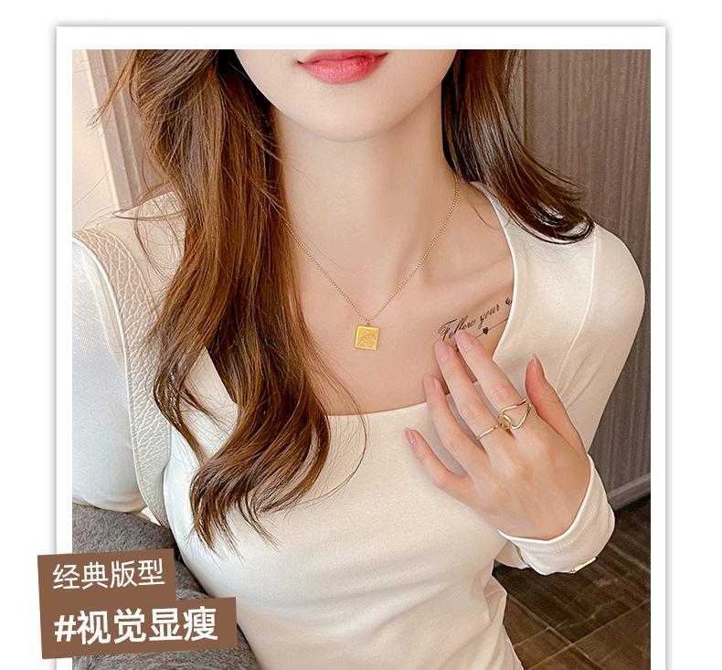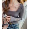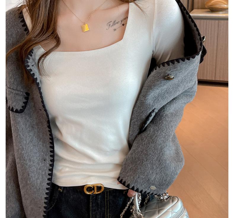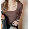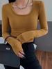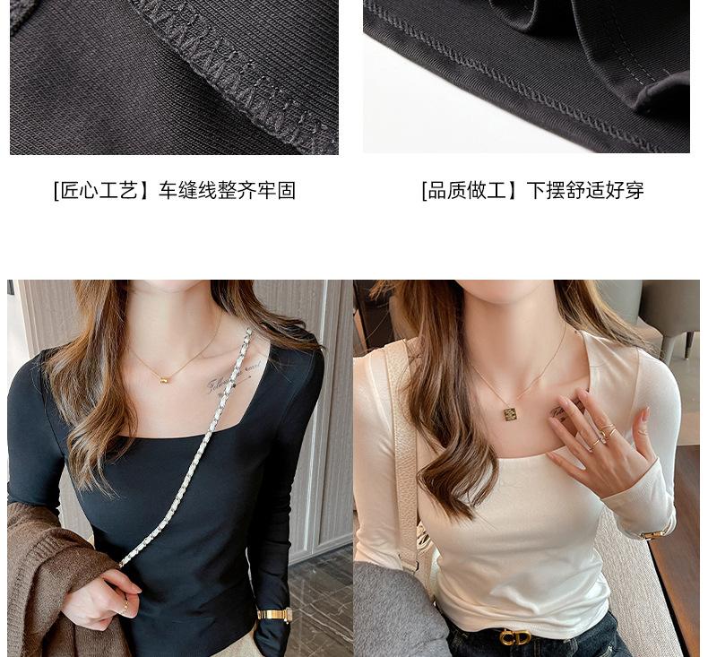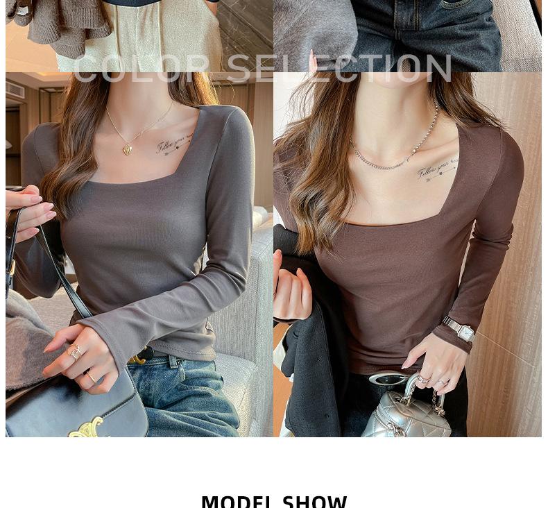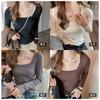 Camiseta Básica de Cuello Cuadrado Ropa Interior para Mujer Otoño Invierno 2025 Nueva Camiseta de Manga Larga con Cuello Bajo Adelgazante Versátil Top de Hombro Recto