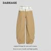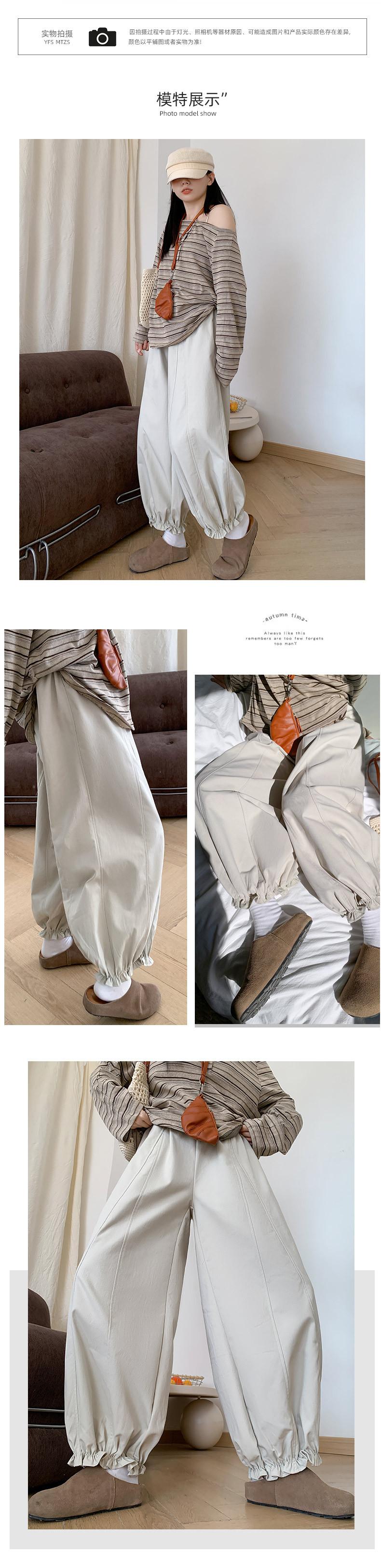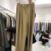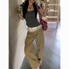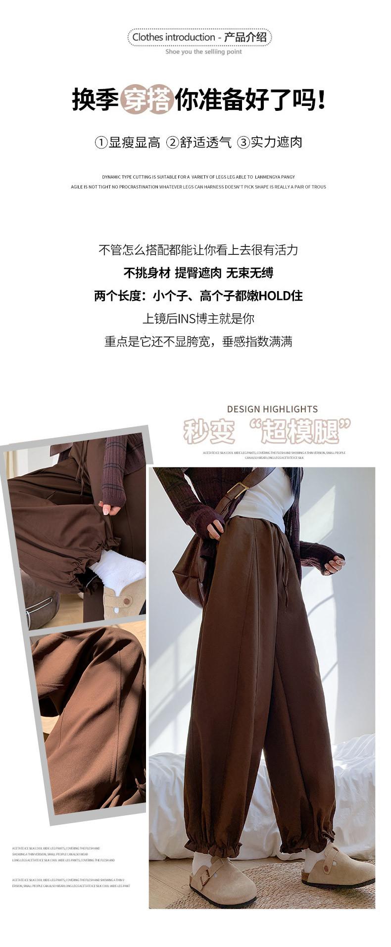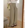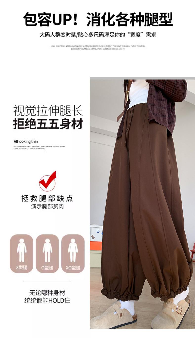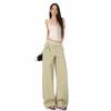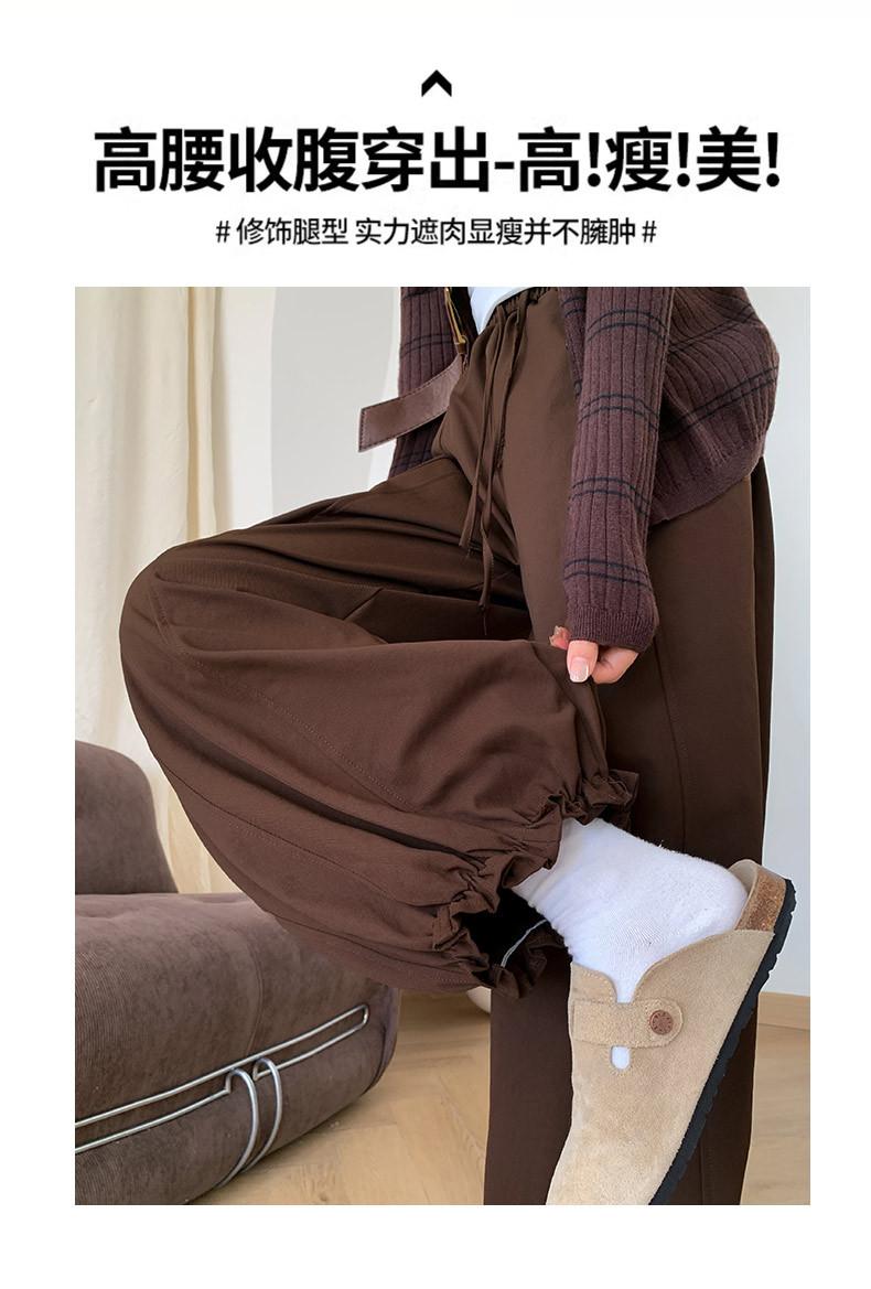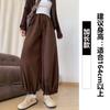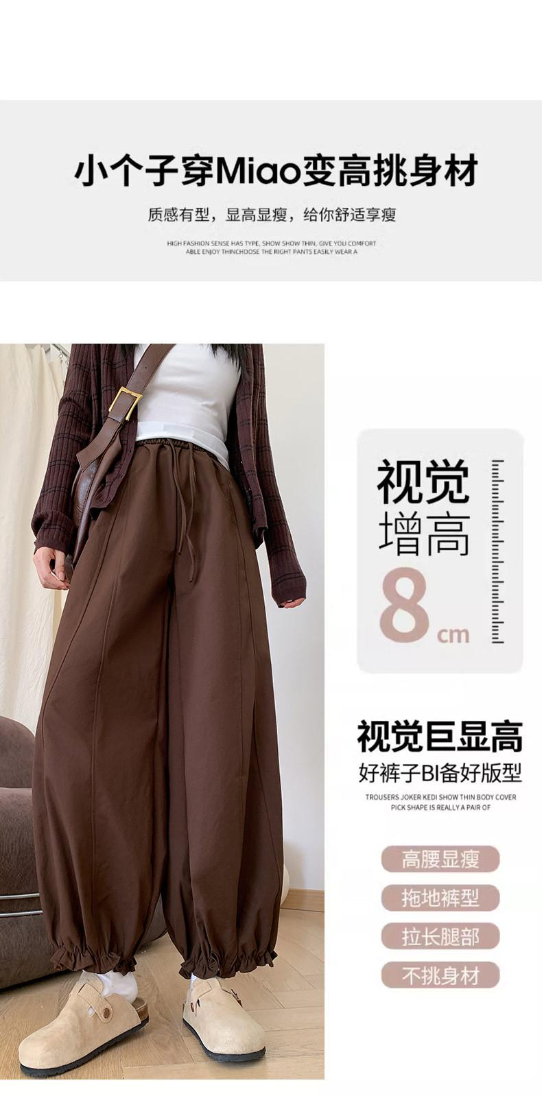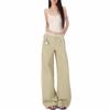 Pantalones capri caqui con volantes para mujer otoño 2025 nuevos pantalones casuales petite encaje pata ancha tulipán