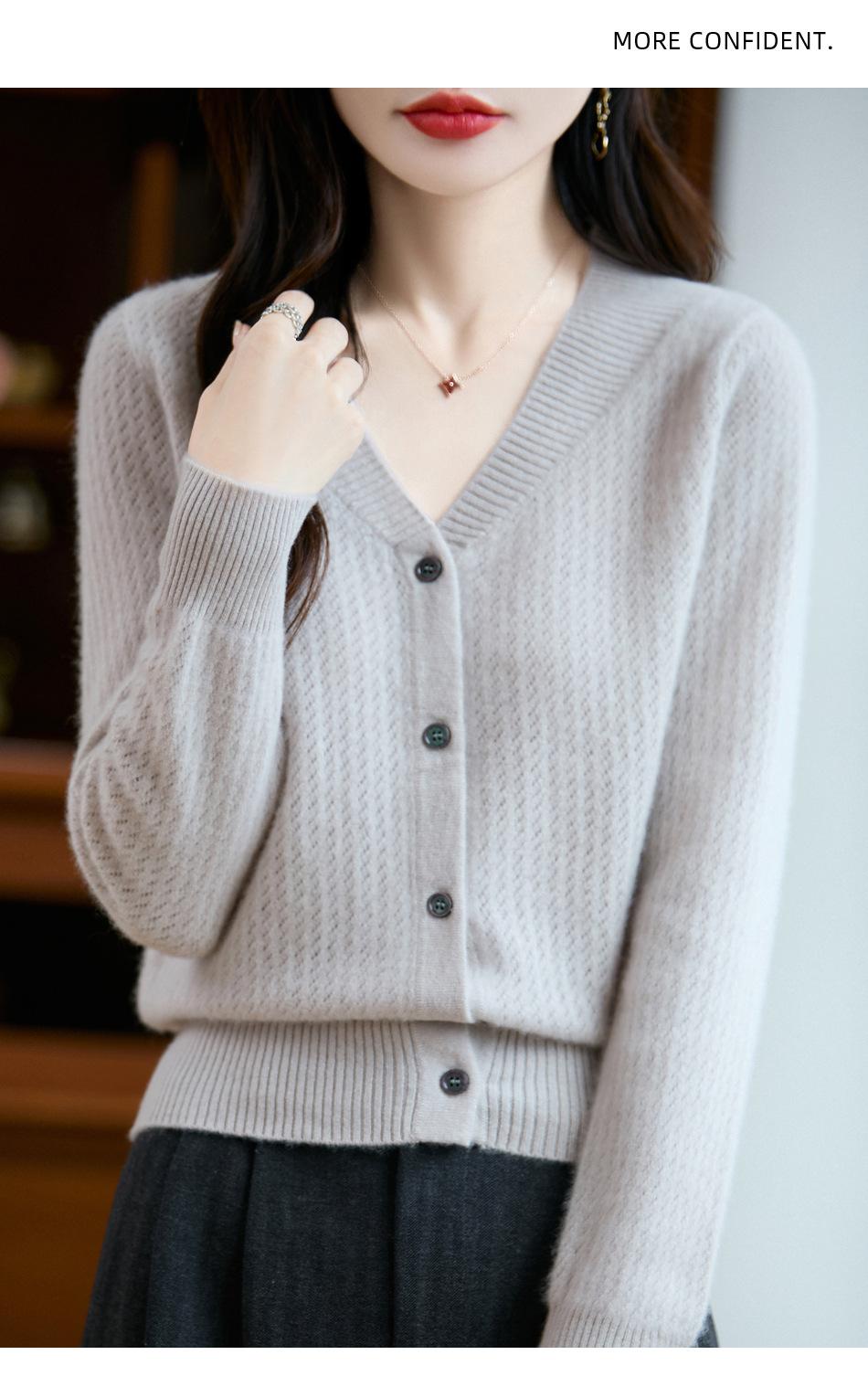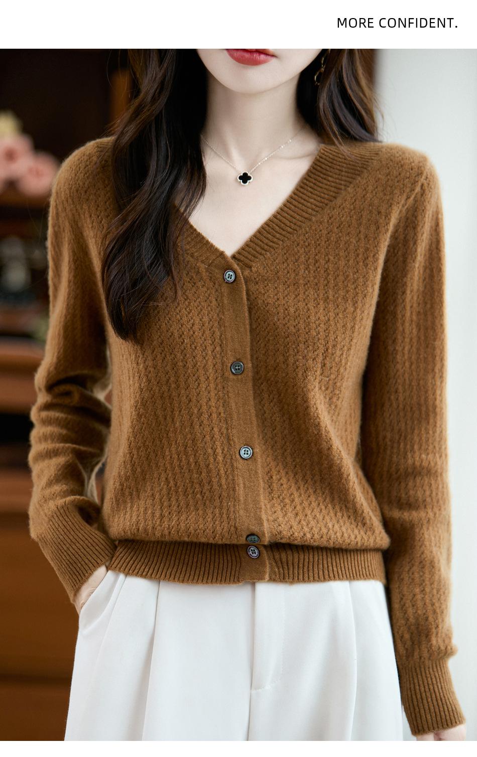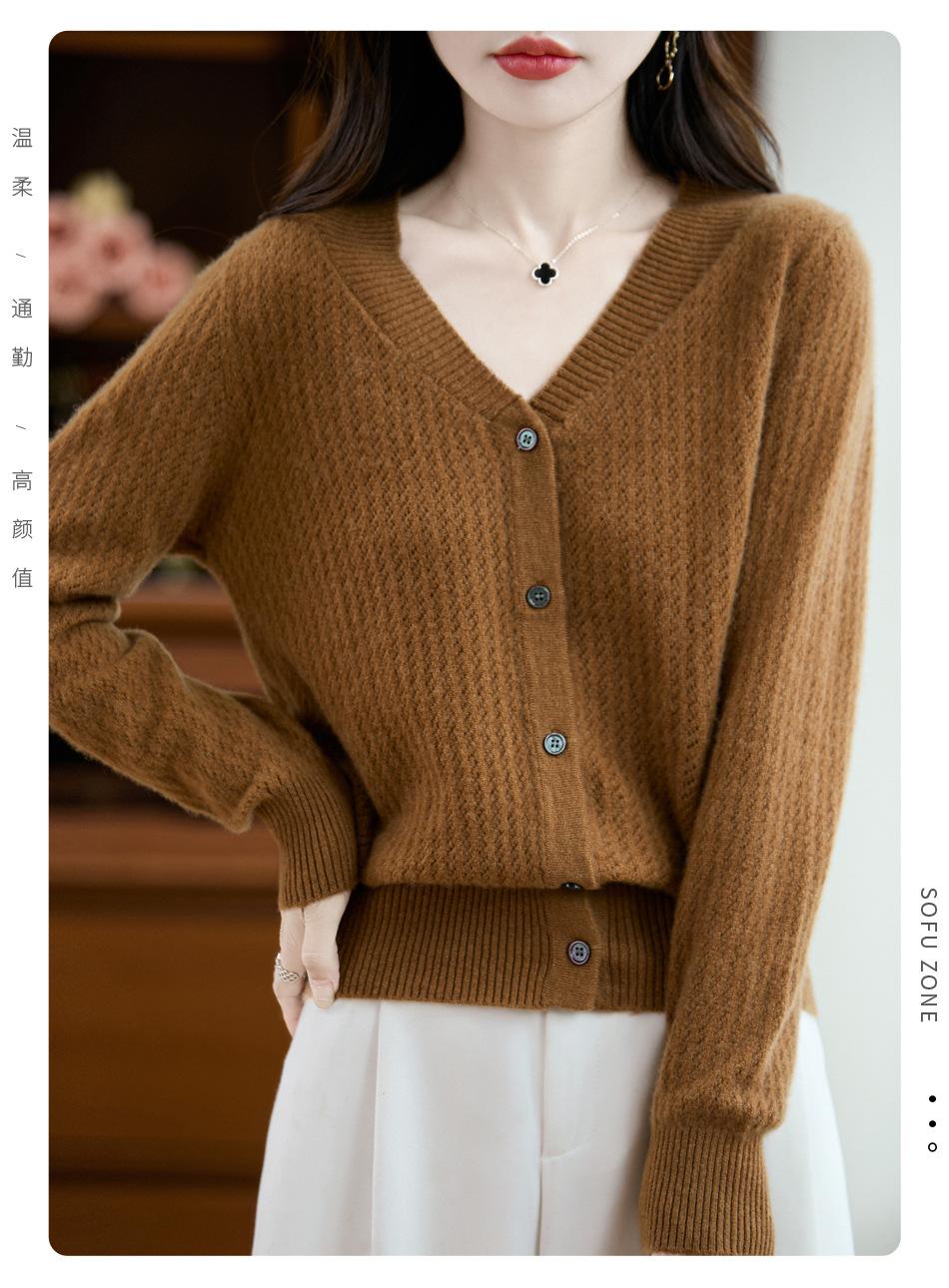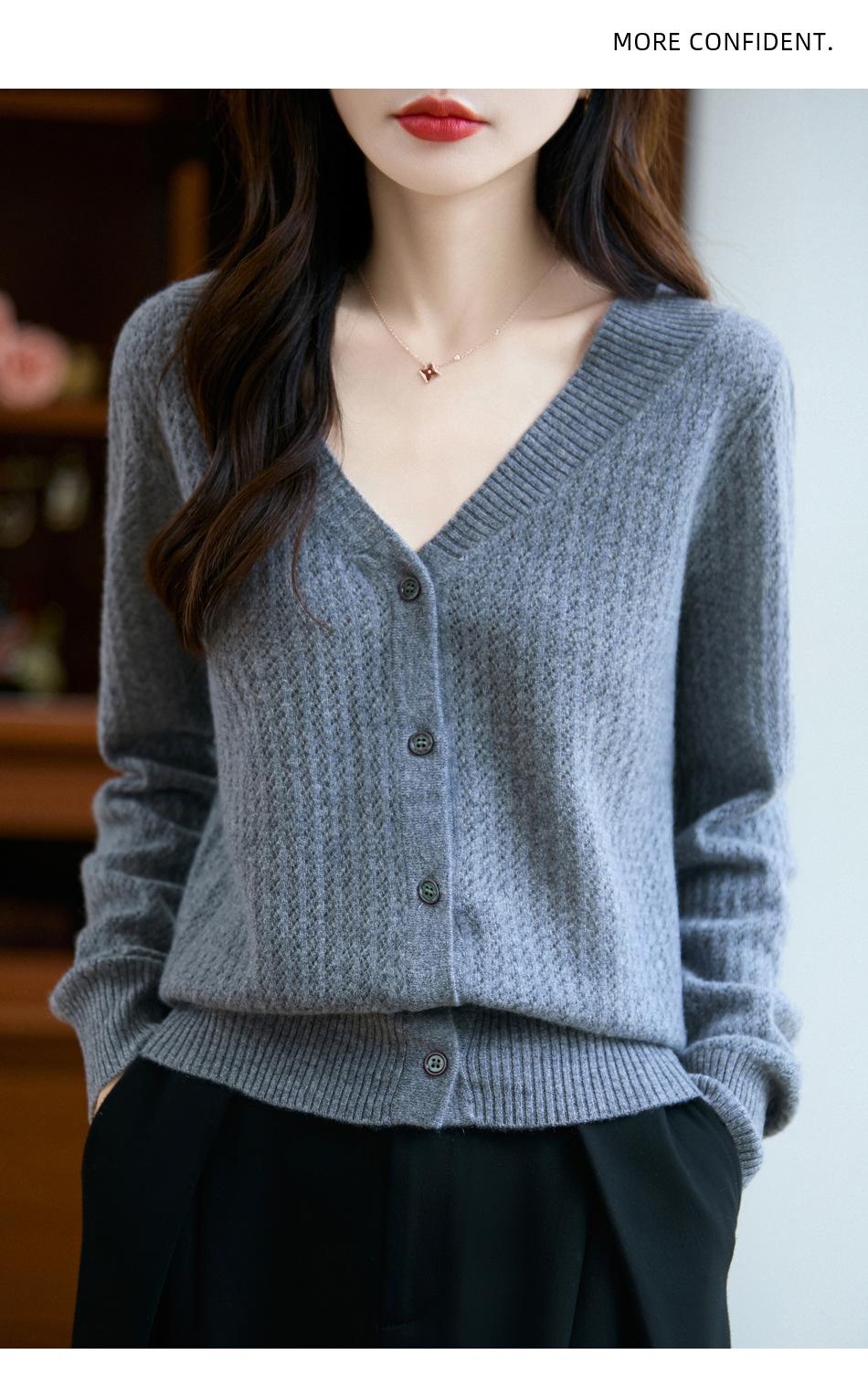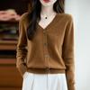 Cárdigan de Lana con Cuello en V de Personalidad Otoño/Invierno para Mujer 2025 Sentido del Diseño Tejido Temperamento Versátil Abrigo de Lana Pura