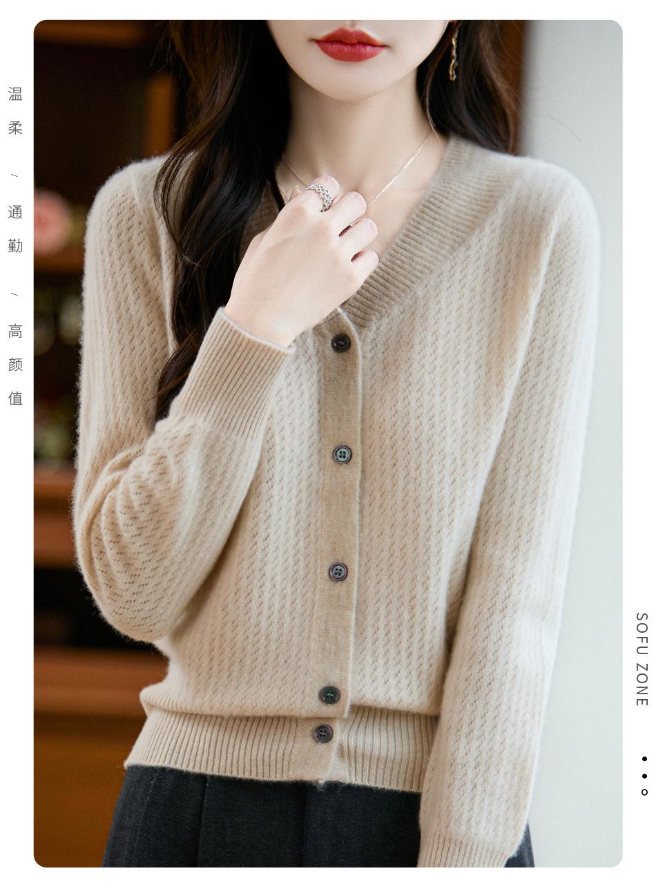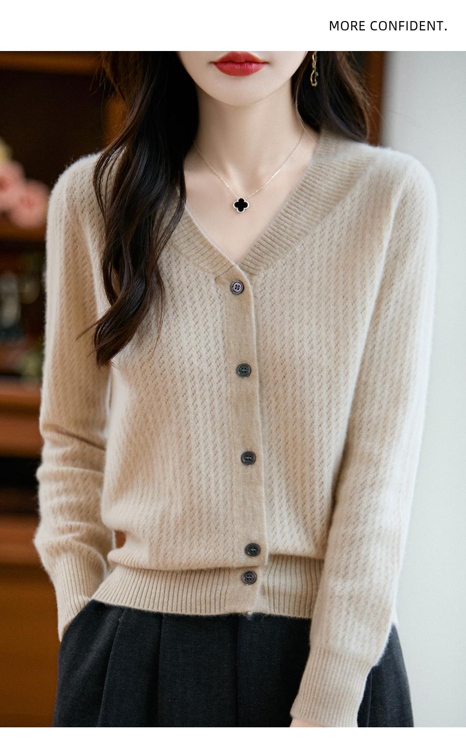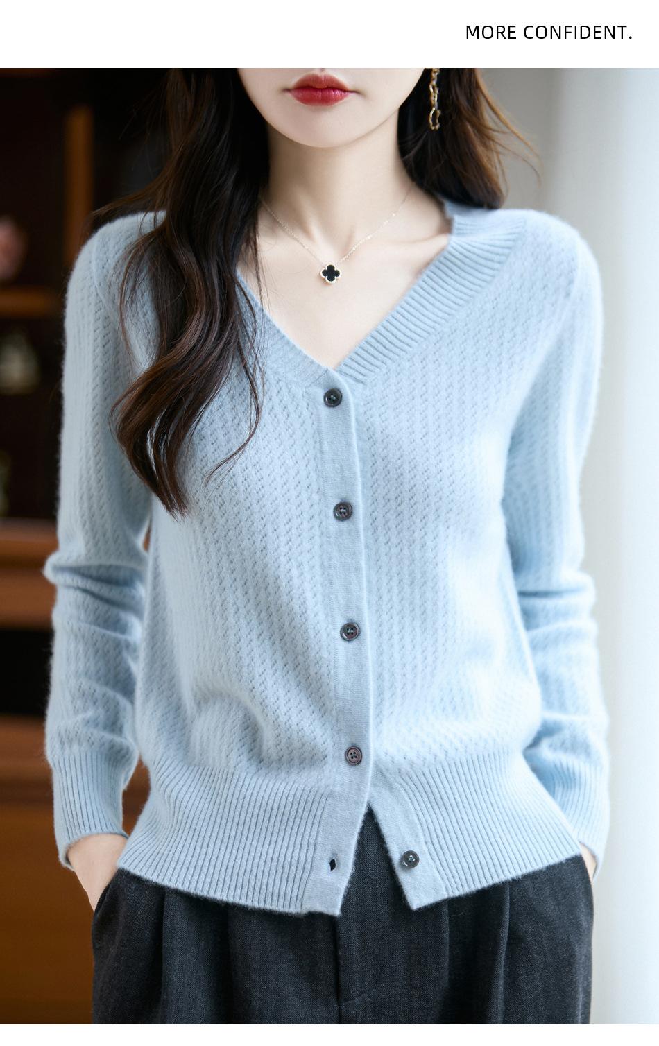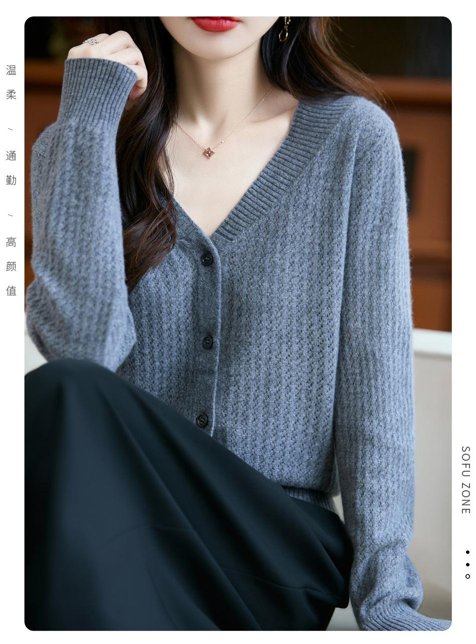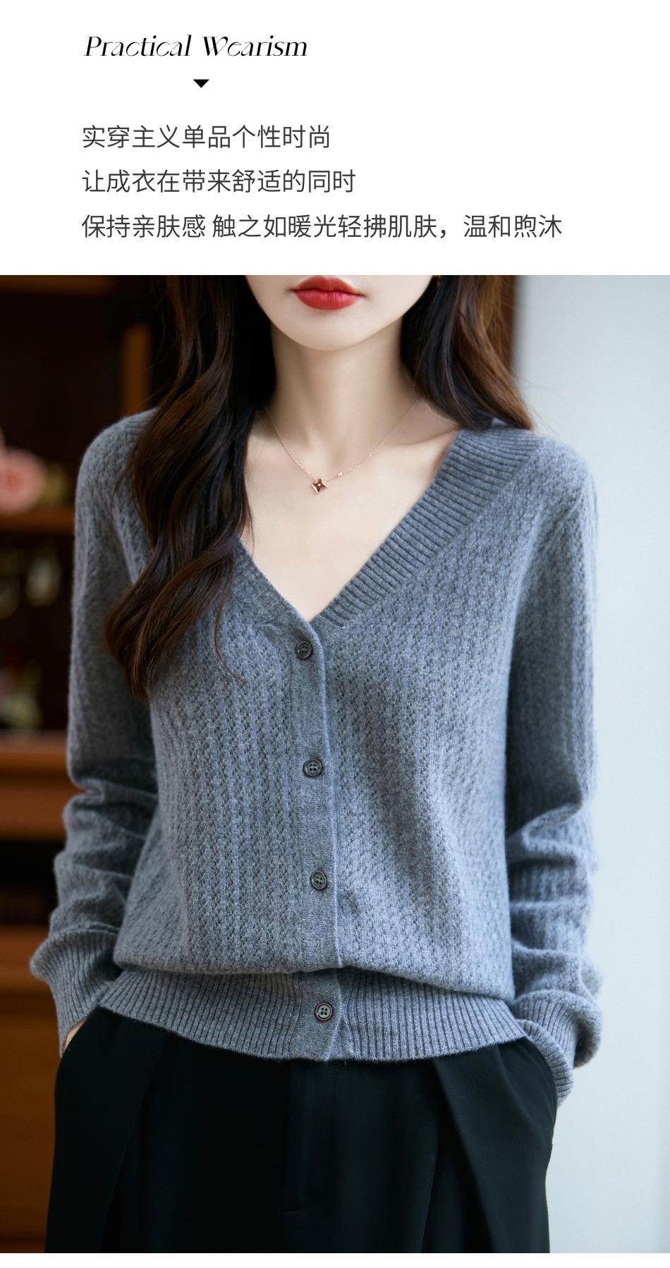 Cárdigan de Lana con Cuello en V de Personalidad Otoño/Invierno para Mujer 2025 Sentido del Diseño Tejido Temperamento Versátil Abrigo de Lana Pura