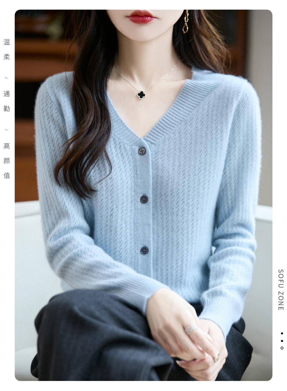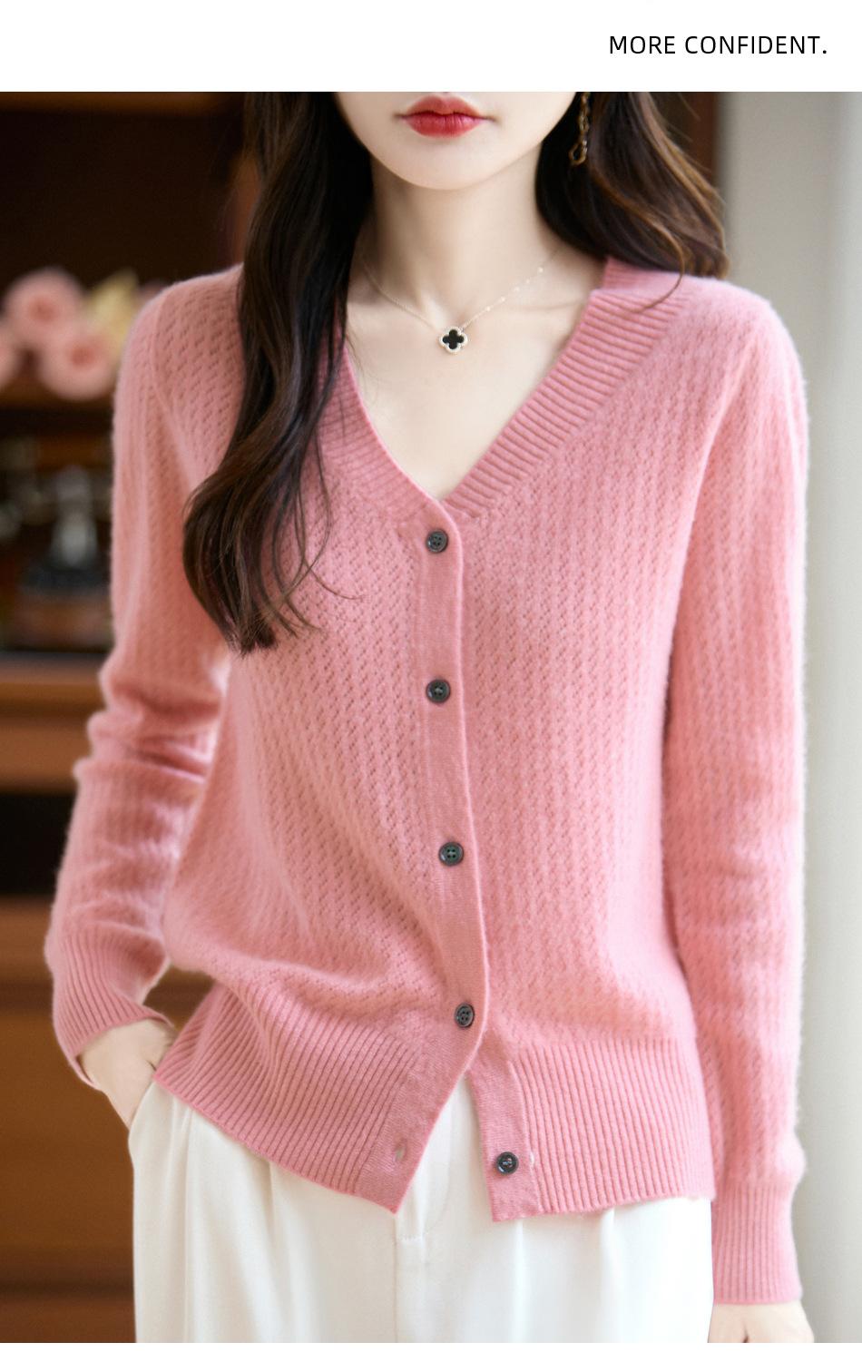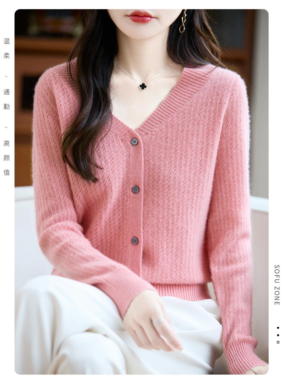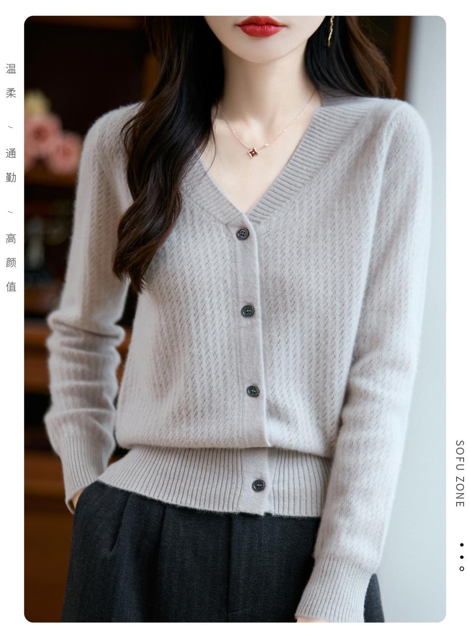 Cárdigan de Lana con Cuello en V de Personalidad Otoño/Invierno para Mujer 2025 Sentido del Diseño Tejido Temperamento Versátil Abrigo de Lana Pura