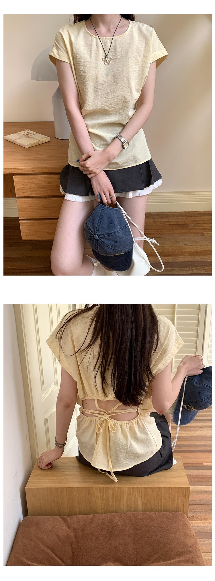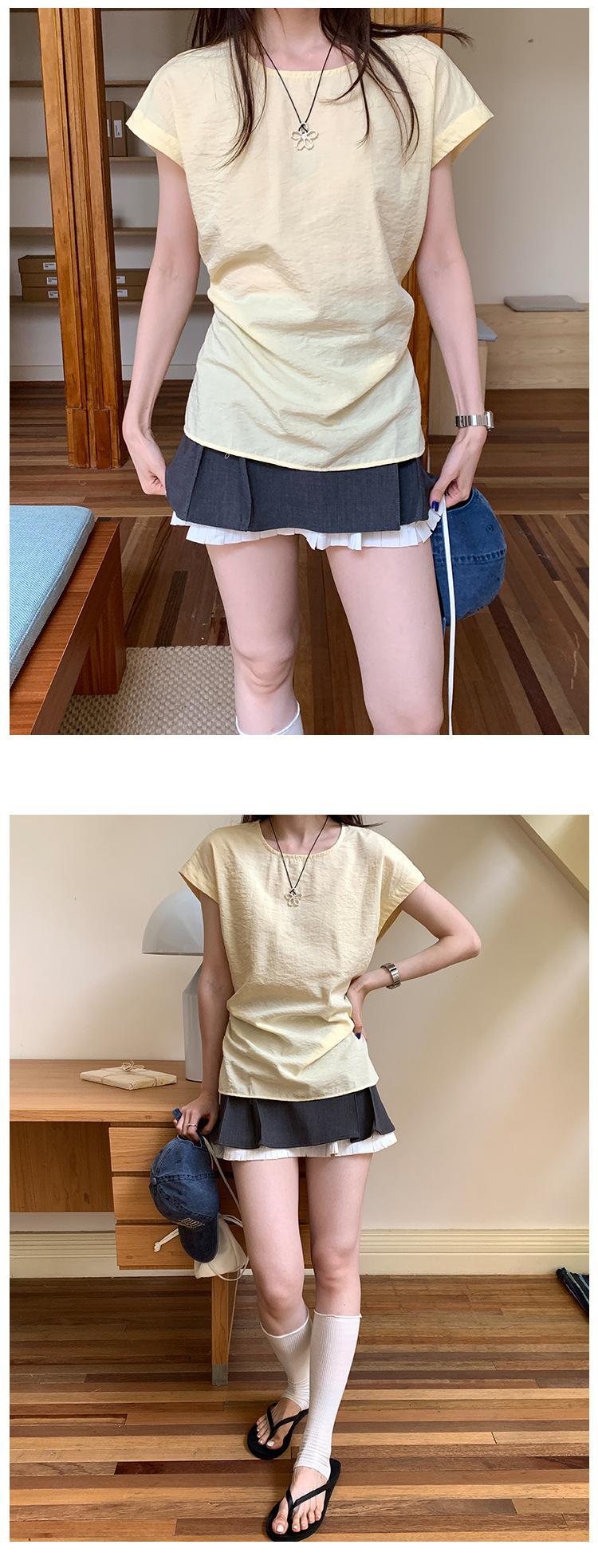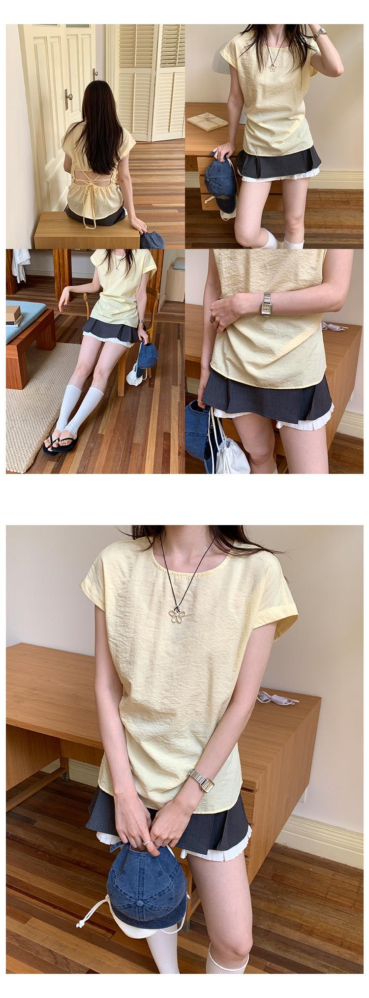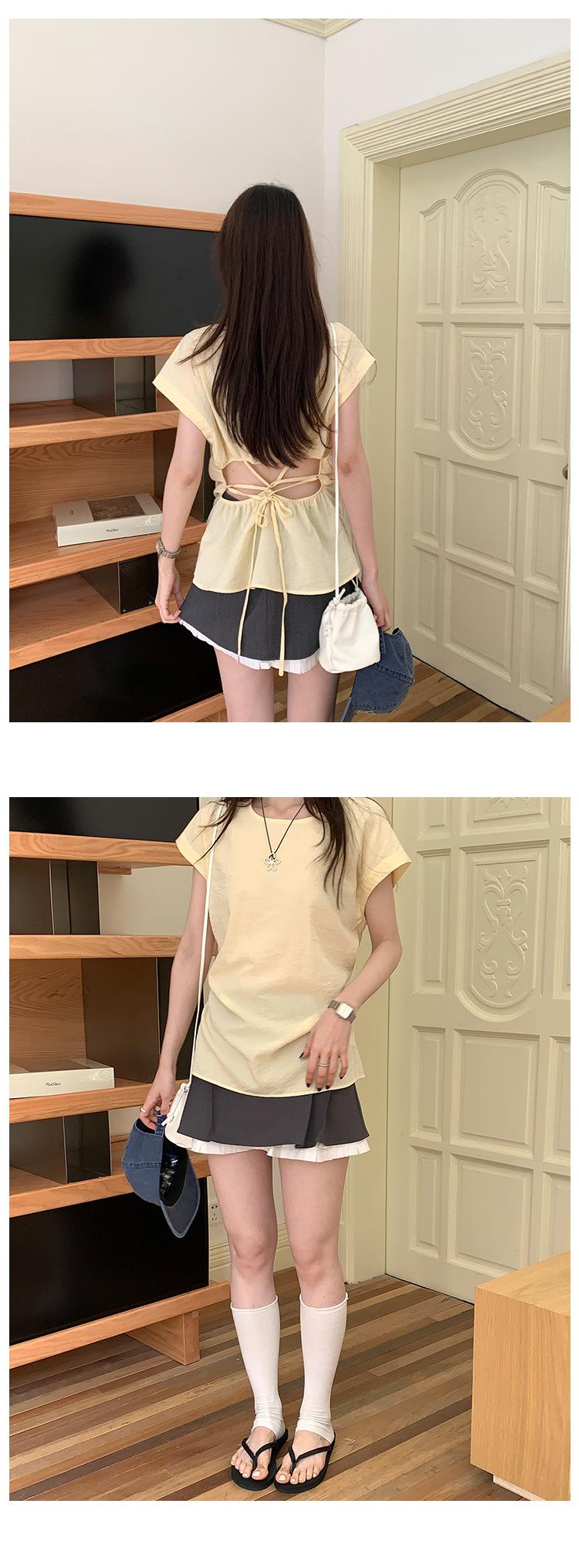 Camiseta de Manga Corta con Cuello Redondo y Tirantes sin Cintura Diseñada para Mujer Verano 2025 Nuevo Estilo Coreano Top Casual Suelto y Versátil