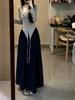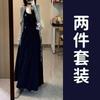 Compra Vestido Azul Estilo Hepburn Francés para Mujer Otoño 2025 Nuevo Set de Vestido Largo Súper Hermoso Ajustado a la Cintura al por mayor en Joom.pro