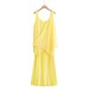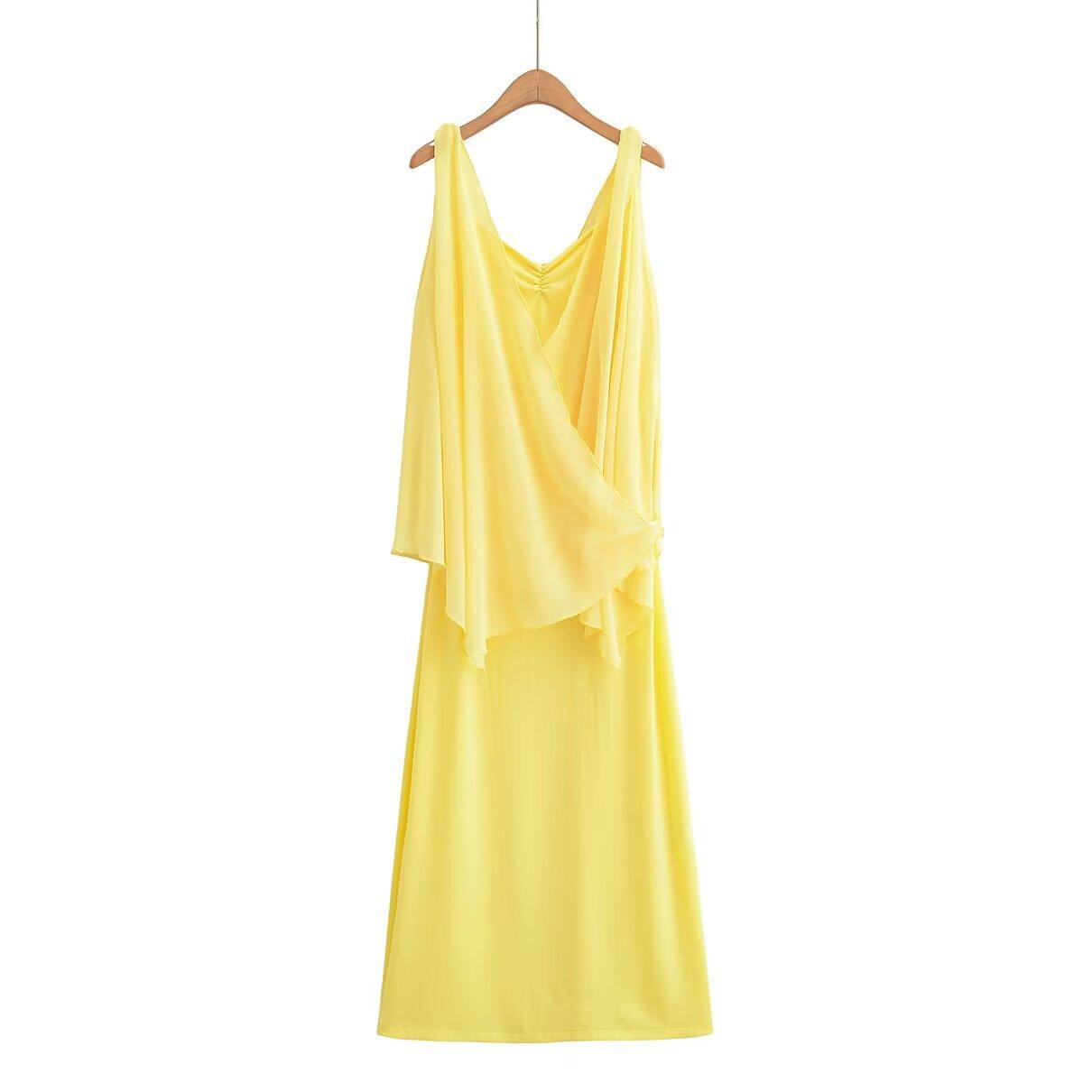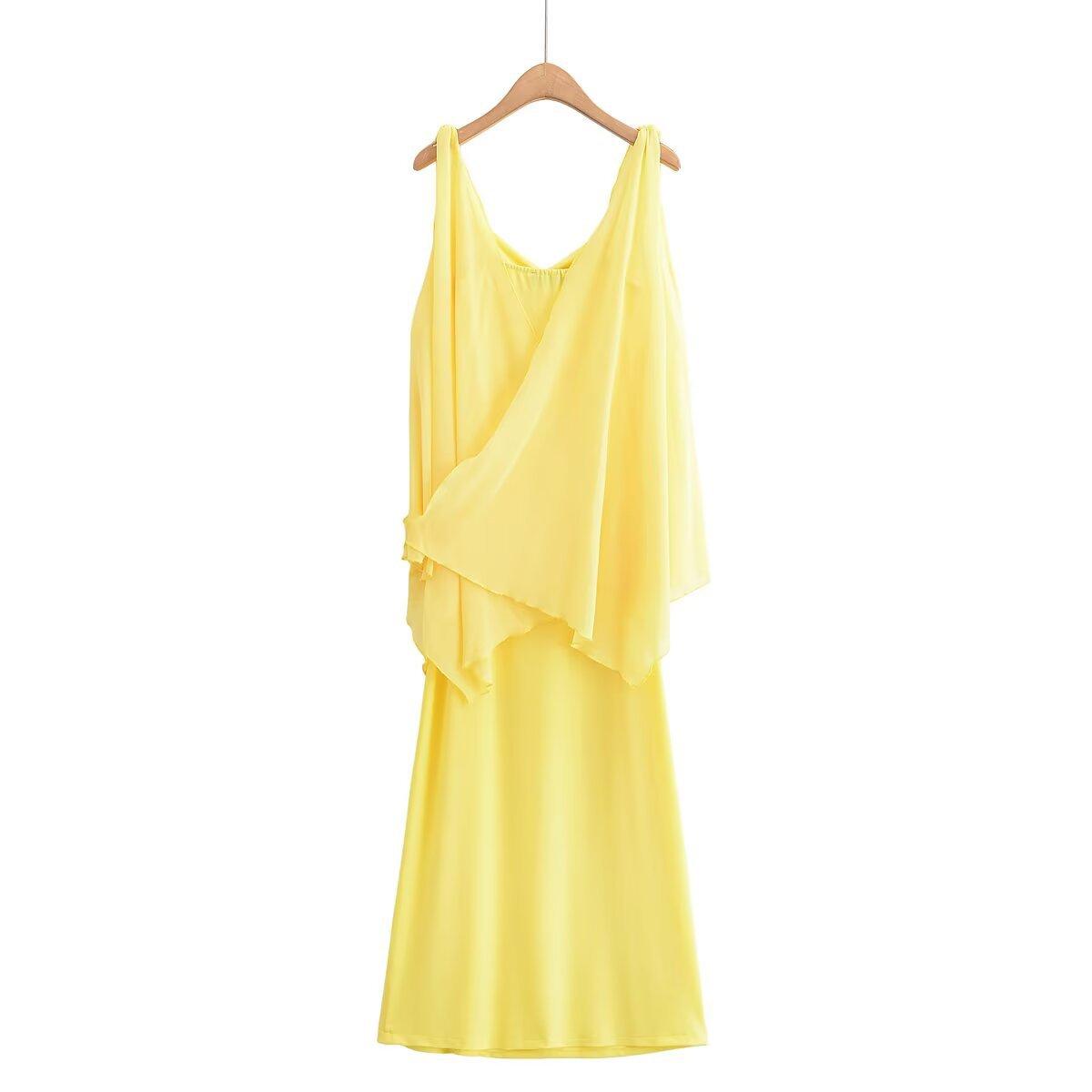 Z Estilo Europeo y Americano Transfronterizo 2025 Nuevo Venta al por Mayor Moda Temperamento Vestido de Capas con Tirantes Espagueti y Decoración de Capa de Gasa para Mujer