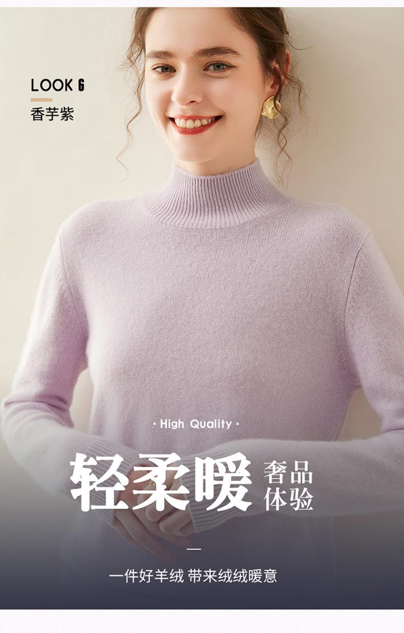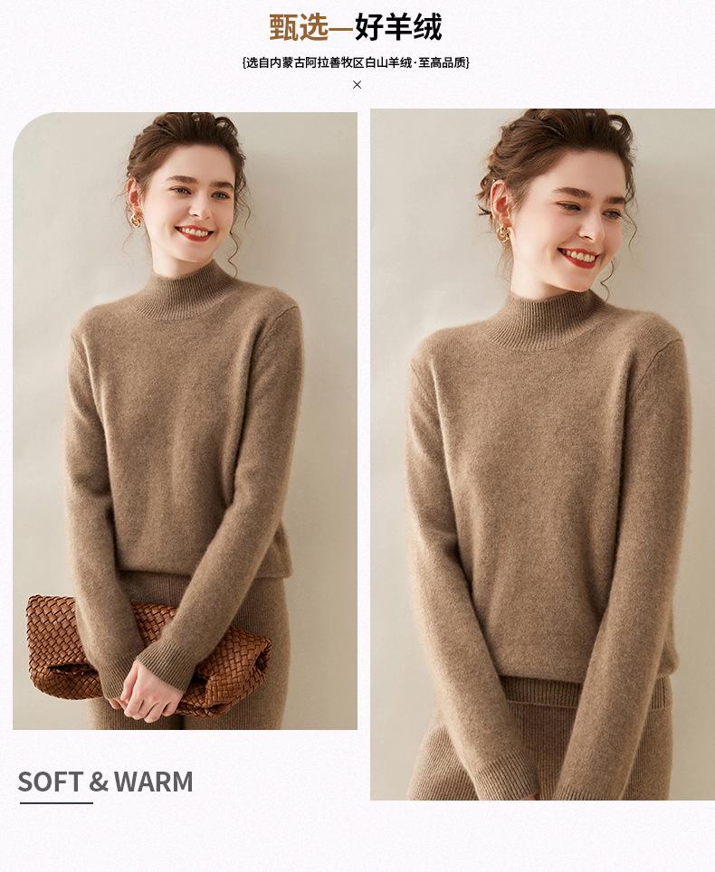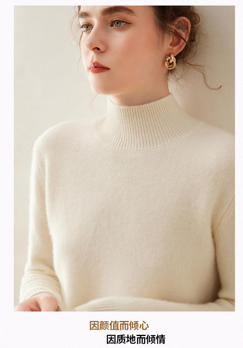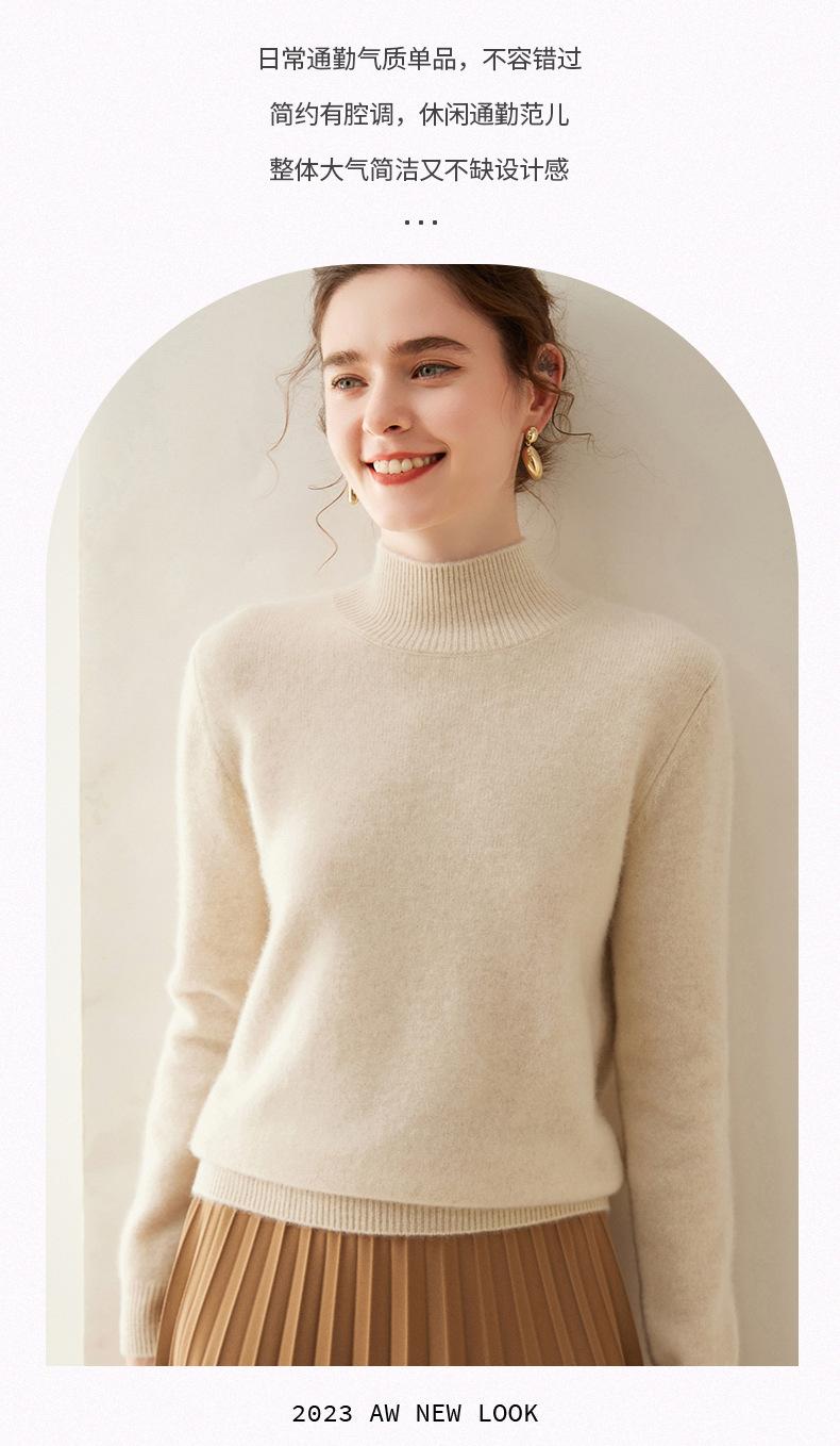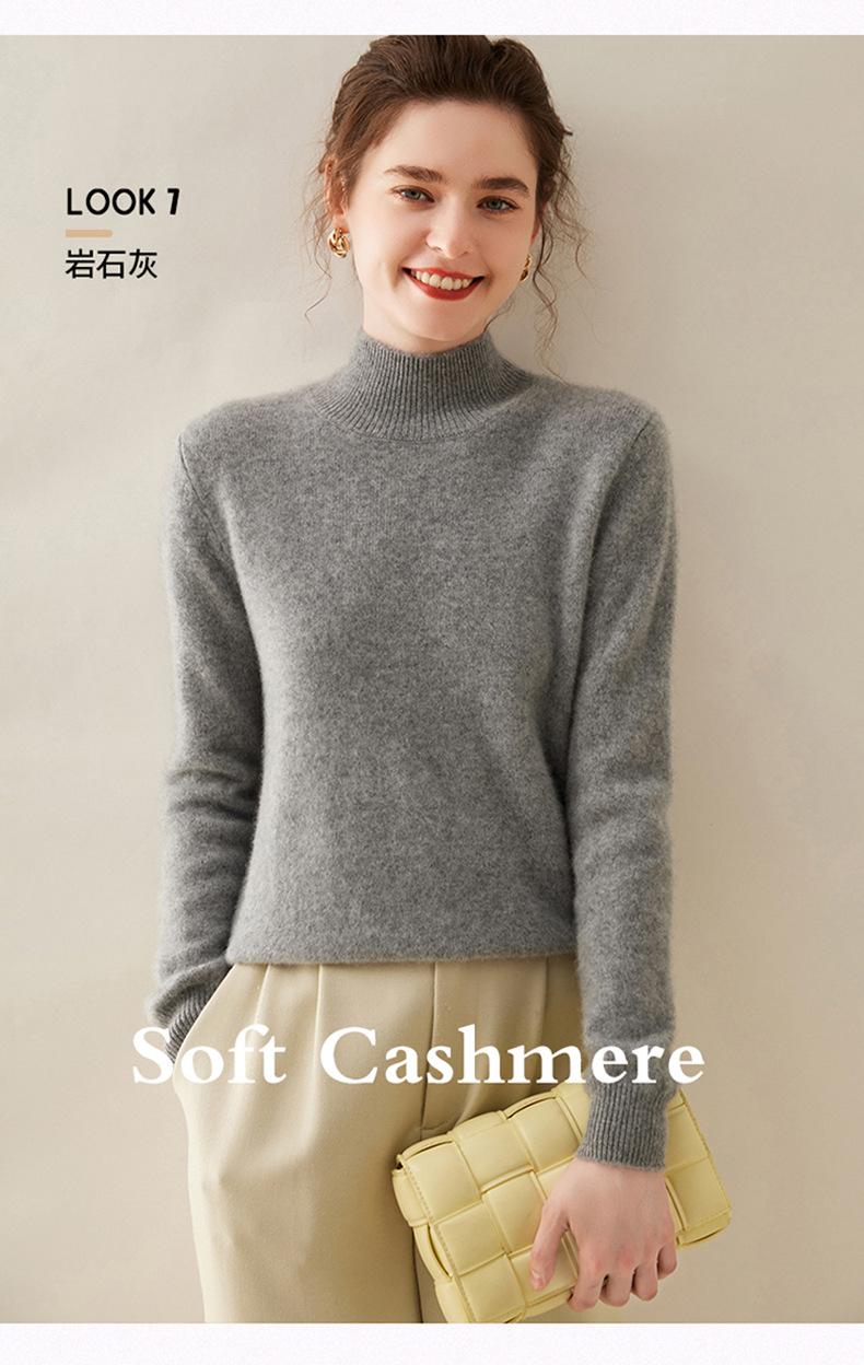 Nuevo Otoño/Invierno Color Sólido para Mujer Cachemira Tejido Camiseta Base Siete Agujas Hombro Montado Cuello Semi-Alto Suelto Cálido Suéter Manga Larga