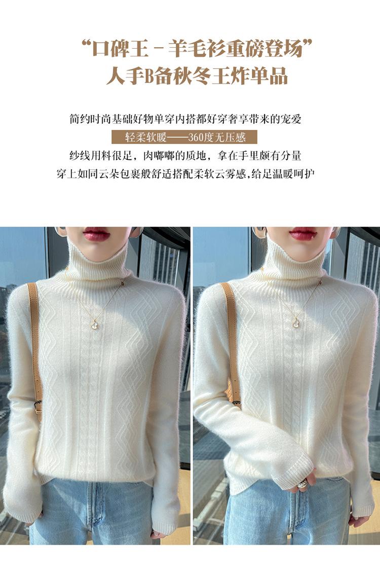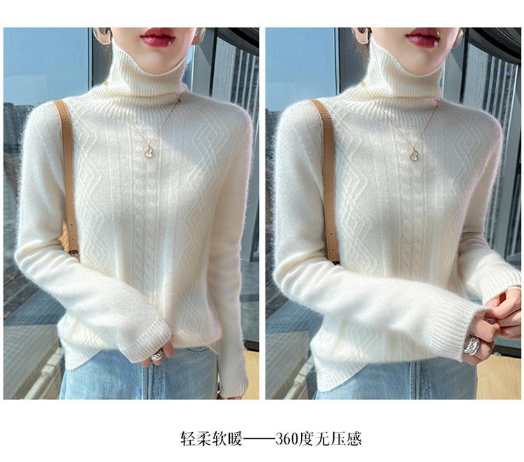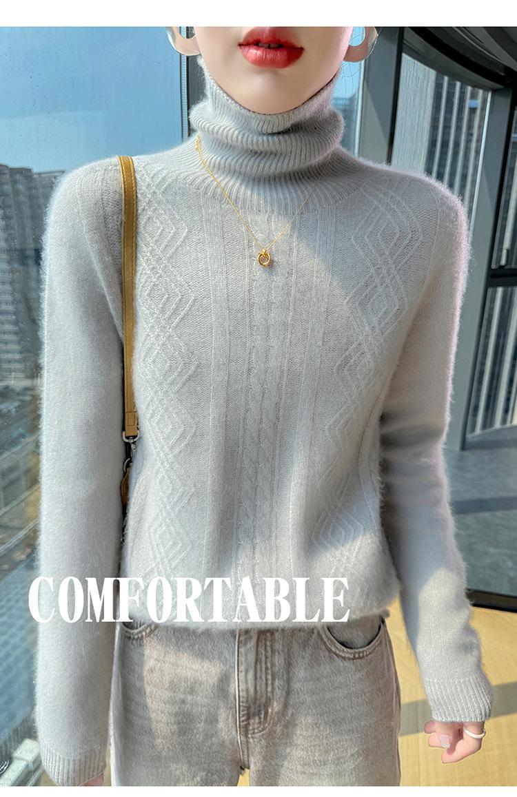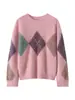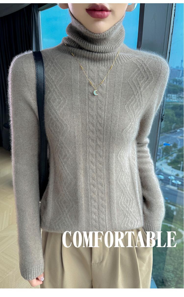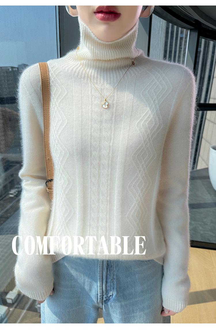 Nuevo Suéter de Lana Argyle de Cuello Alto Otoño/Invierno para Mujer Suéter Base Tejido Manga Larga Holgado Adelgazante Versátil Cálido Top