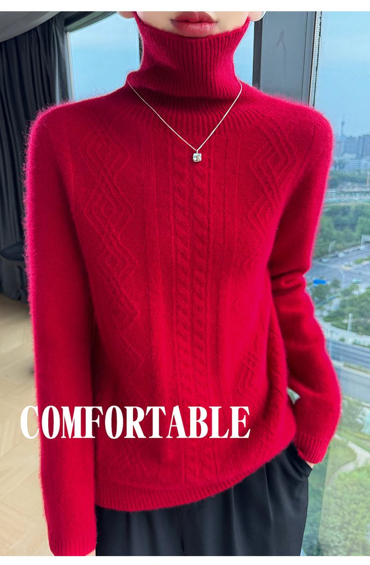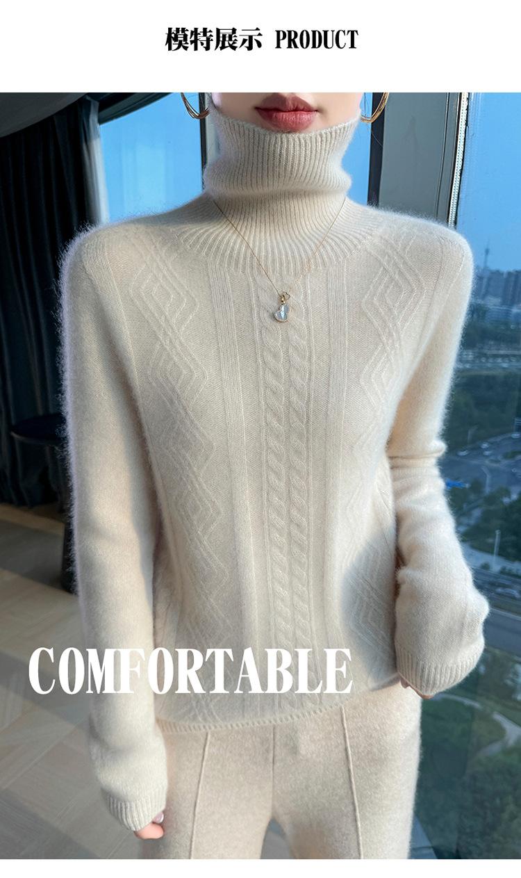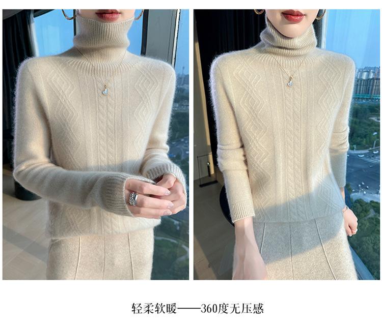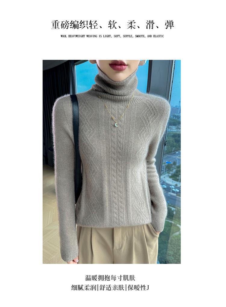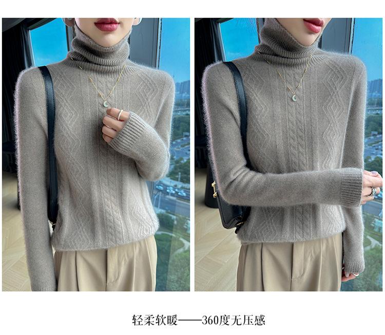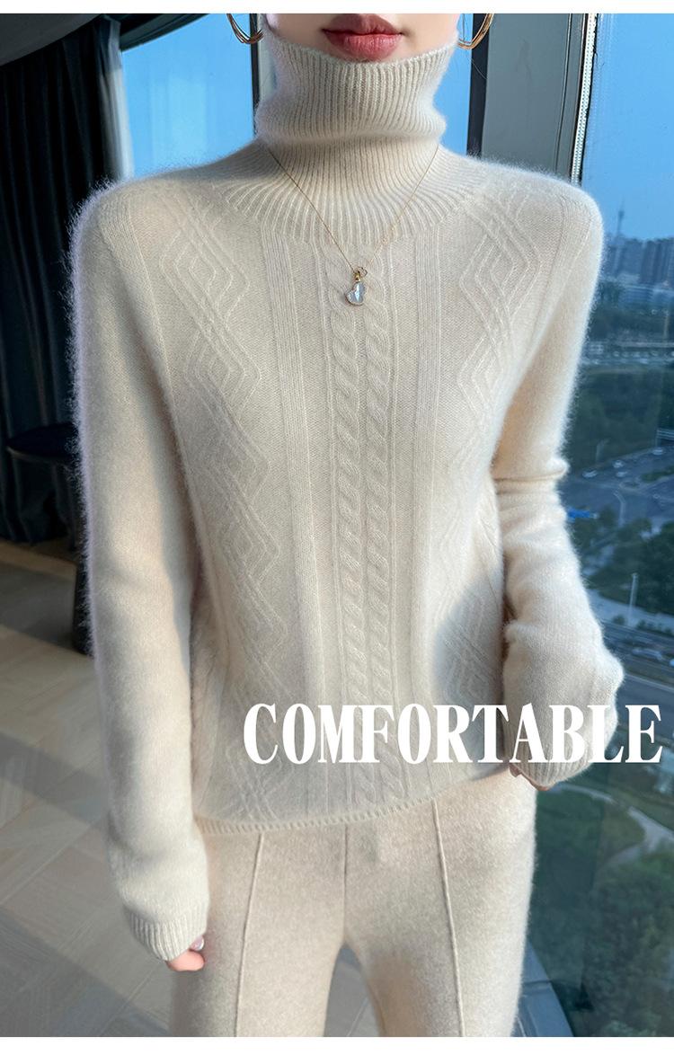 Nuevo Suéter de Lana Argyle de Cuello Alto Otoño/Invierno para Mujer Suéter Base Tejido Manga Larga Holgado Adelgazante Versátil Cálido Top