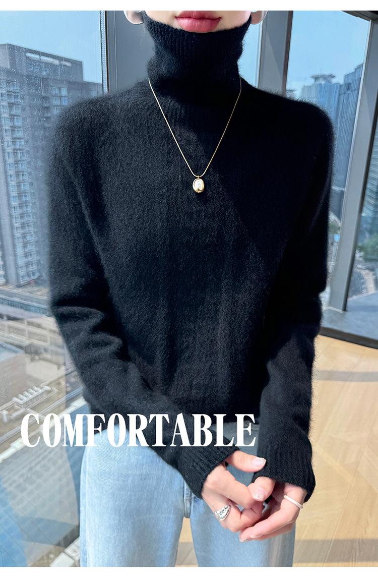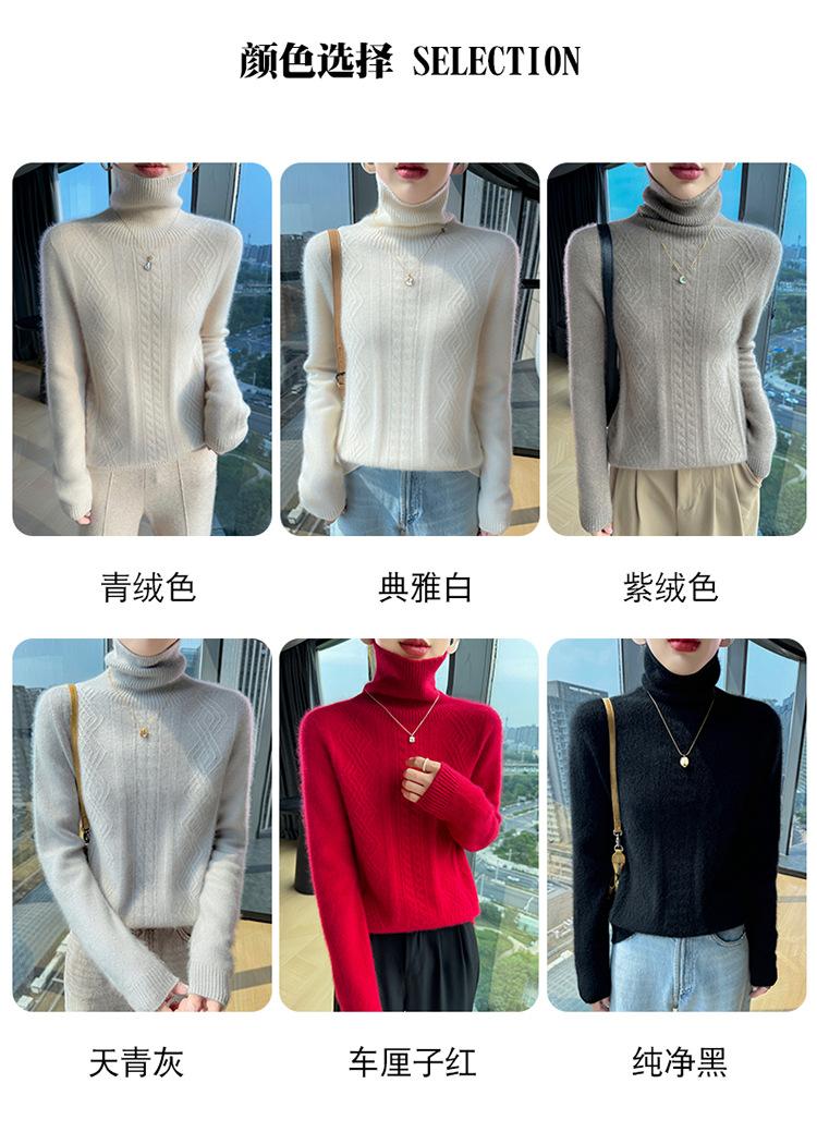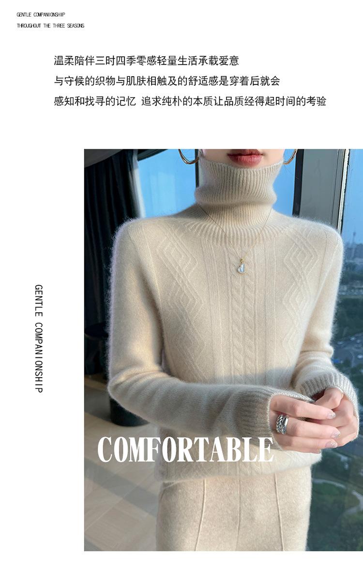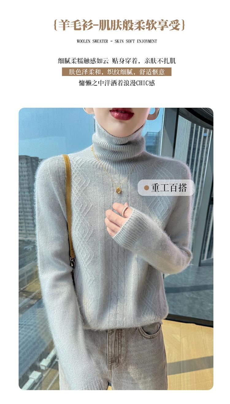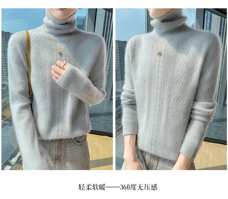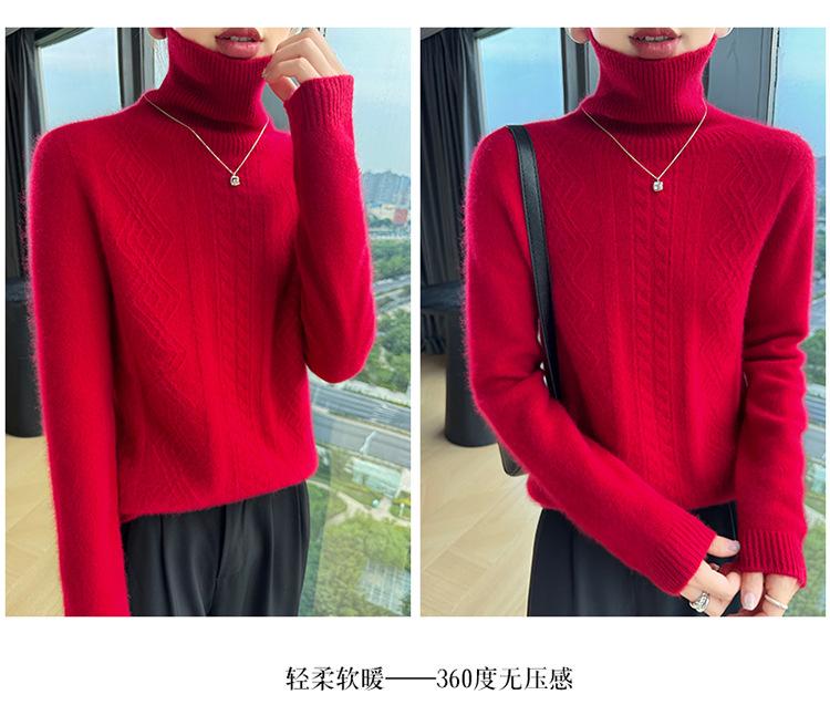 Nuevo Suéter de Lana Argyle de Cuello Alto Otoño/Invierno para Mujer Suéter Base Tejido Manga Larga Holgado Adelgazante Versátil Cálido Top