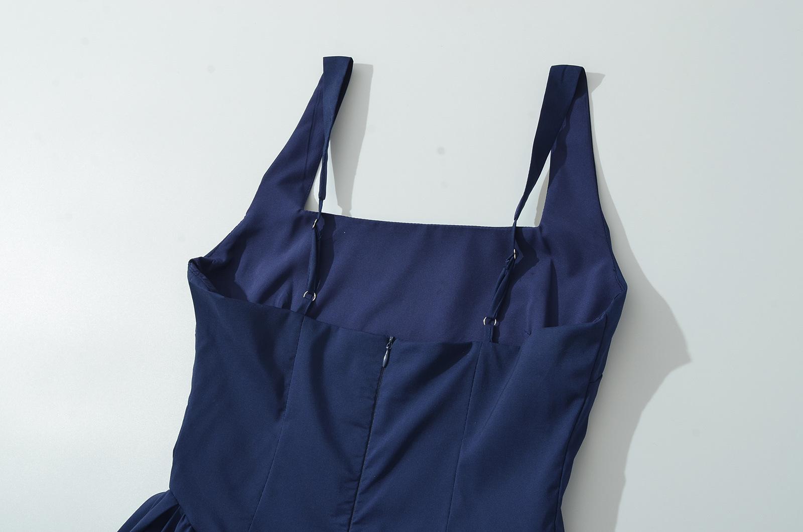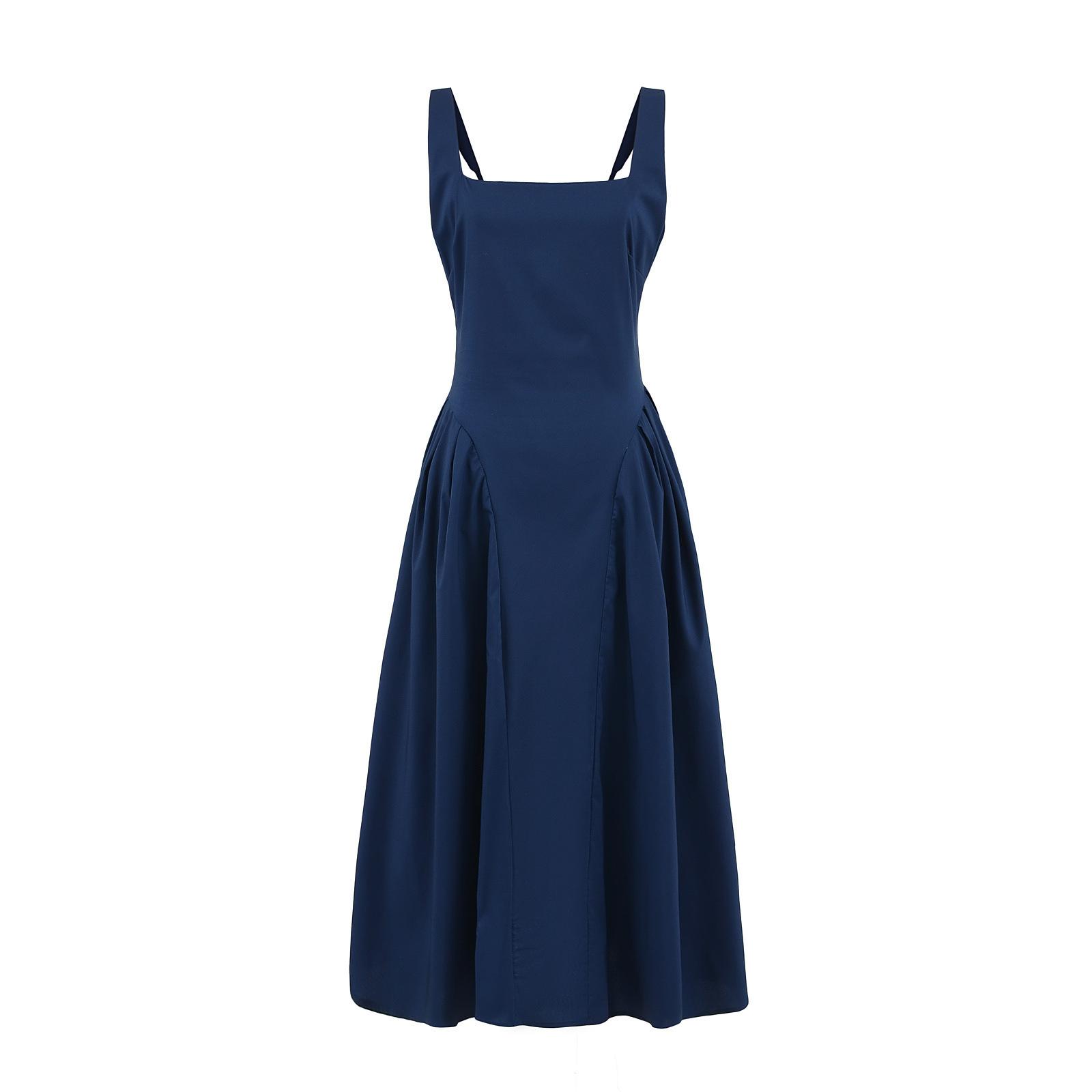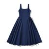 Verano Nuevo Ropa de Mujer Europeo y Americano Sexy Espalda Descubierta Tirantes Lazo Vestido de Noche Vestido Largo de Vacaciones Francés para Mujer