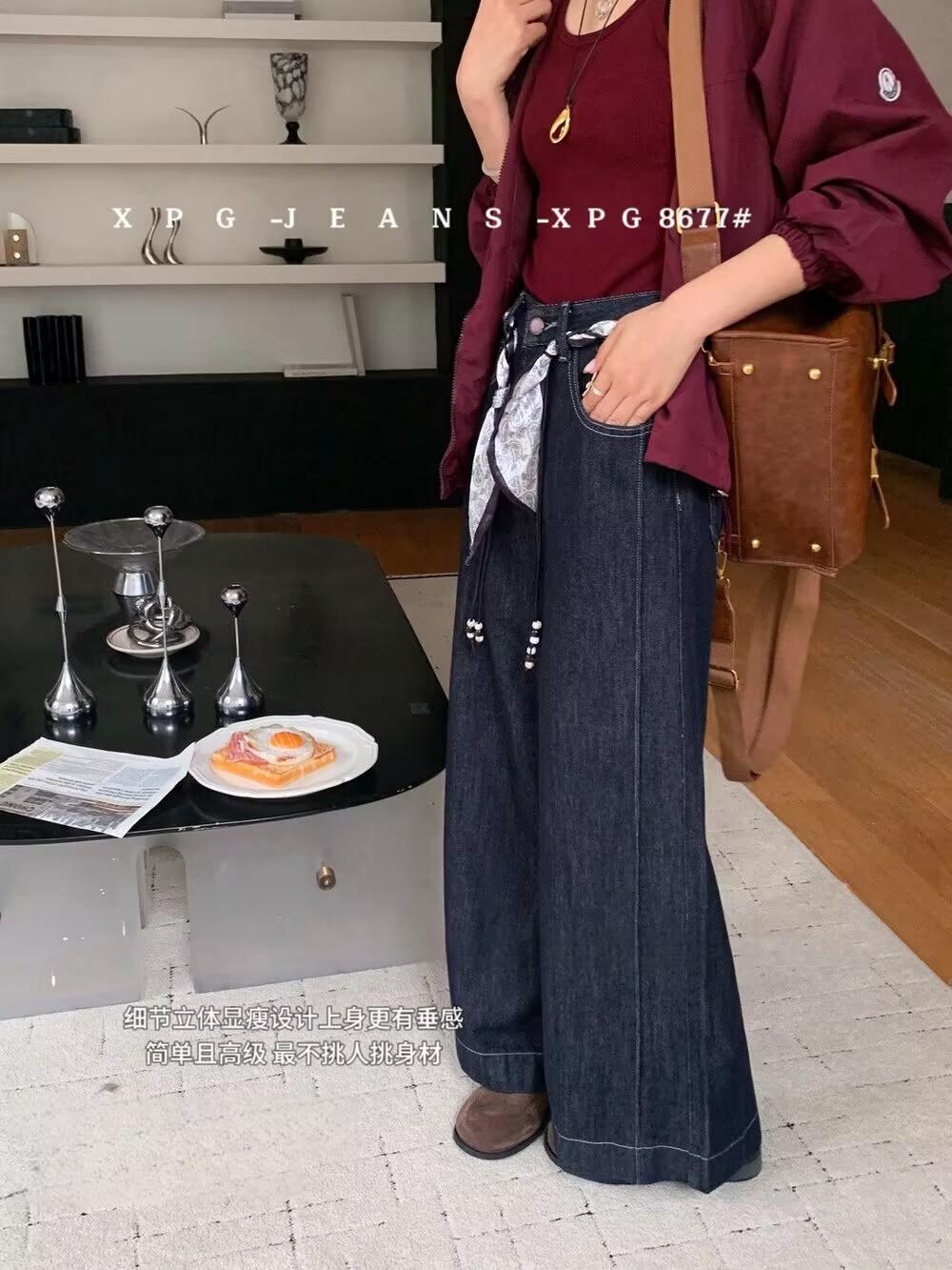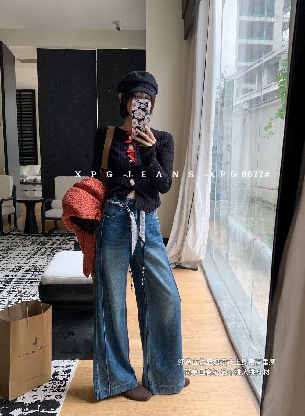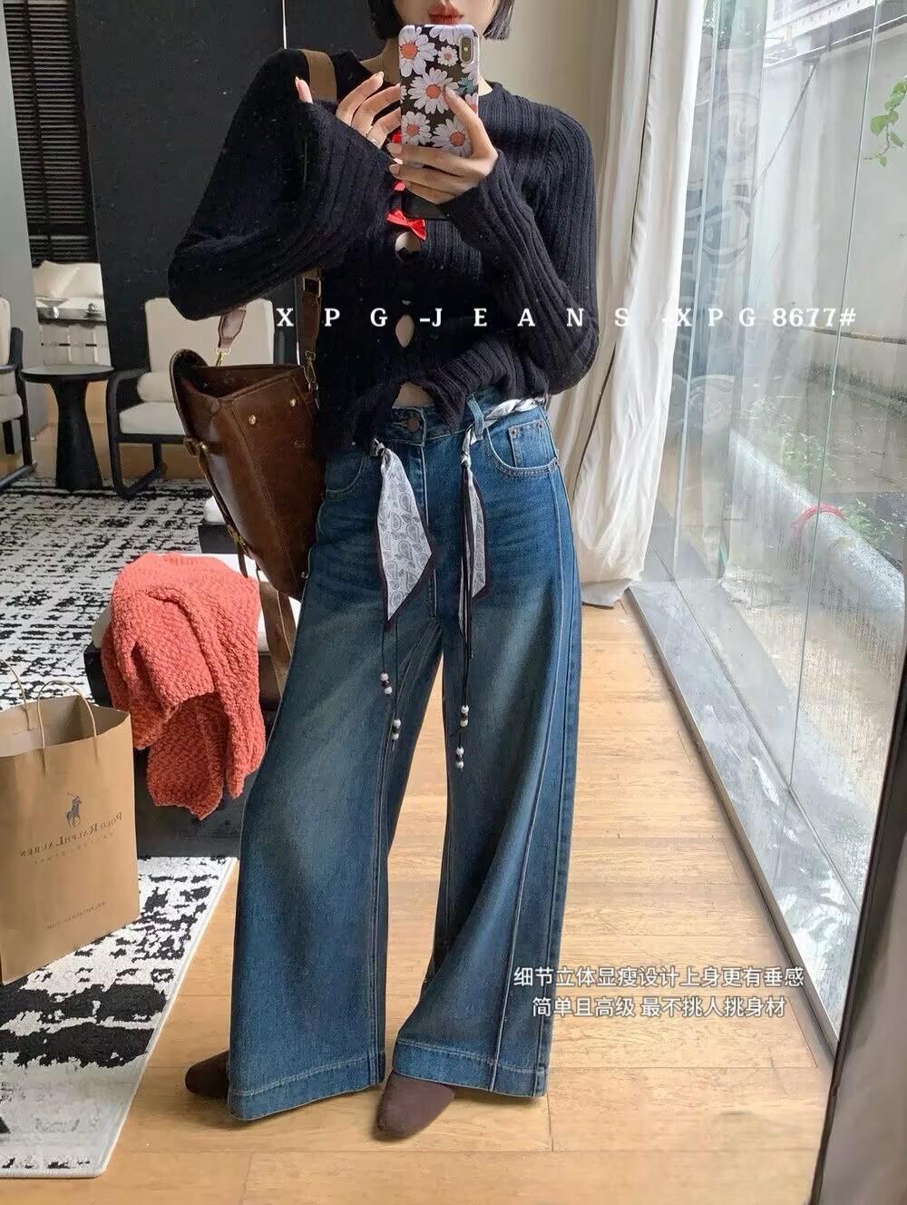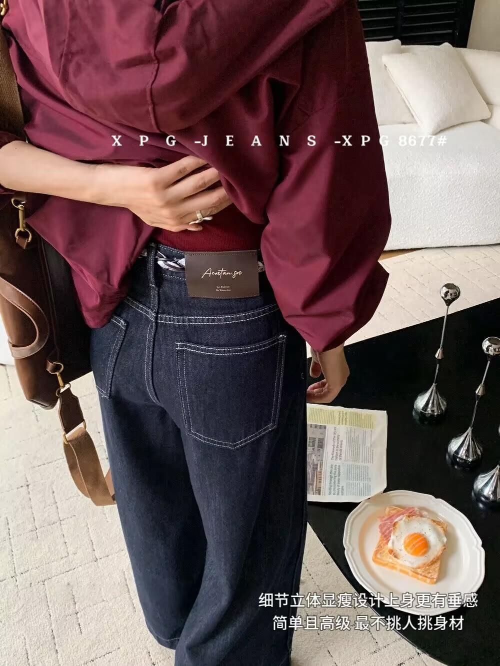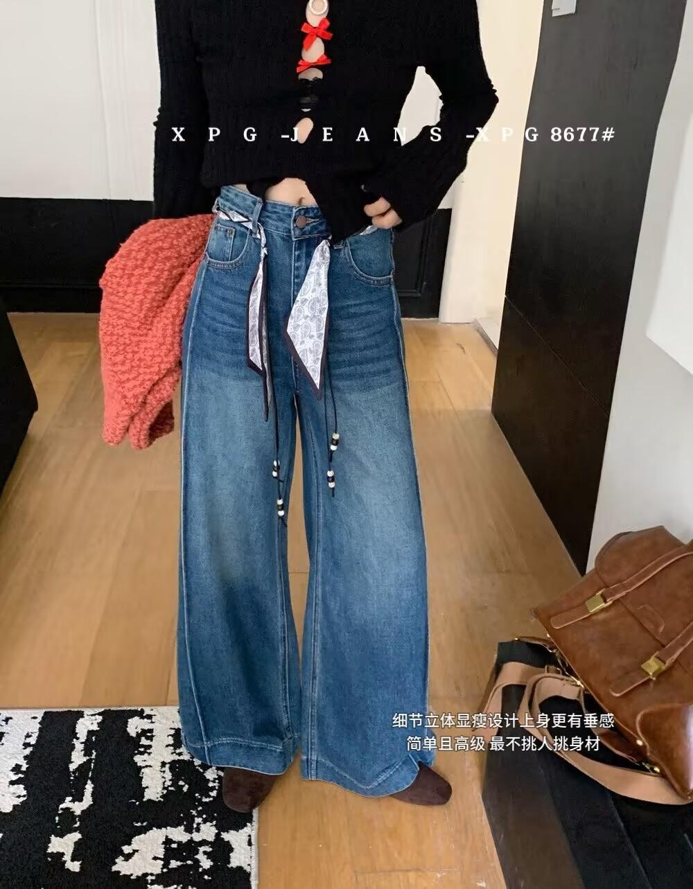 2025 Tres Colores Pierna Recta Otoño Nuevo Jeans Pierna Recta Cintura Alta Silueta Cintura Alta Adelgazantes Versátiles Sueltos Modificadores