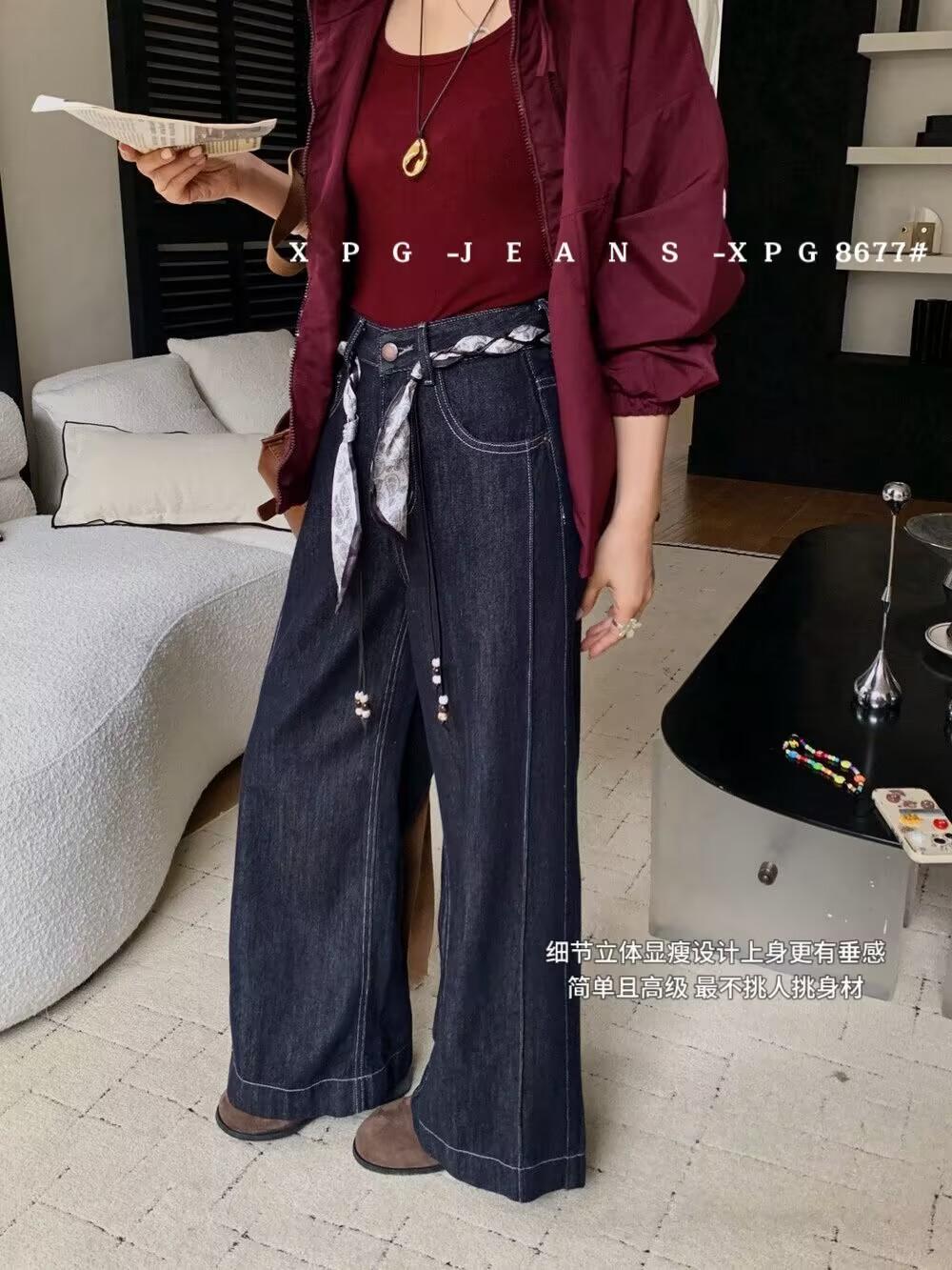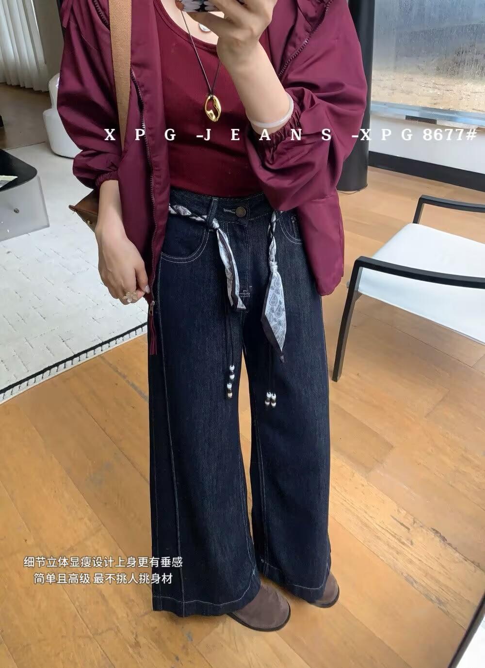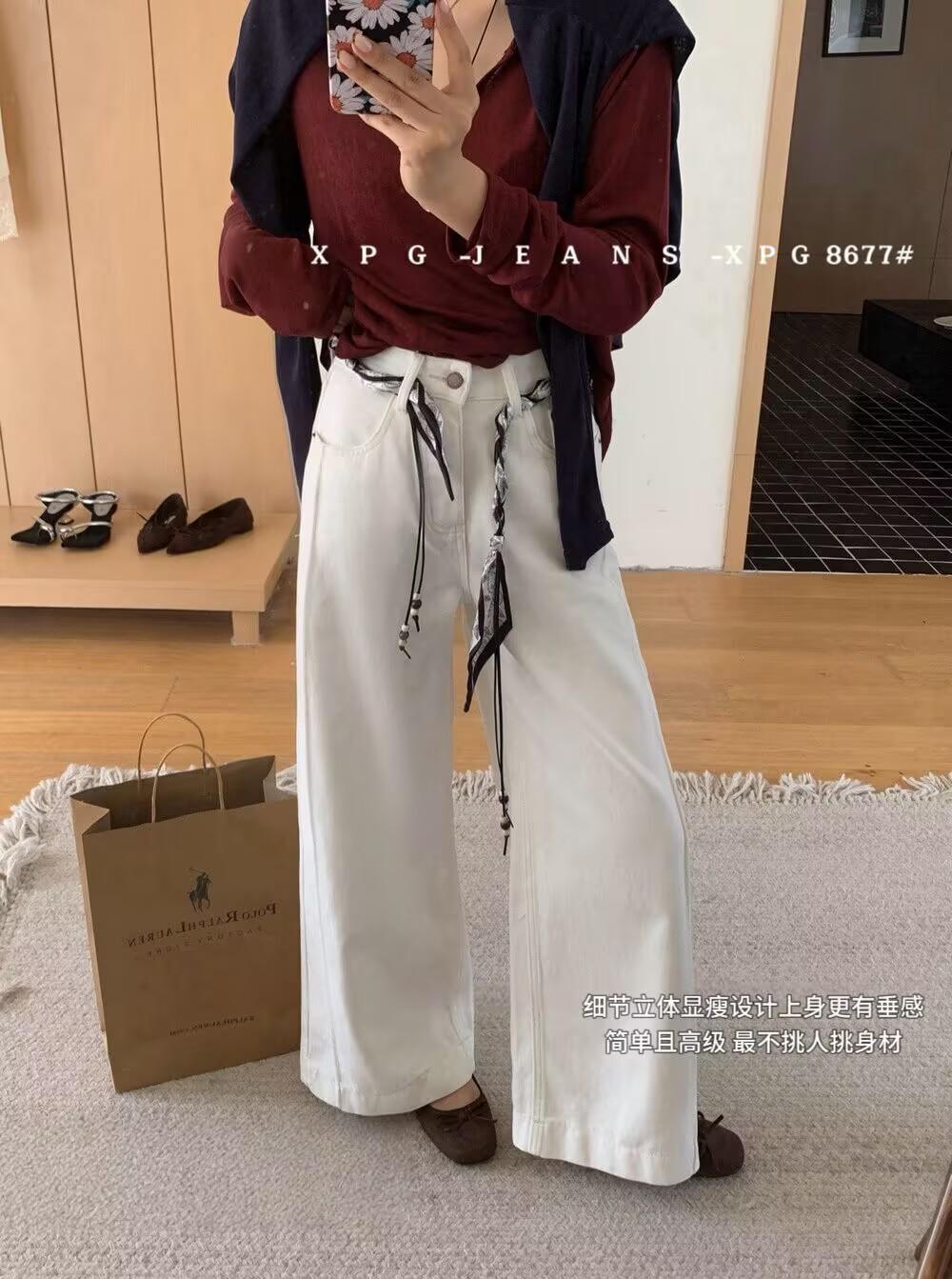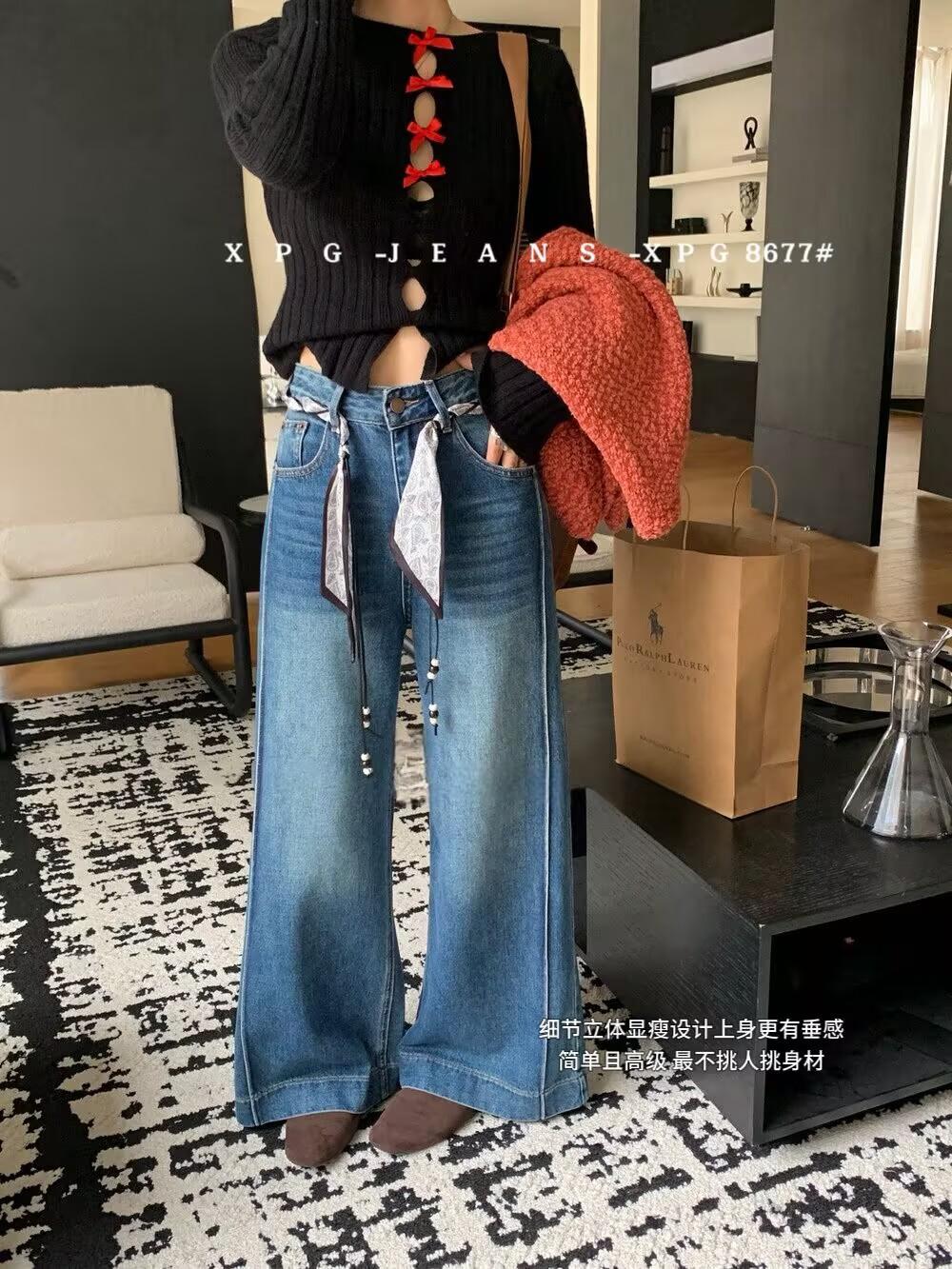 2025 Tres Colores Pierna Recta Otoño Nuevo Jeans Pierna Recta Cintura Alta Silueta Cintura Alta Adelgazantes Versátiles Sueltos Modificadores