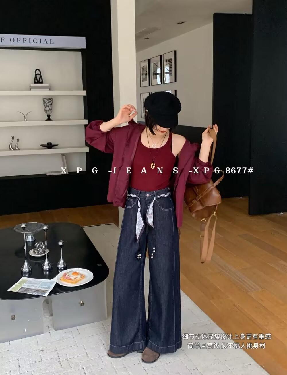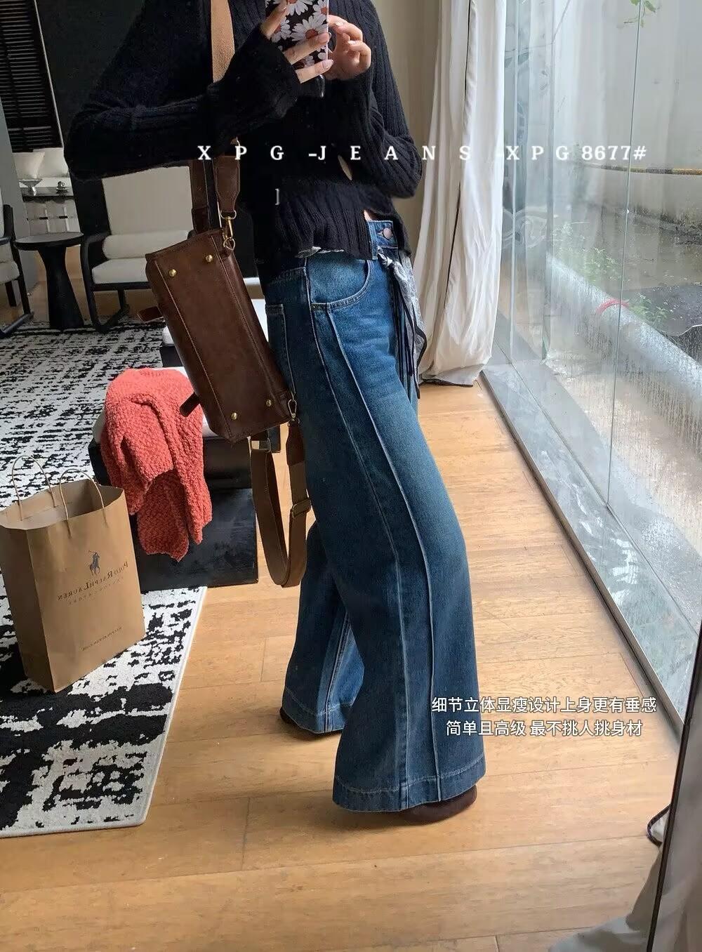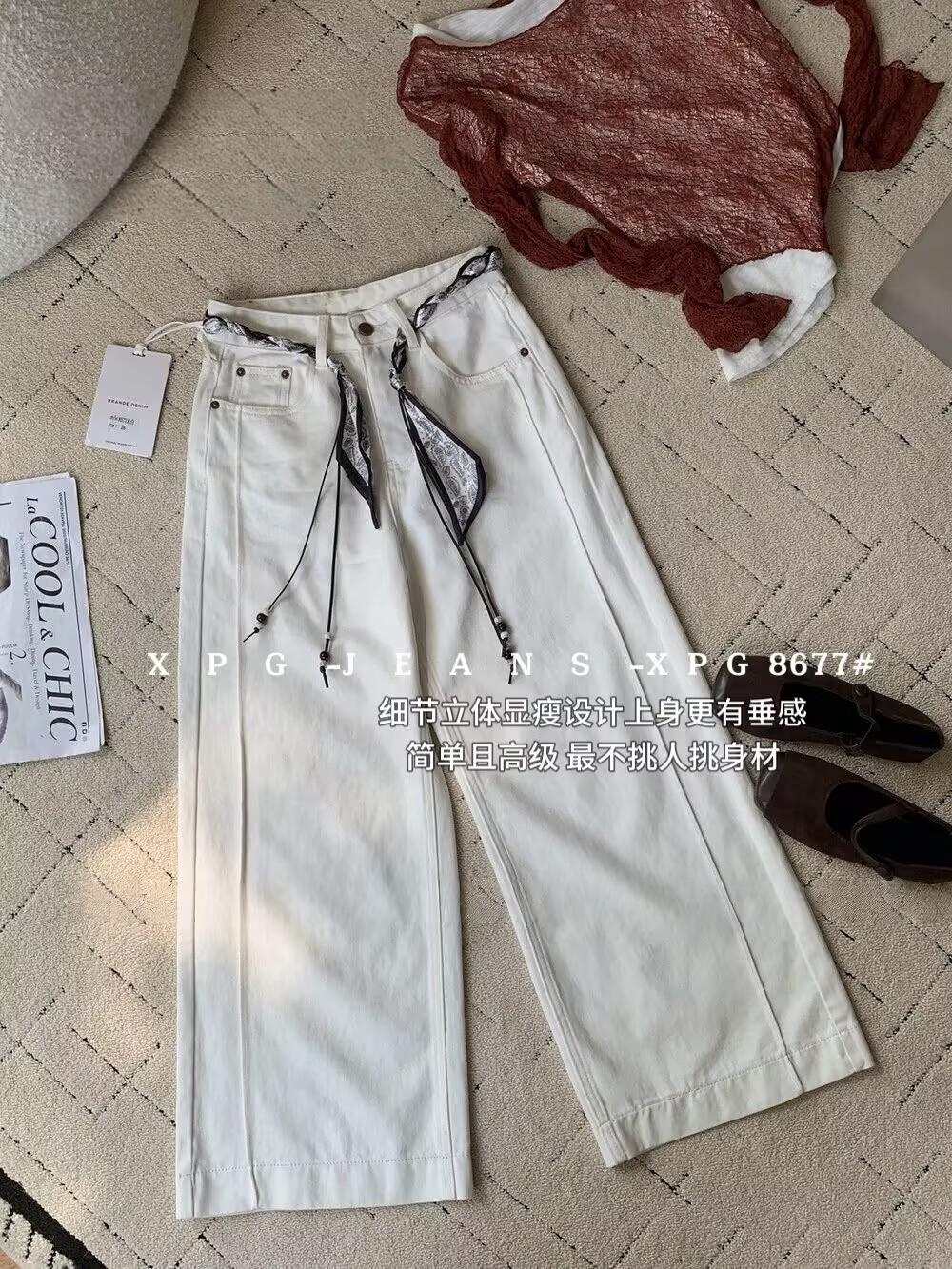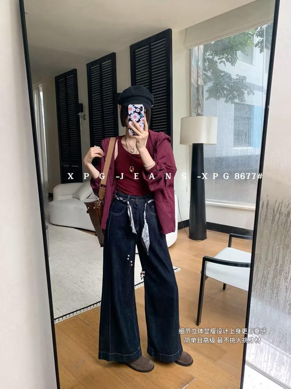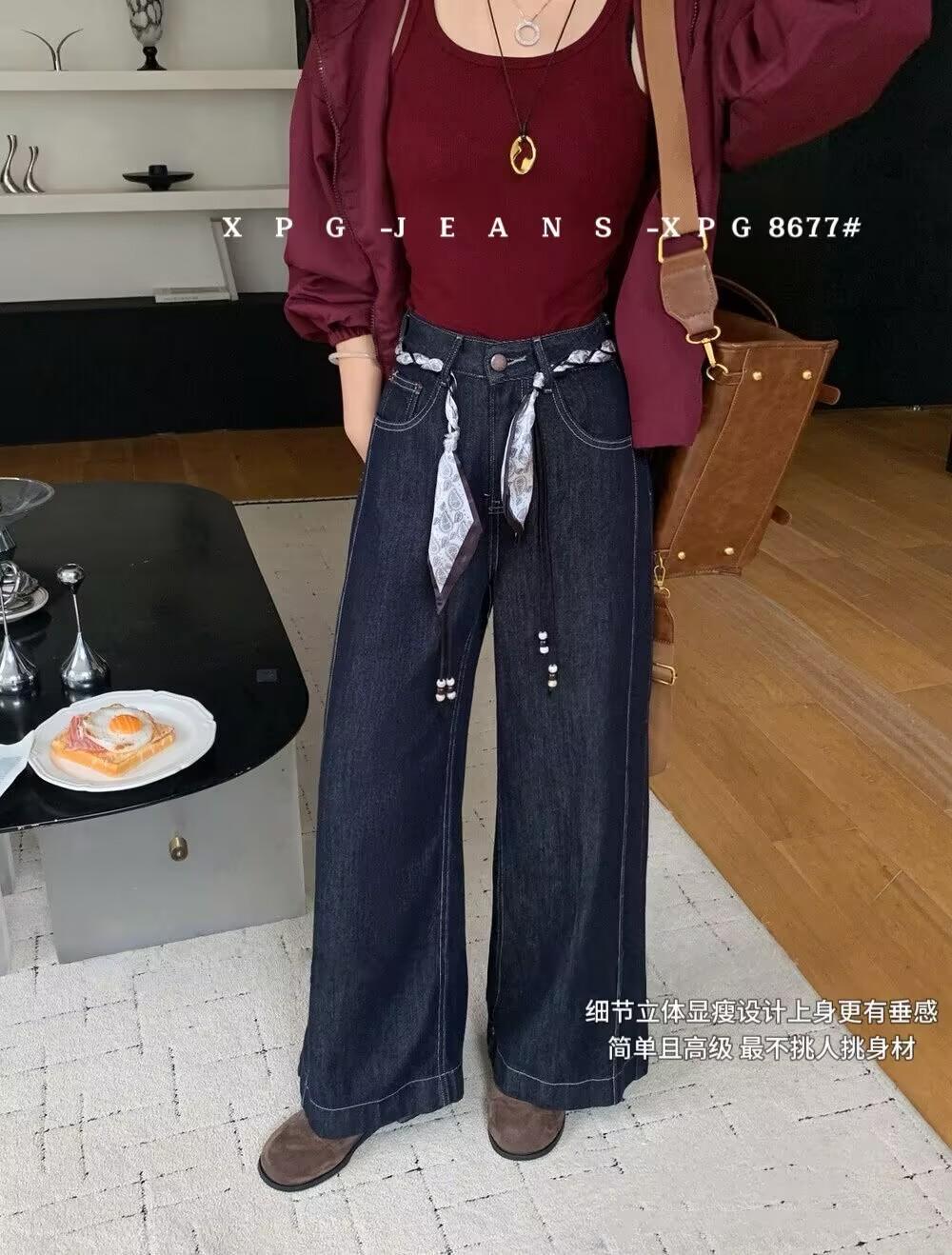 2025 Tres Colores Pierna Recta Otoño Nuevo Jeans Pierna Recta Cintura Alta Silueta Cintura Alta Adelgazantes Versátiles Sueltos Modificadores