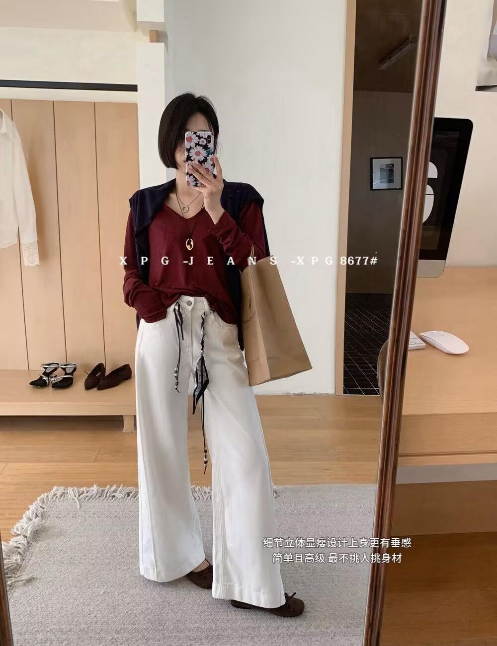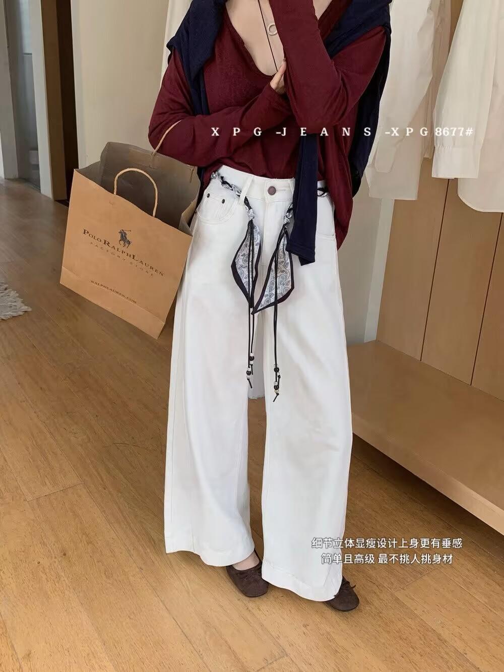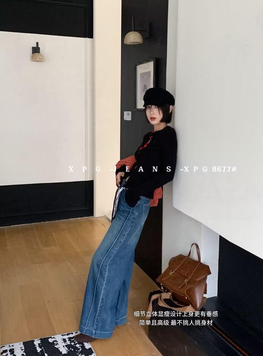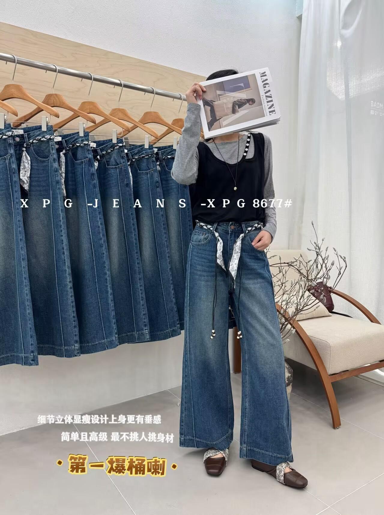 2025 Tres Colores Pierna Recta Otoño Nuevo Jeans Pierna Recta Cintura Alta Silueta Cintura Alta Adelgazantes Versátiles Sueltos Modificadores