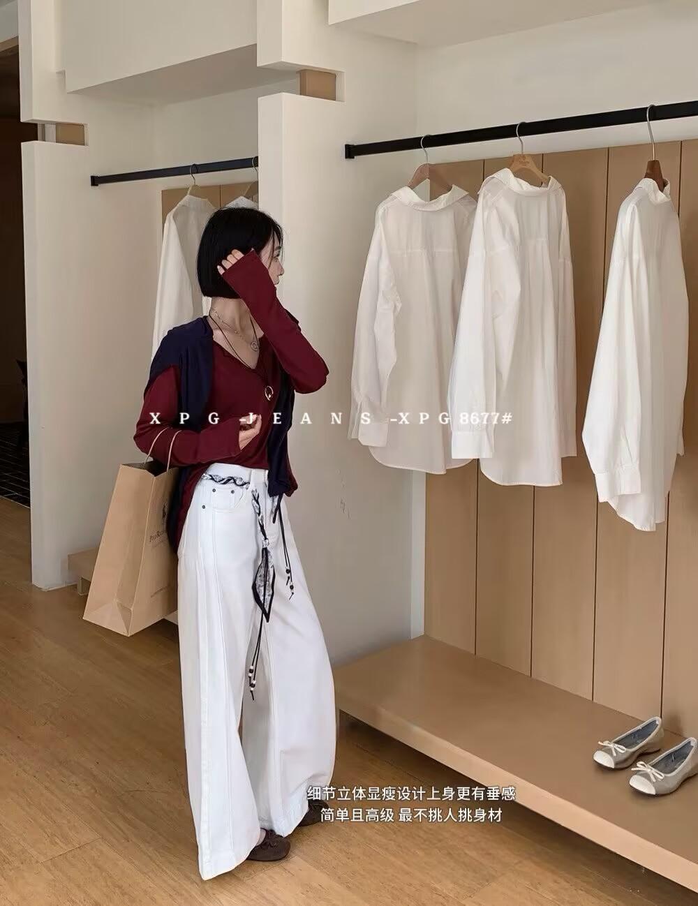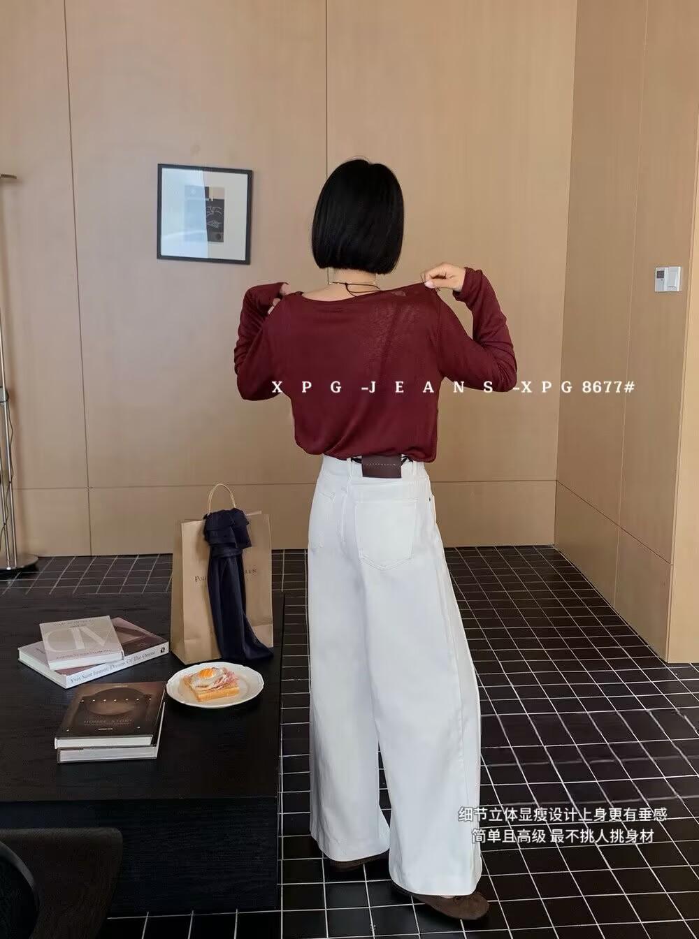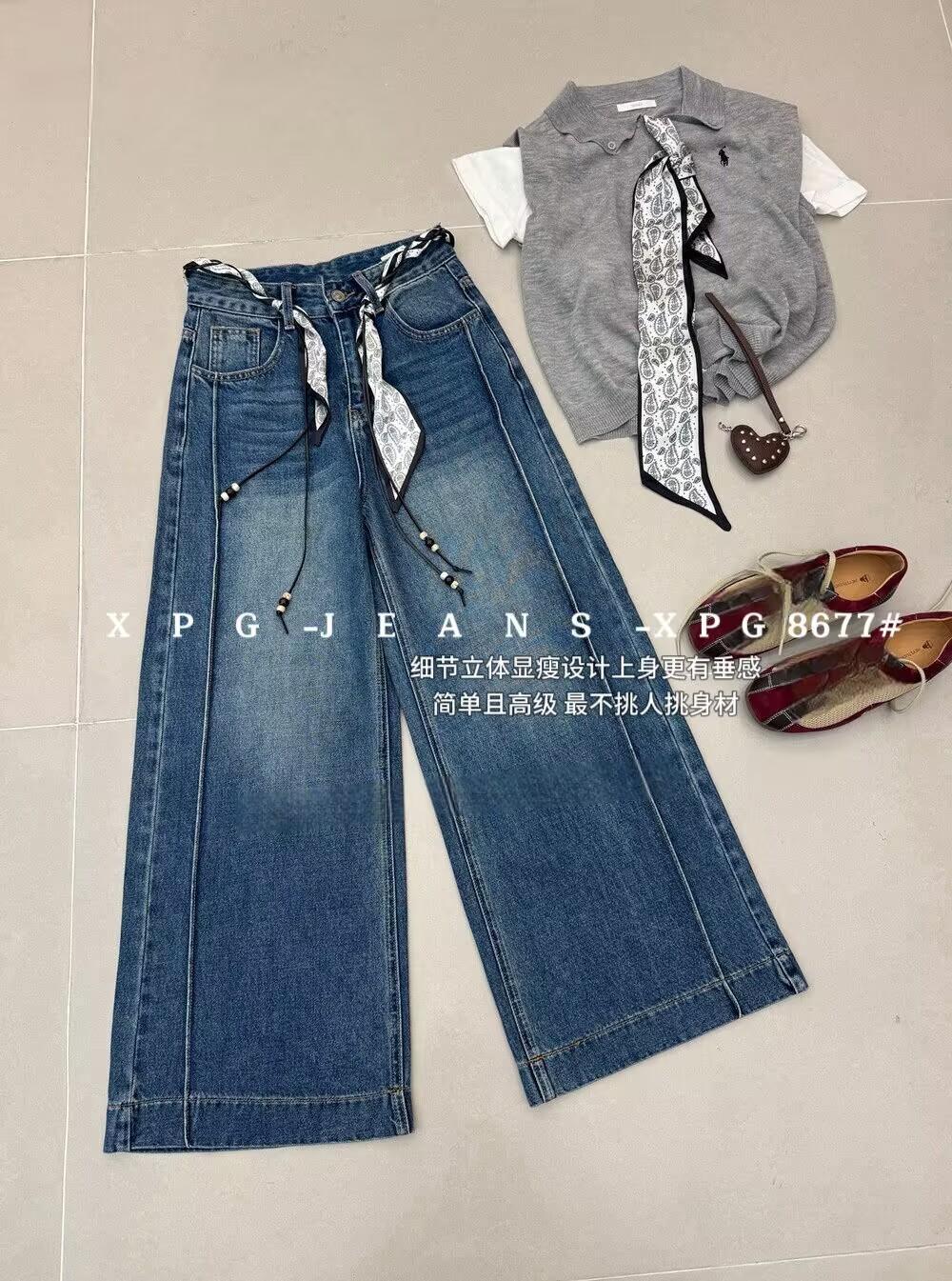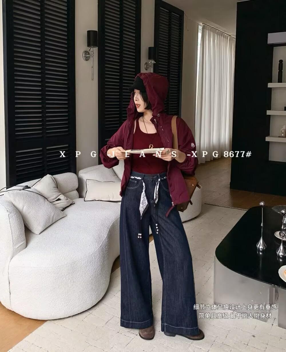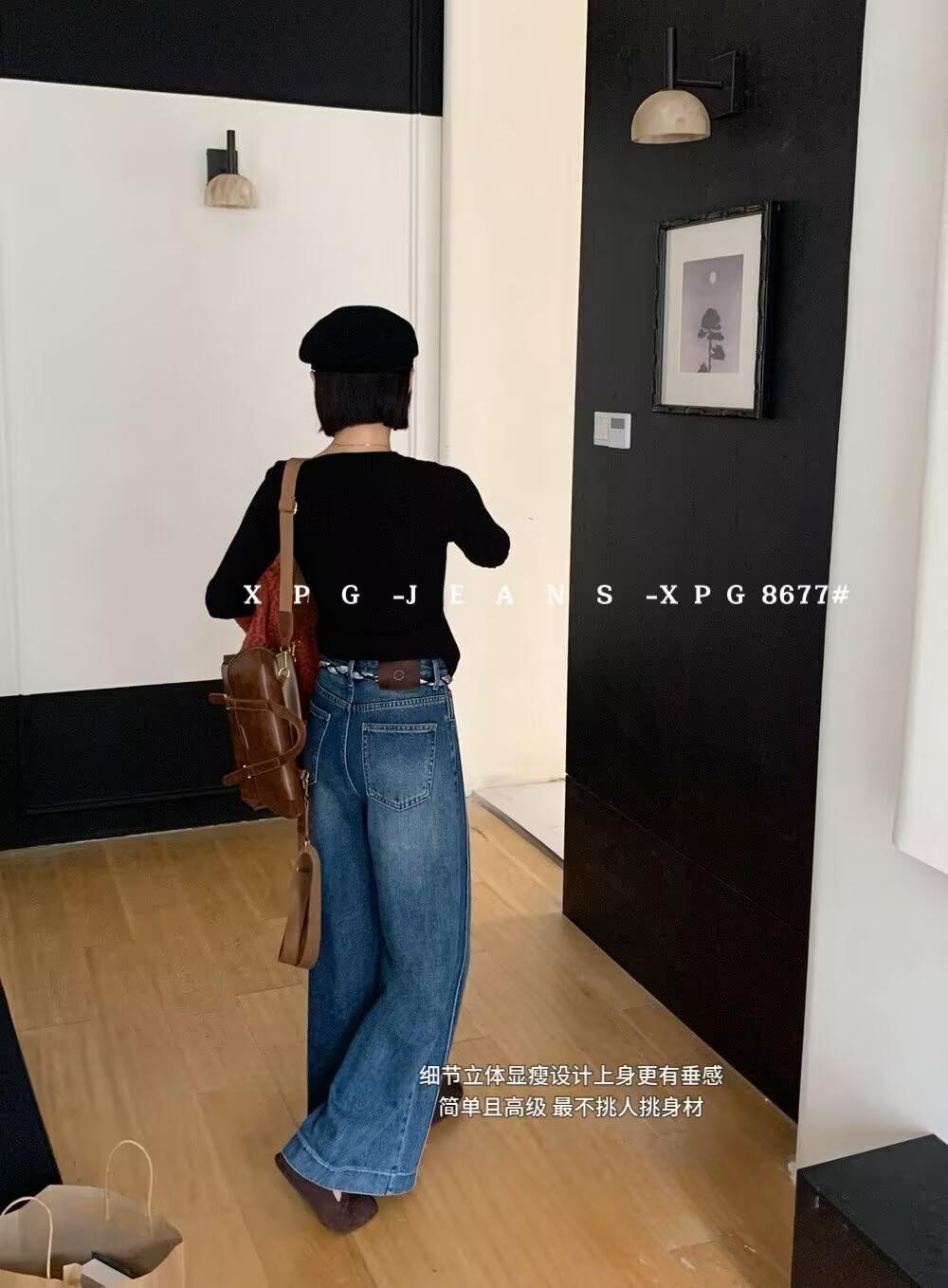 2025 Tres Colores Pierna Recta Otoño Nuevo Jeans Pierna Recta Cintura Alta Silueta Cintura Alta Adelgazantes Versátiles Sueltos Modificadores