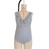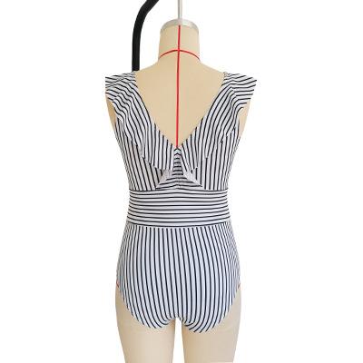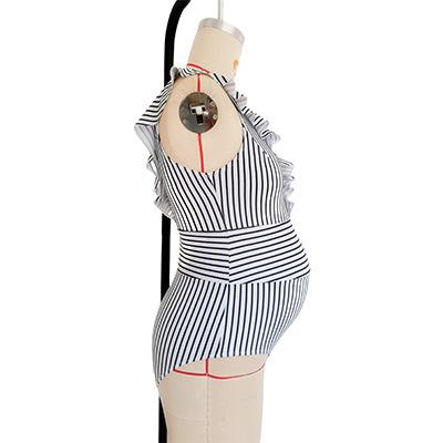 Traje de Baño de Maternidad Cruzado Europeo y Americano 2025 para Mujer Personalizado Nuevo con Volantes Rayas Blancas y Negras Soporte para Vientre Traje de Baño de Playa para Mujer