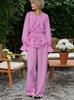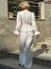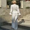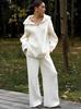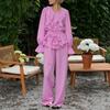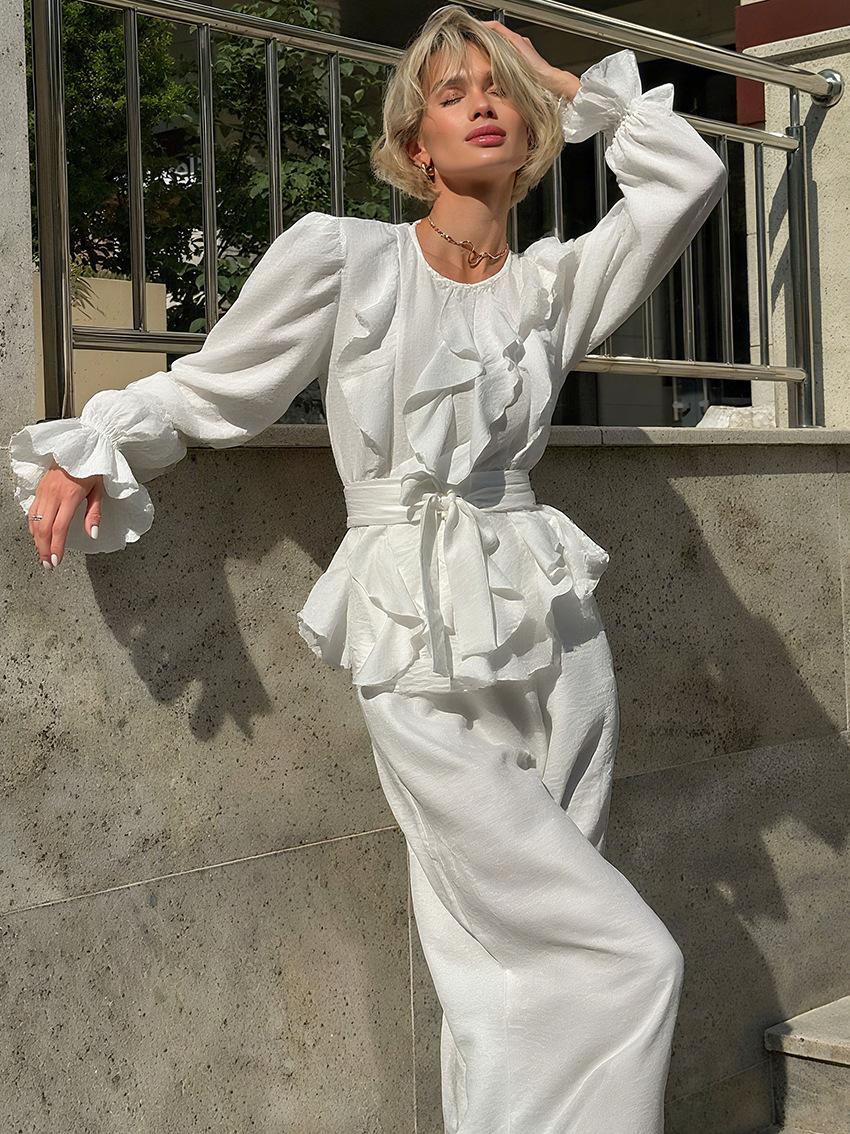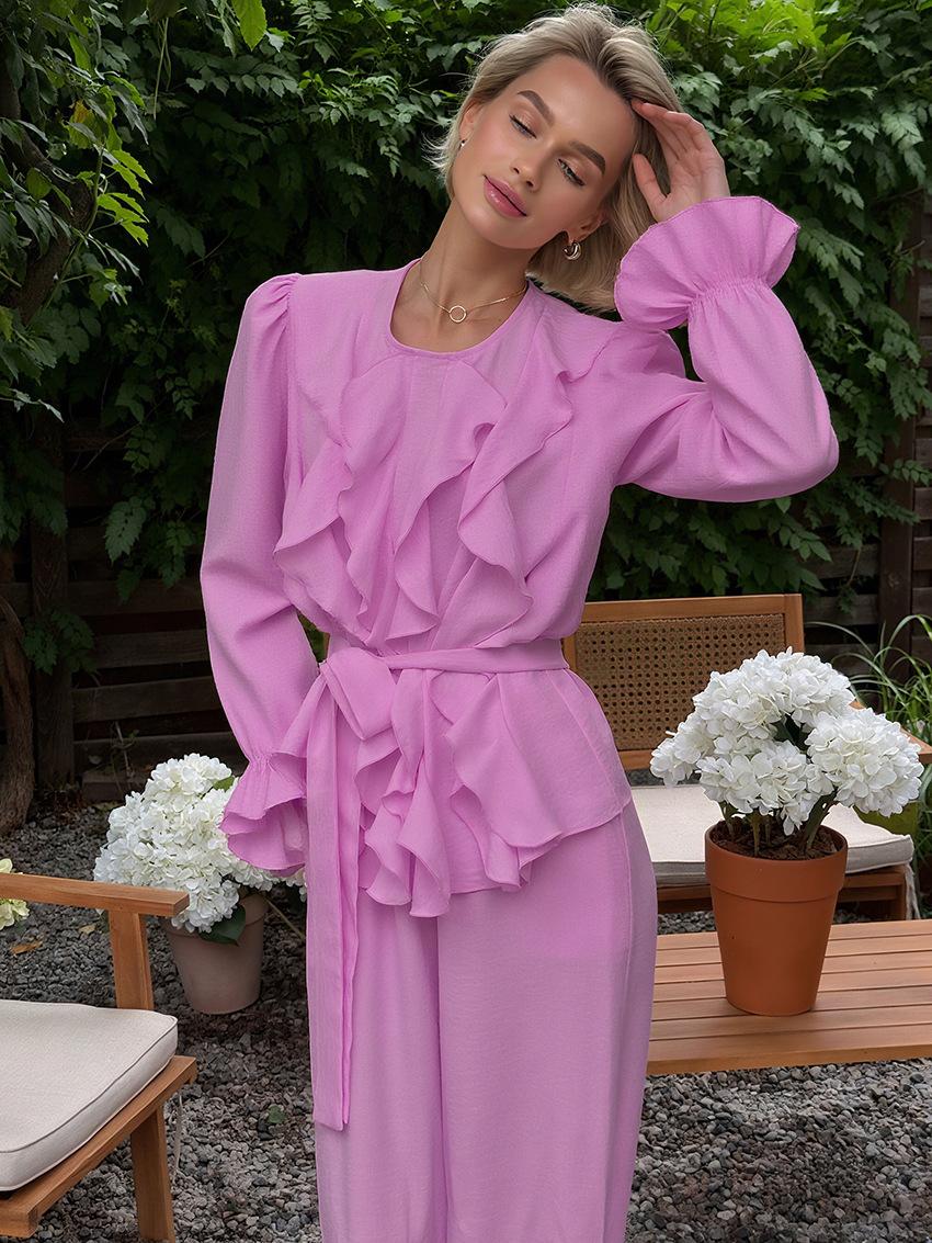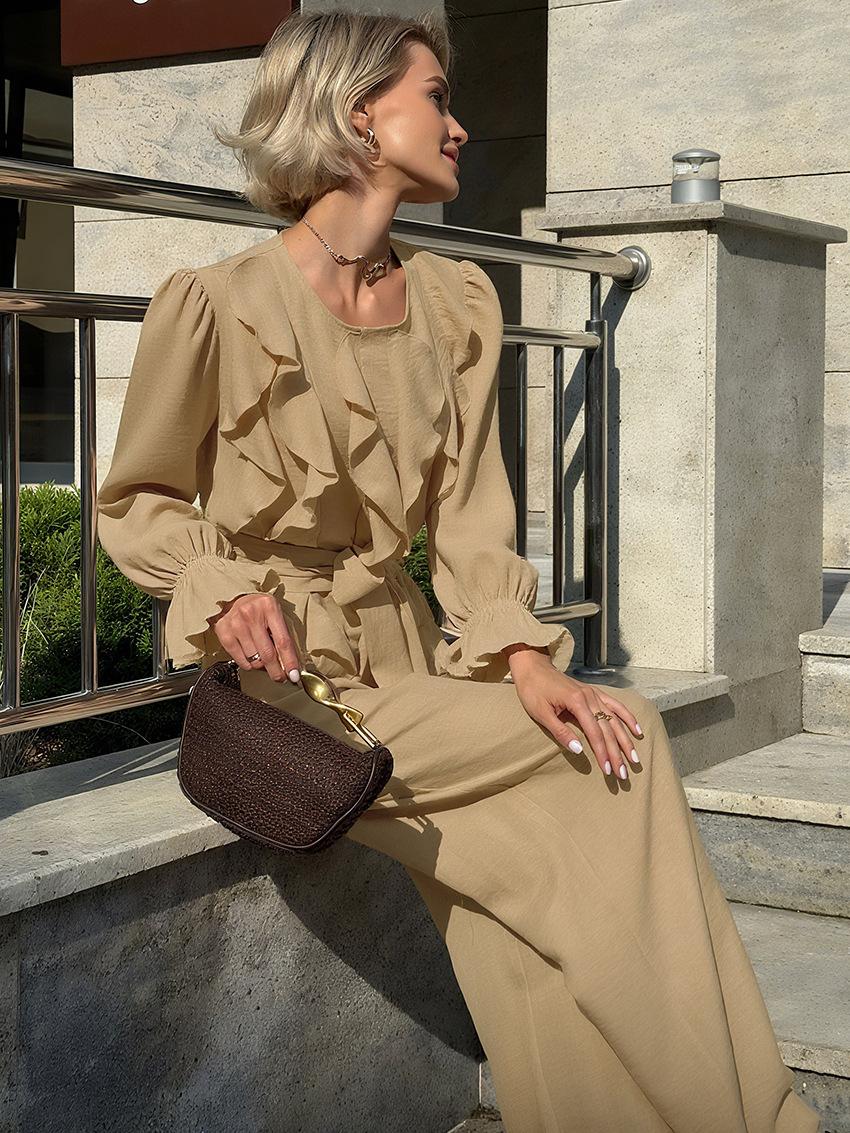 Nuevo Otoño/Invierno Cuello Redondo Manga Larga Manga Campana en Capas Conjunto de Pantalón Largo Manga Larga Sentido del Diseño Temperamento Moda 2025 Transfronterizo Viaje al Trabajo