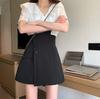 Verano Nuevo Falda Corta de Línea A Delgada de Nicho de Cintura Alta Falda Pantalón Corto Irregular para Mujer Falda Negra Petite