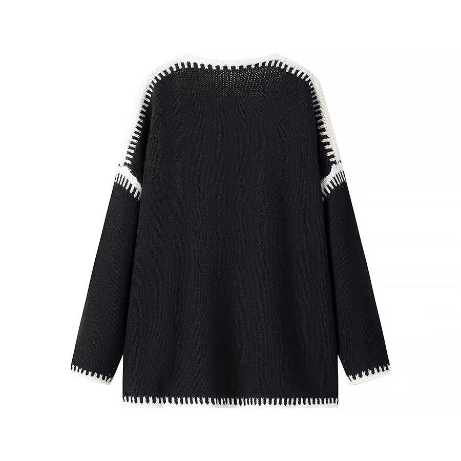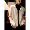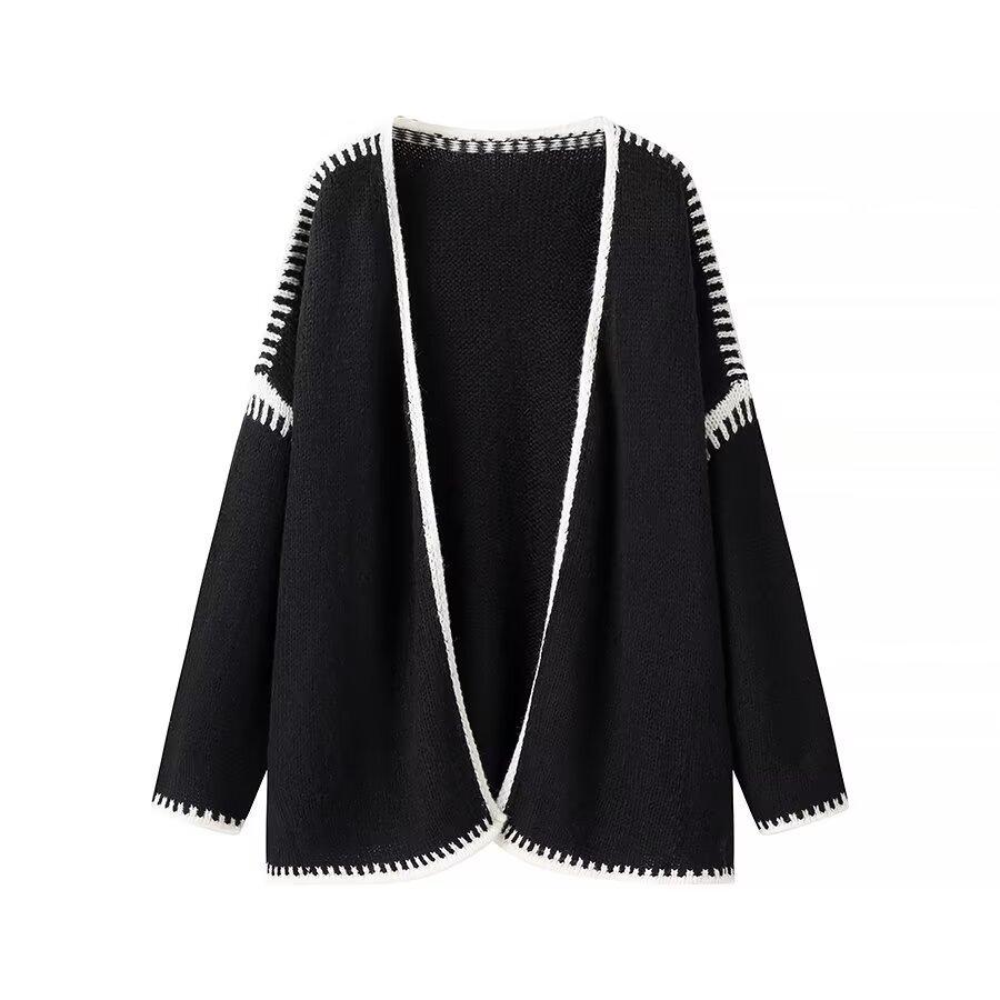 Fabricante de Comercio Exterior Europeo y Americano Abrigo Cárdigan para Mujer Otoño e Invierno Temperamento Estilo para Ir al Trabajo Cuello en V Manga Larga Cárdigan de Punto