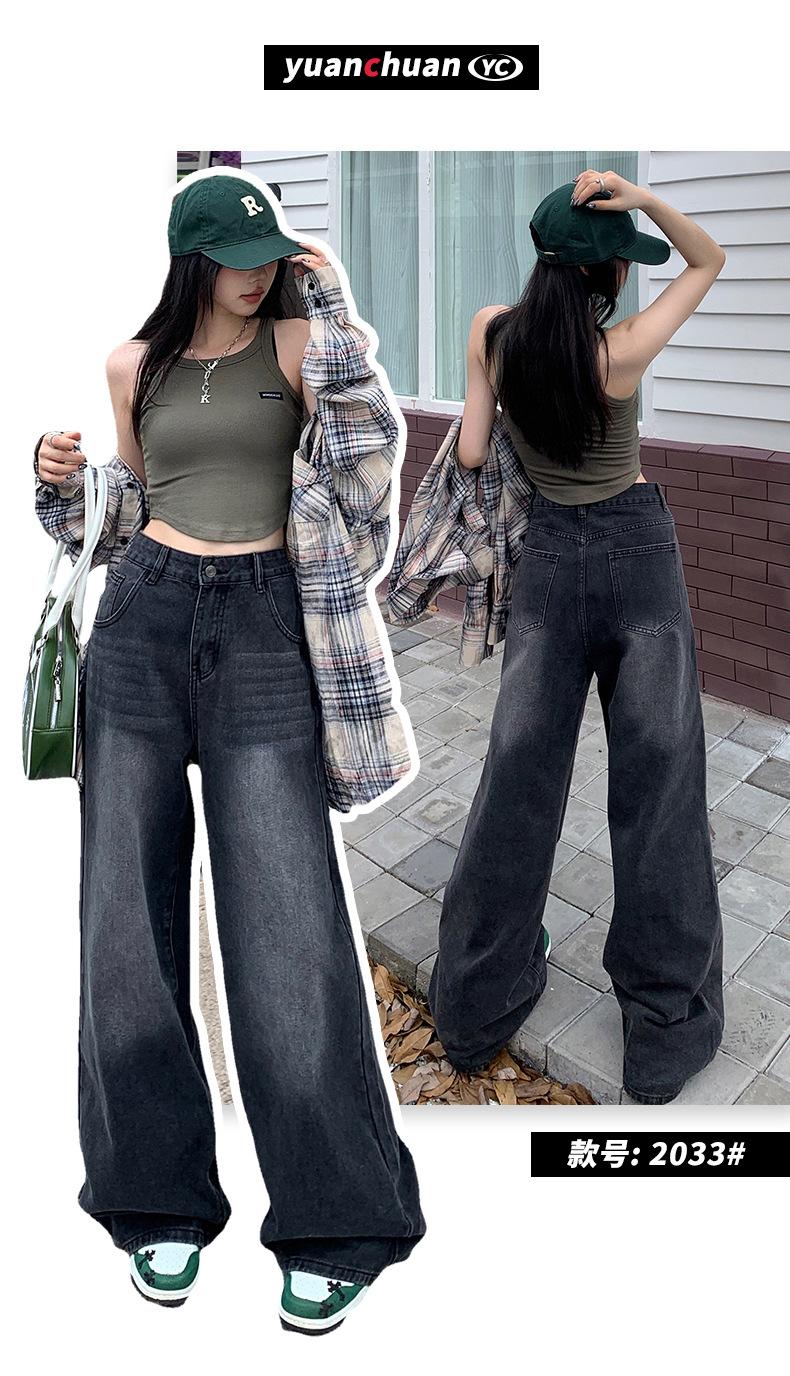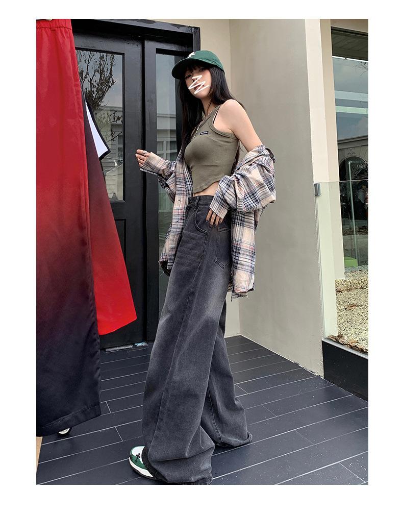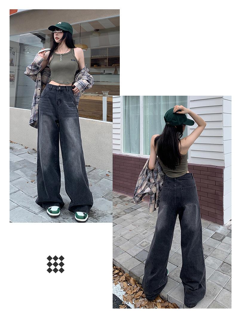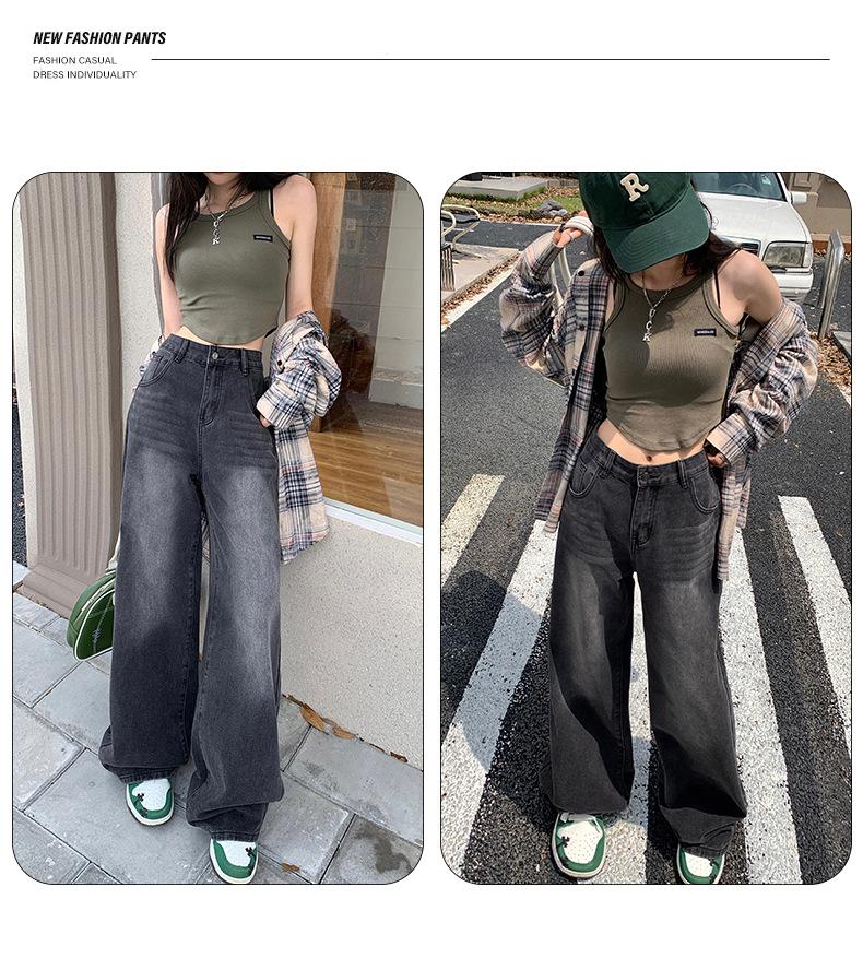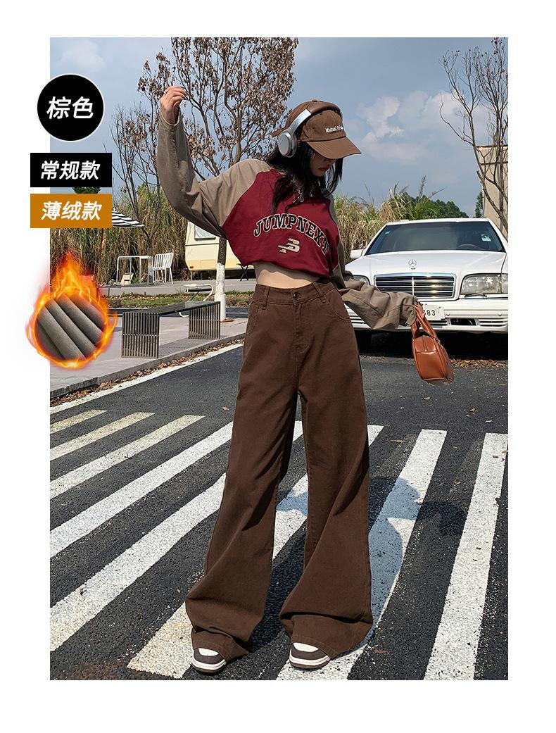 Ventas directas de fábrica Americano retro cintura alta pantalones de pierna ancha otoño e invierno nuevos productos sueltos caída hasta el suelo rectos jeans de moda para mujer