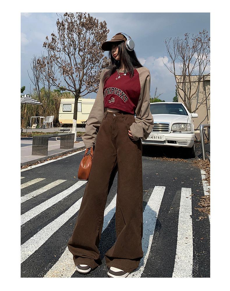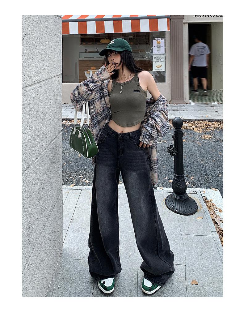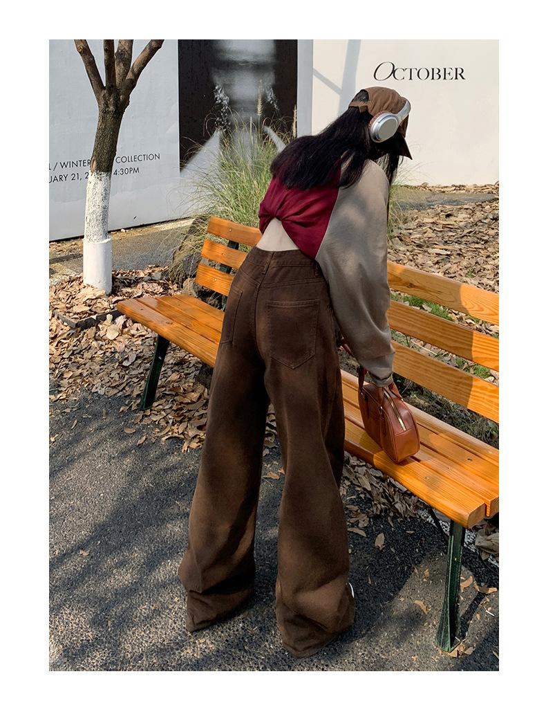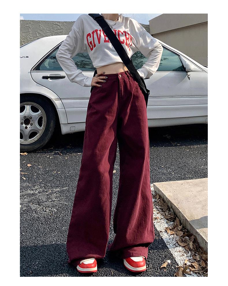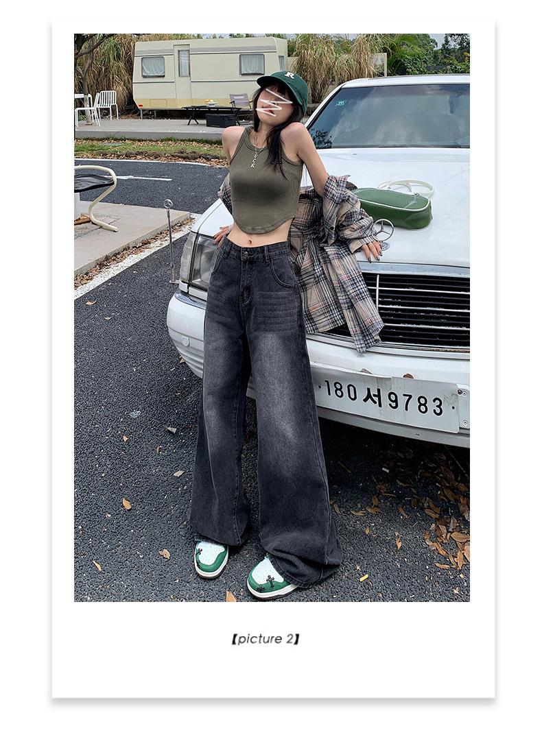 Ventas directas de fábrica Americano retro cintura alta pantalones de pierna ancha otoño e invierno nuevos productos sueltos caída hasta el suelo rectos jeans de moda para mujer