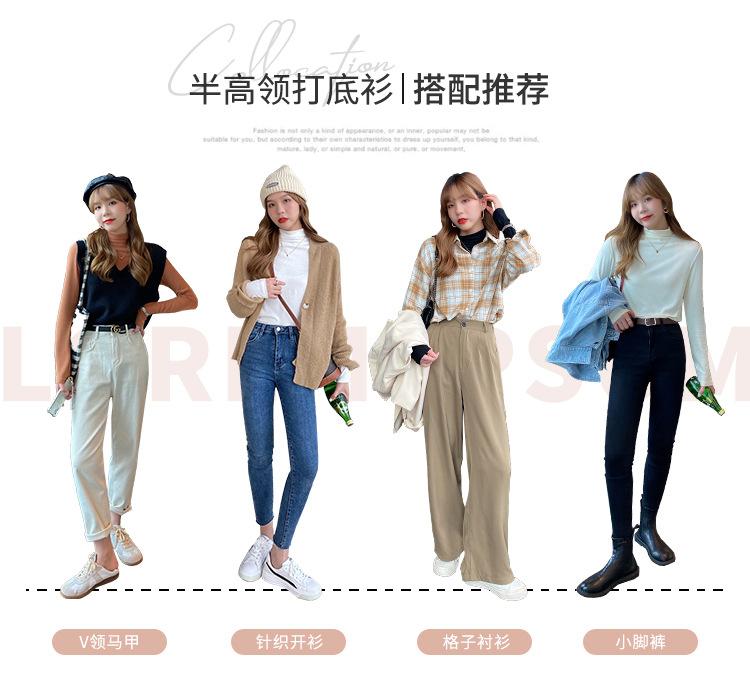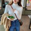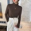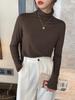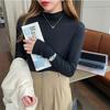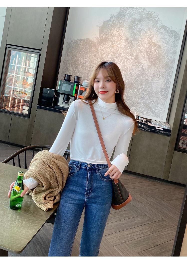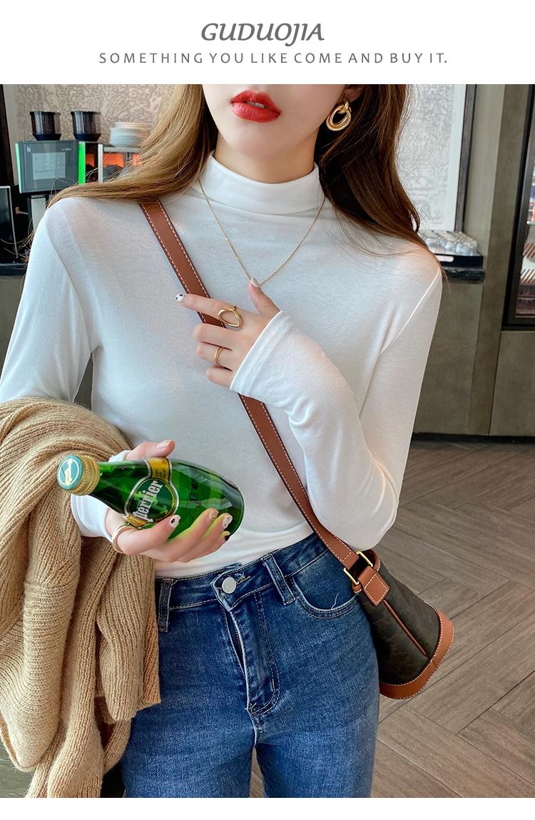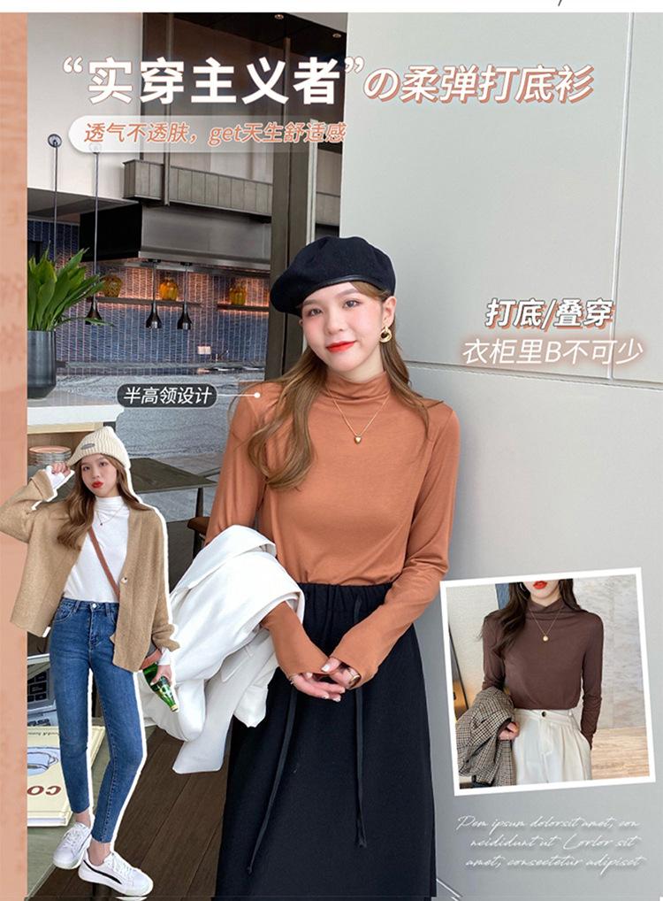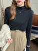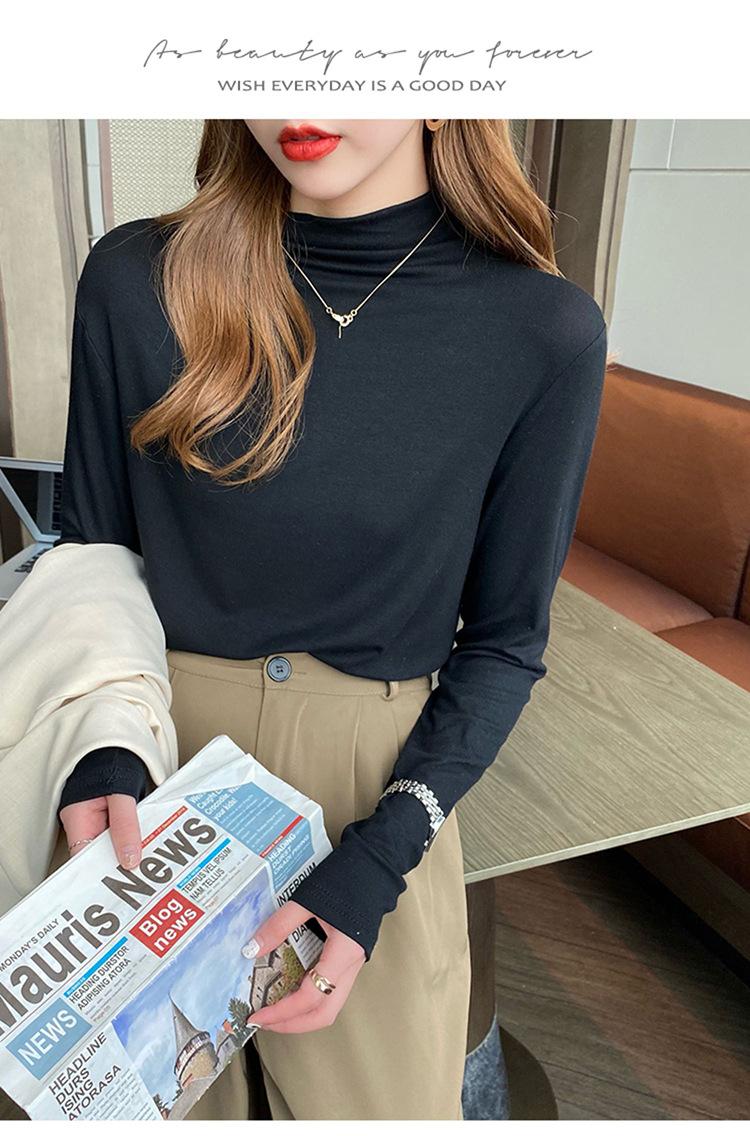 Camiseta básica de color sólido con cuello semi-alto para mujer, nueva para primavera y otoño 2025, delgada y de manga larga, top interior de modal