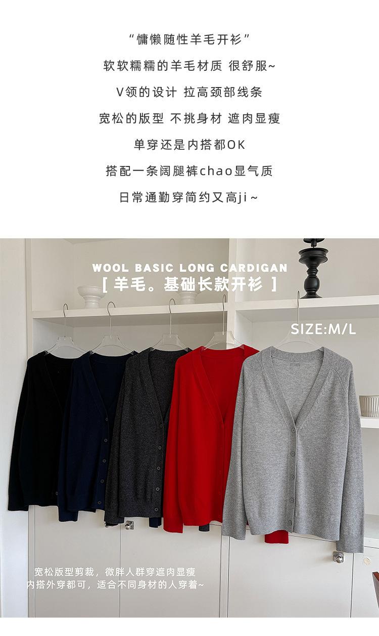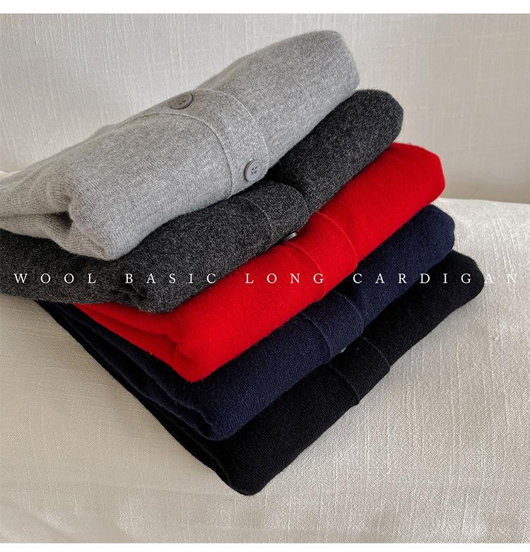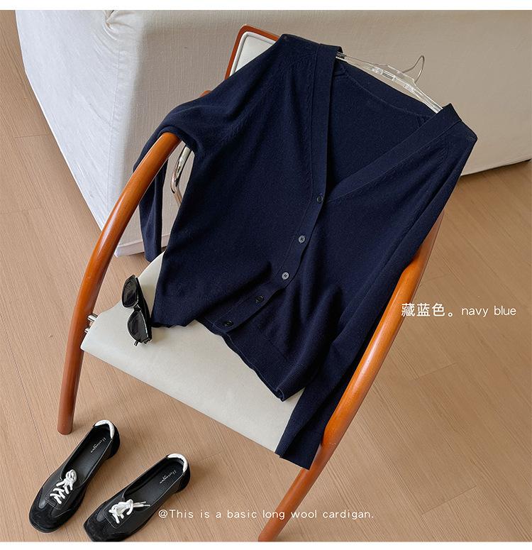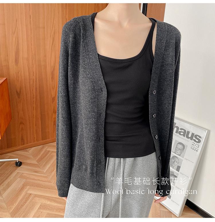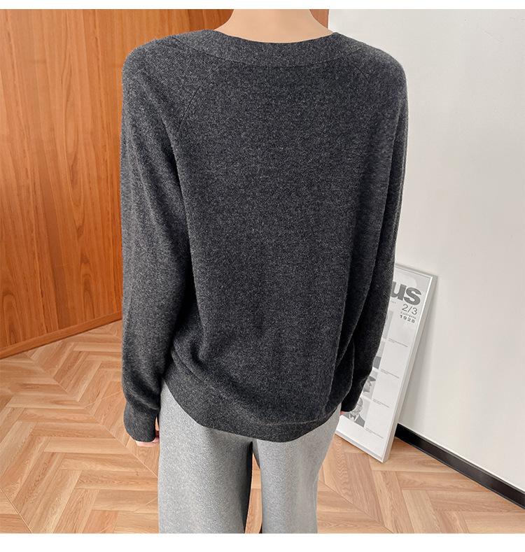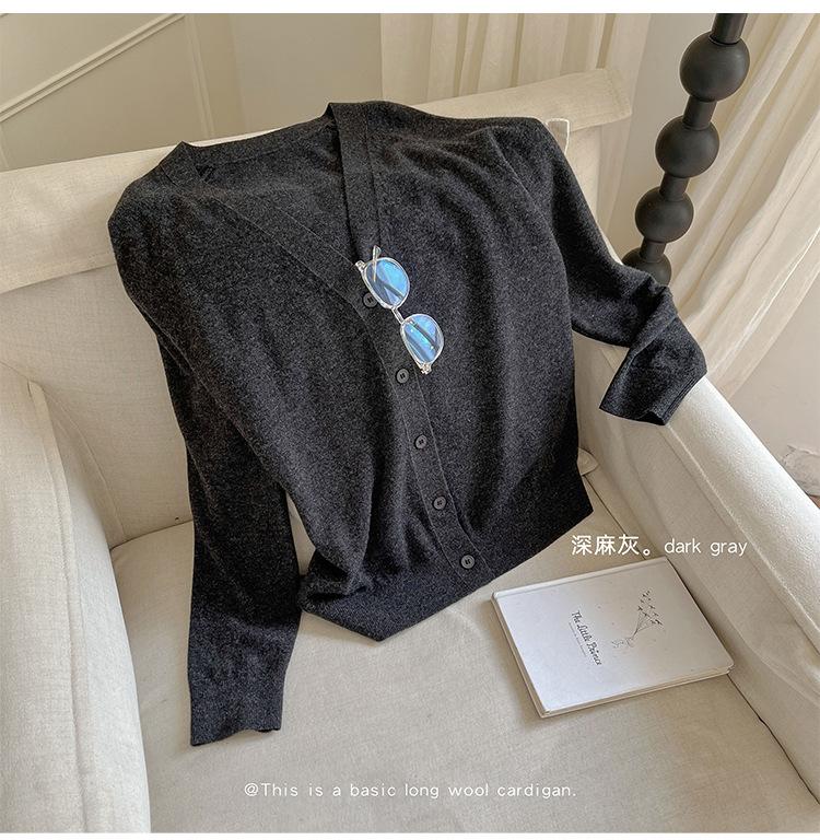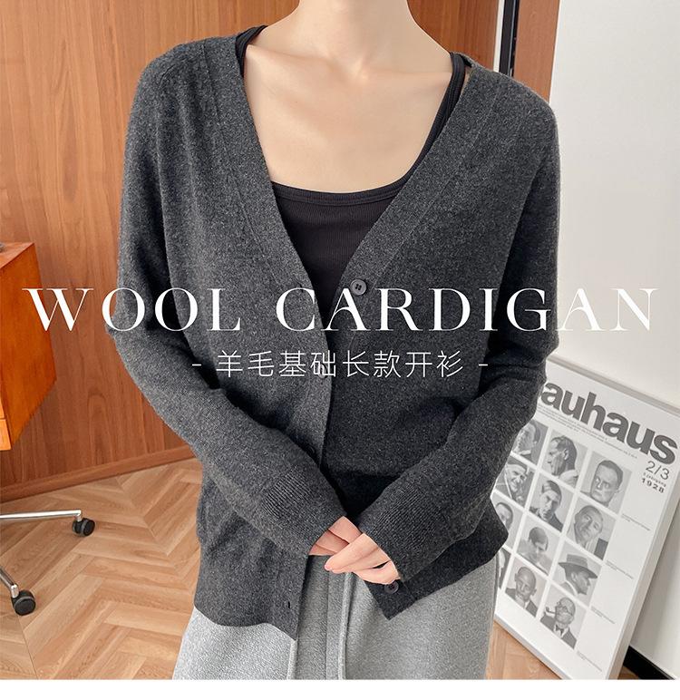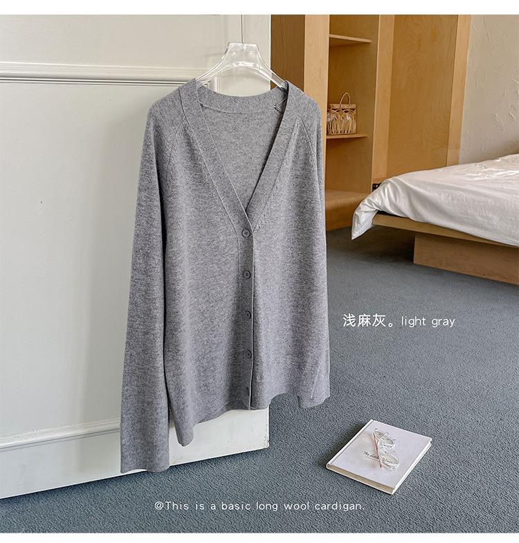Tejido de Punto con Cuello en V de Lana Merino 100% para Mujer Otoño/Invierno Estilo Relajado Manga Larga Cárdigan Color Sólido Casual Top Base Ropa Exterior