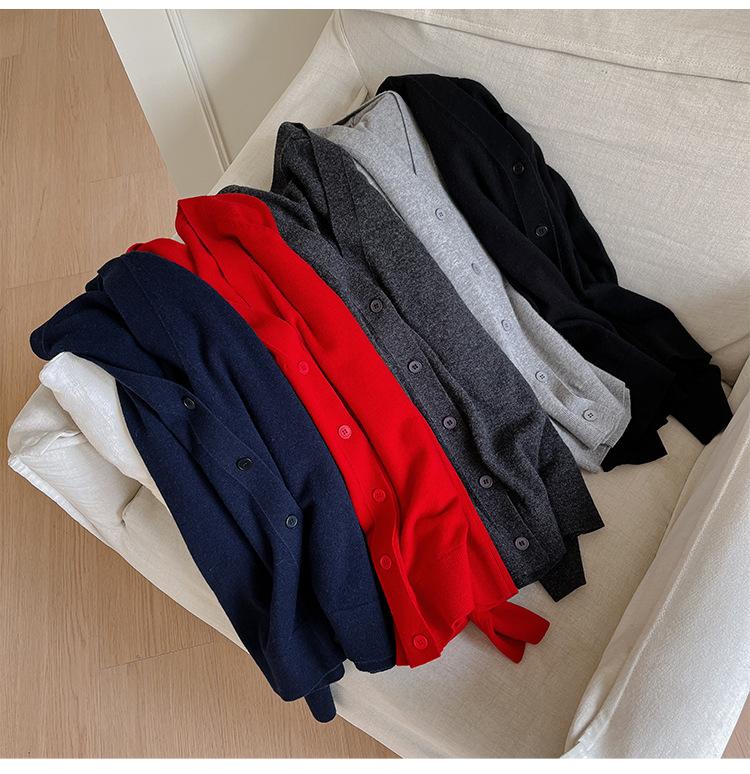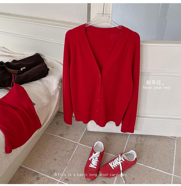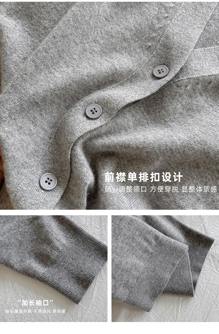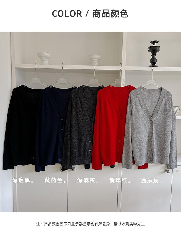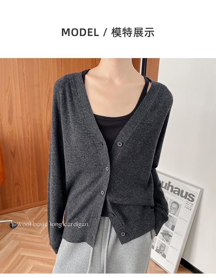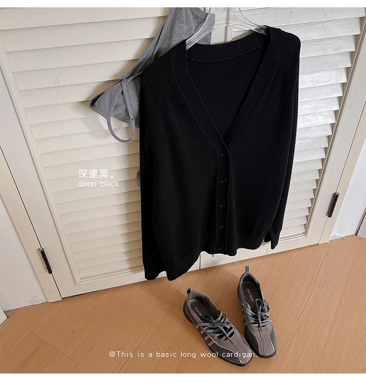 Tejido de Punto con Cuello en V de Lana Merino 100% para Mujer Otoño/Invierno Estilo Relajado Manga Larga Cárdigan Color Sólido Casual Top Base Ropa Exterior