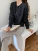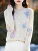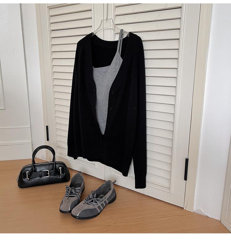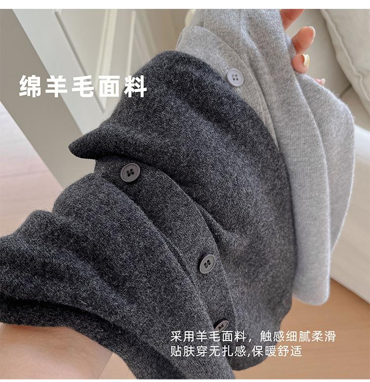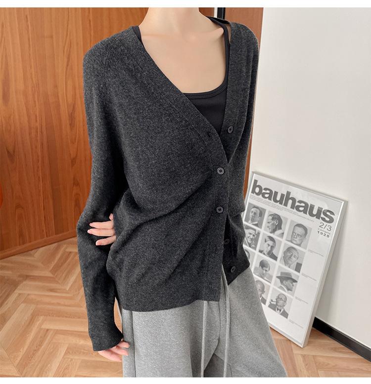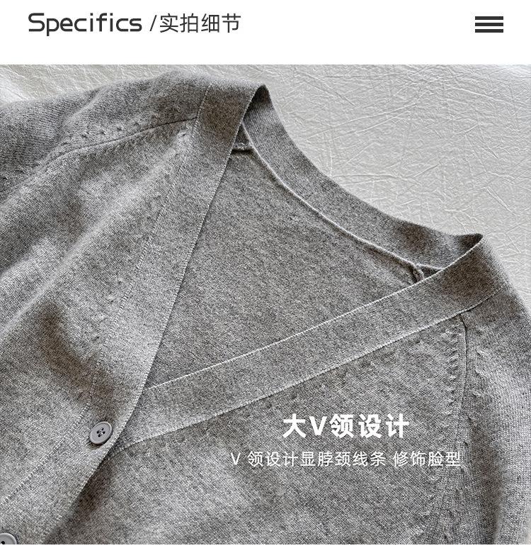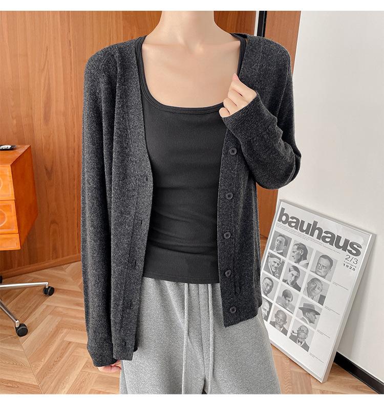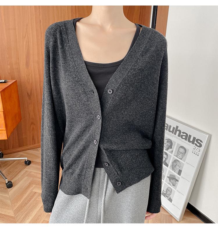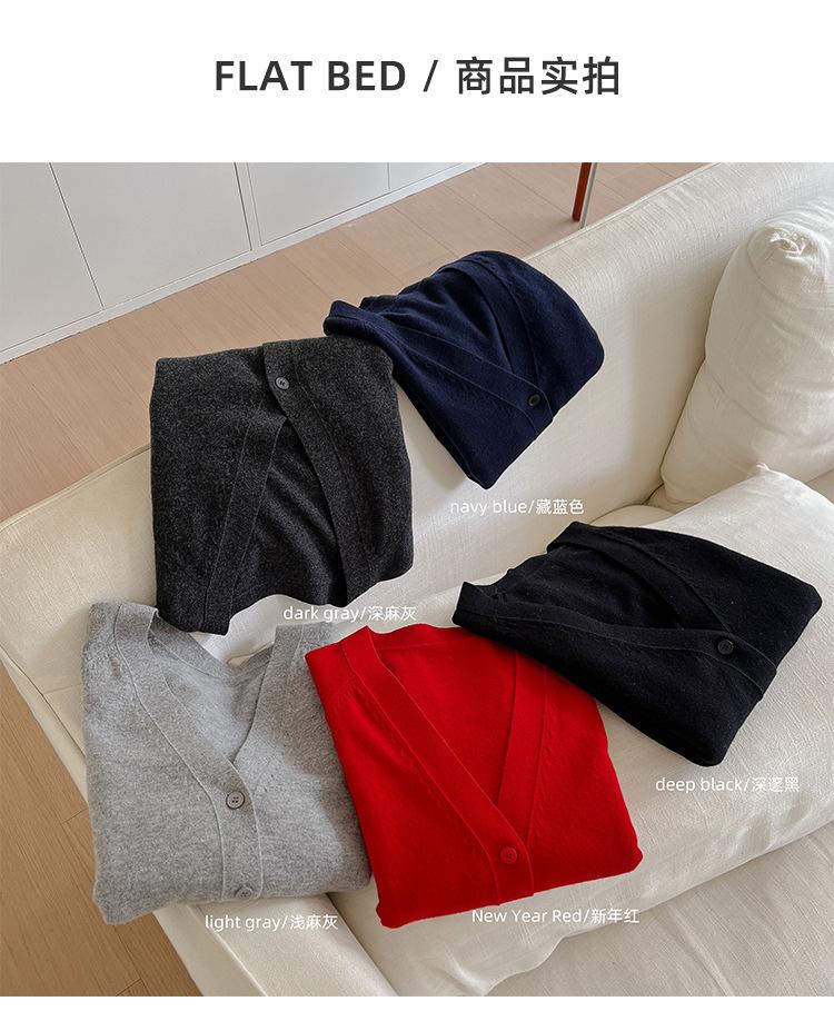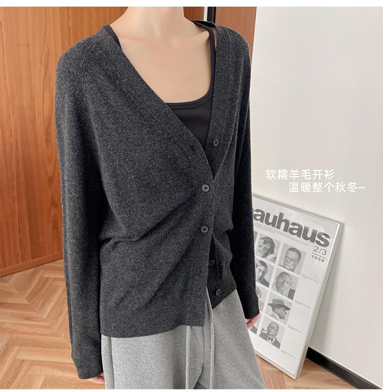 Tejido de Punto con Cuello en V de Lana Merino 100% para Mujer Otoño/Invierno Estilo Relajado Manga Larga Cárdigan Color Sólido Casual Top Base Ropa Exterior