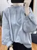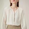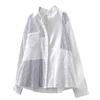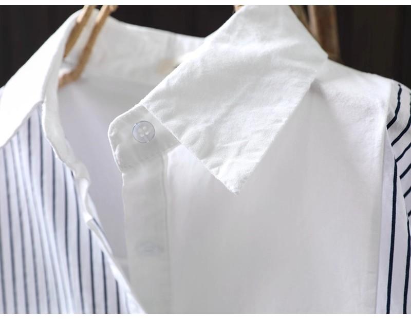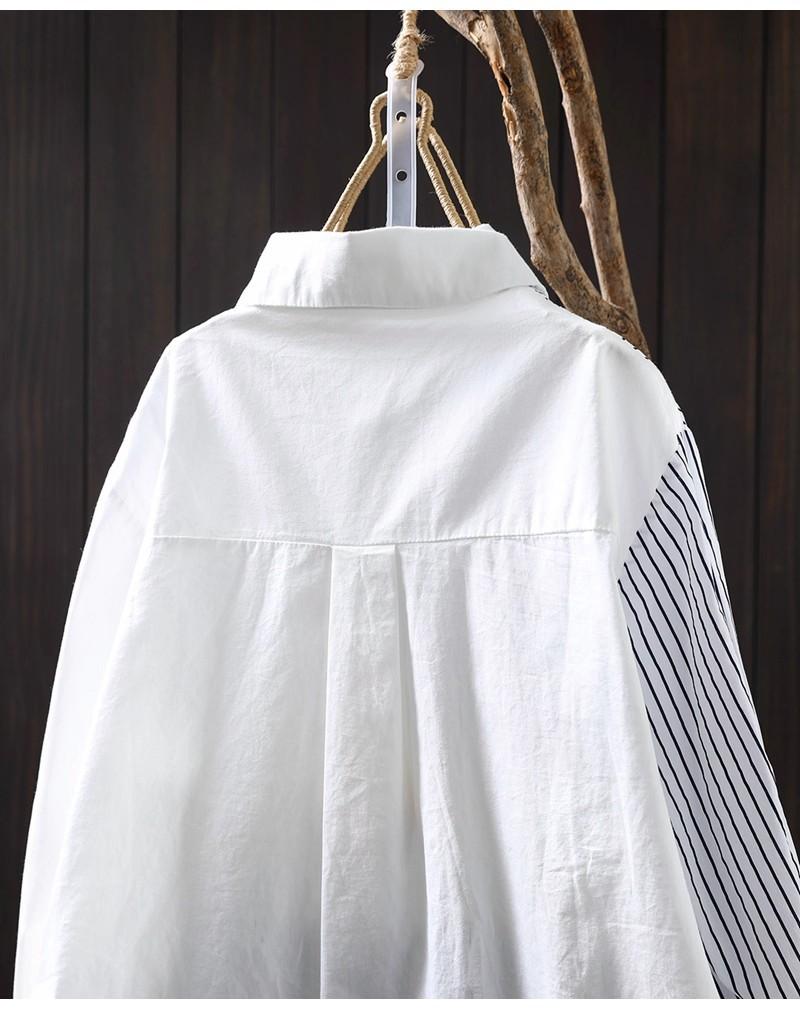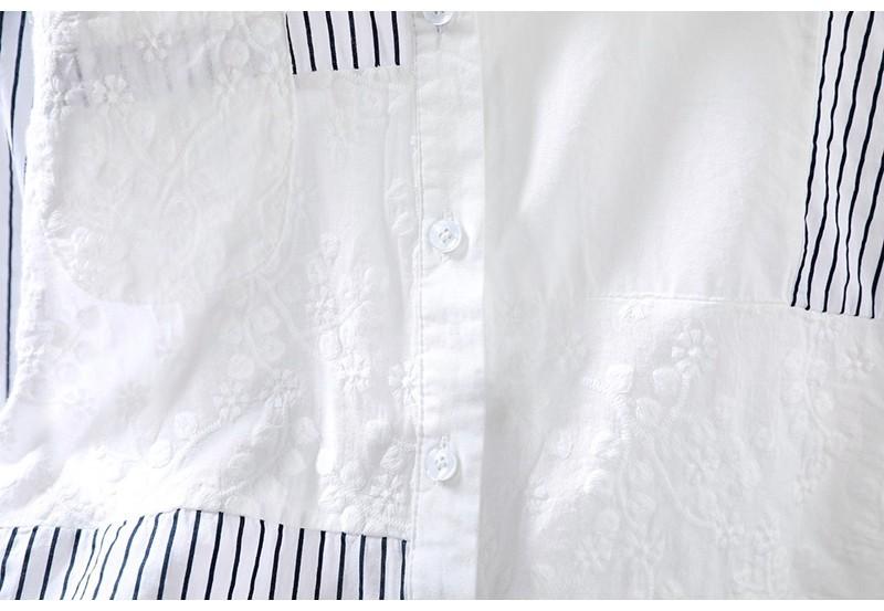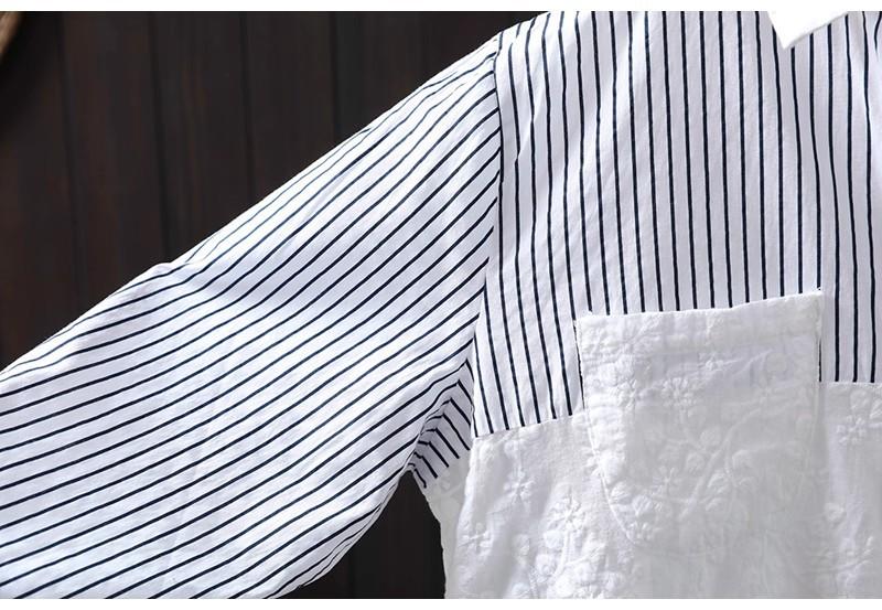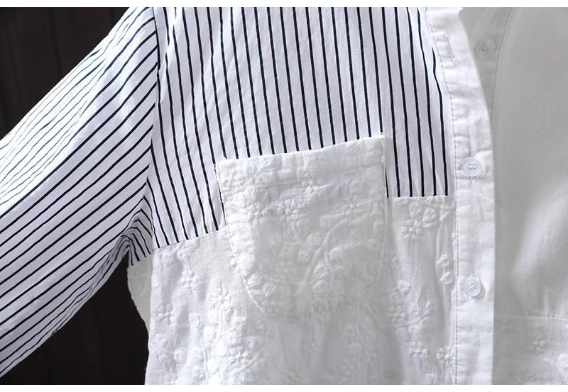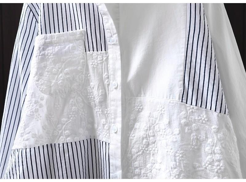 Camisa Rayada de Algodón Lino Jacquard Bordado Top de Mujer Manga Larga Holgada 2025 Nuevo Otoño Temperamento Reductor de Edad Camisa Blanca