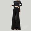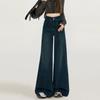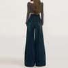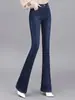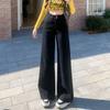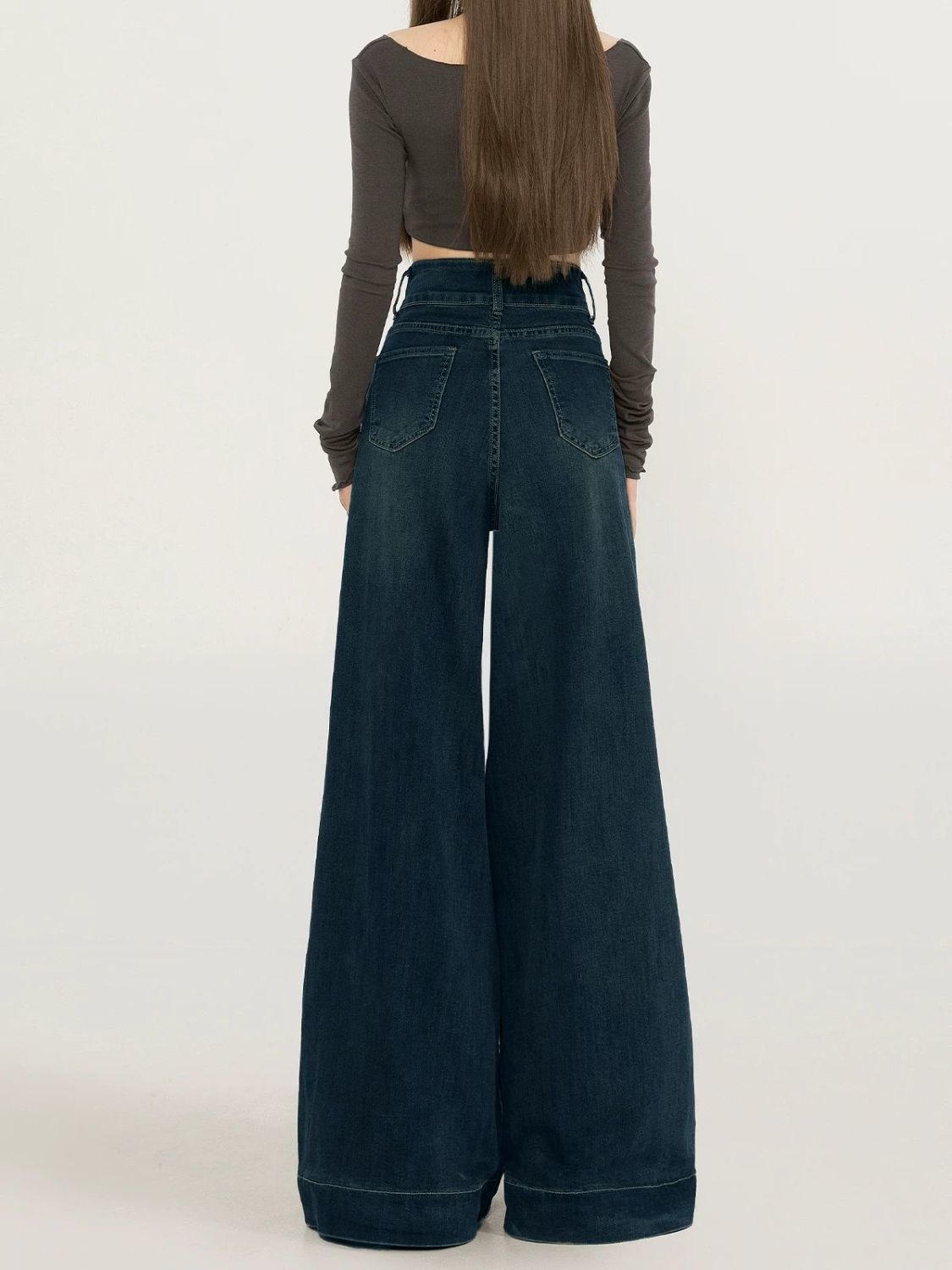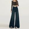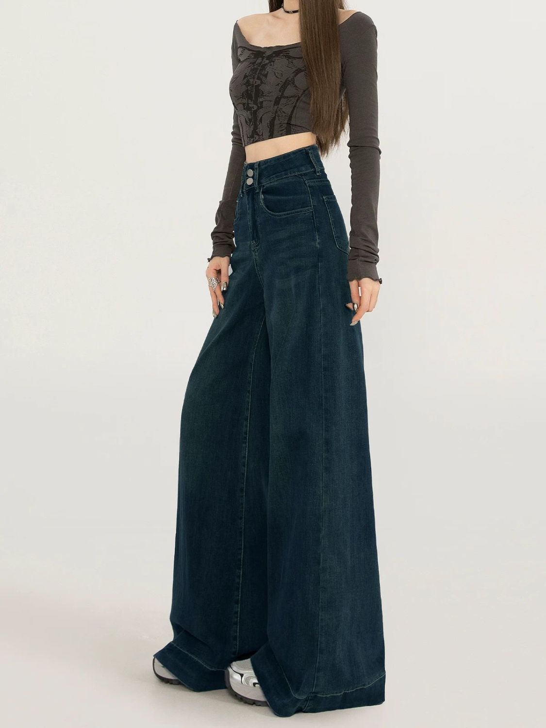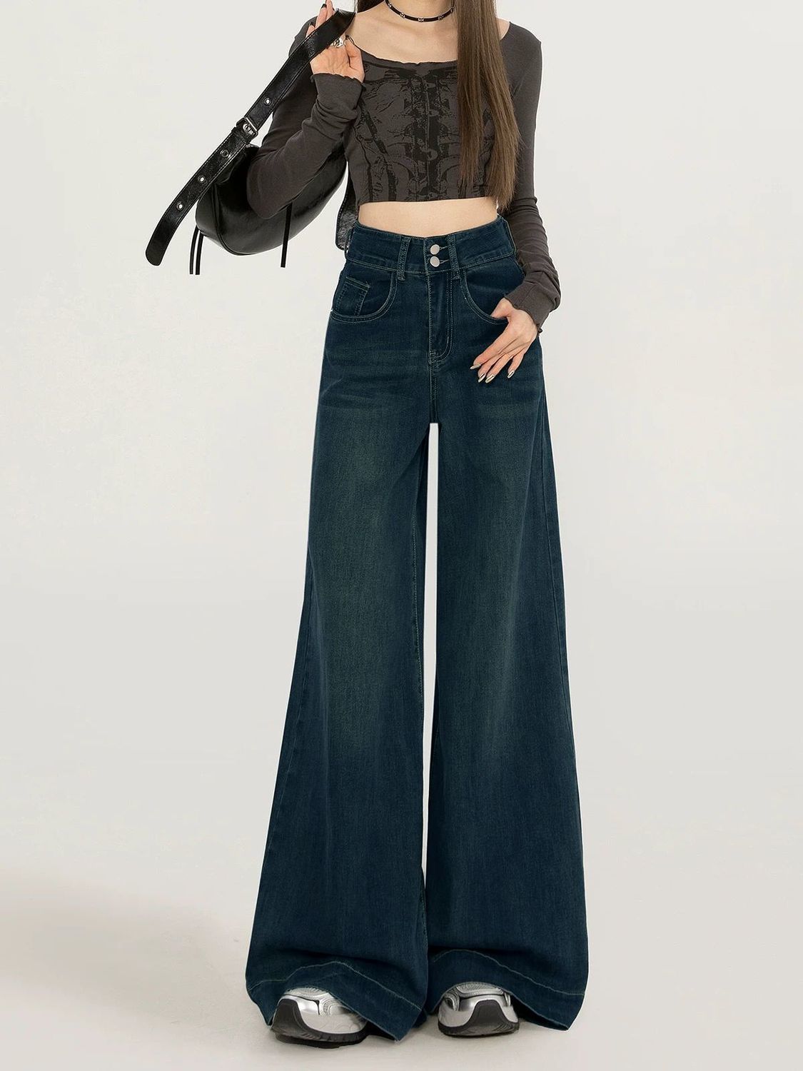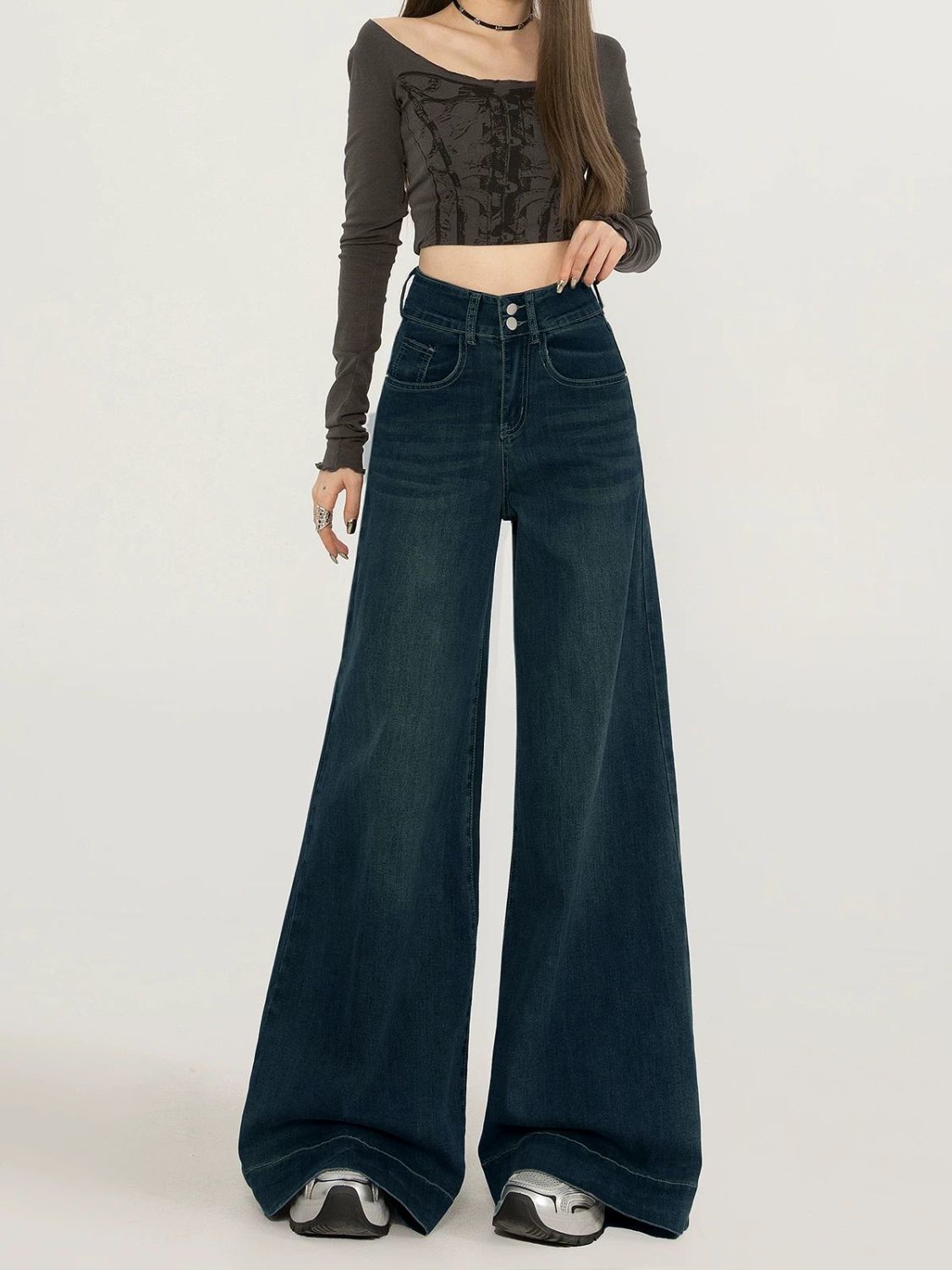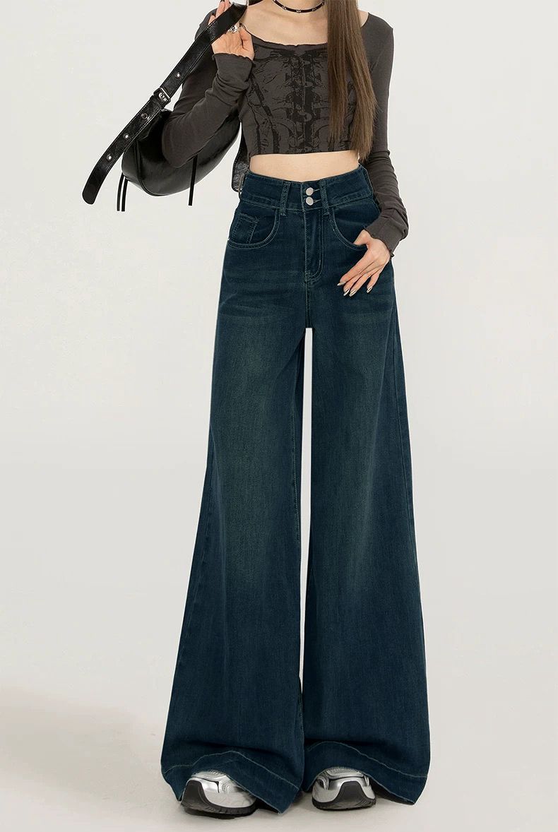 Jeans petite de talle alto y adelgazantes de dos botones para mujer 2025 elásticos versátiles ropa exterior pantalones de pierna ancha dobladillo suelto