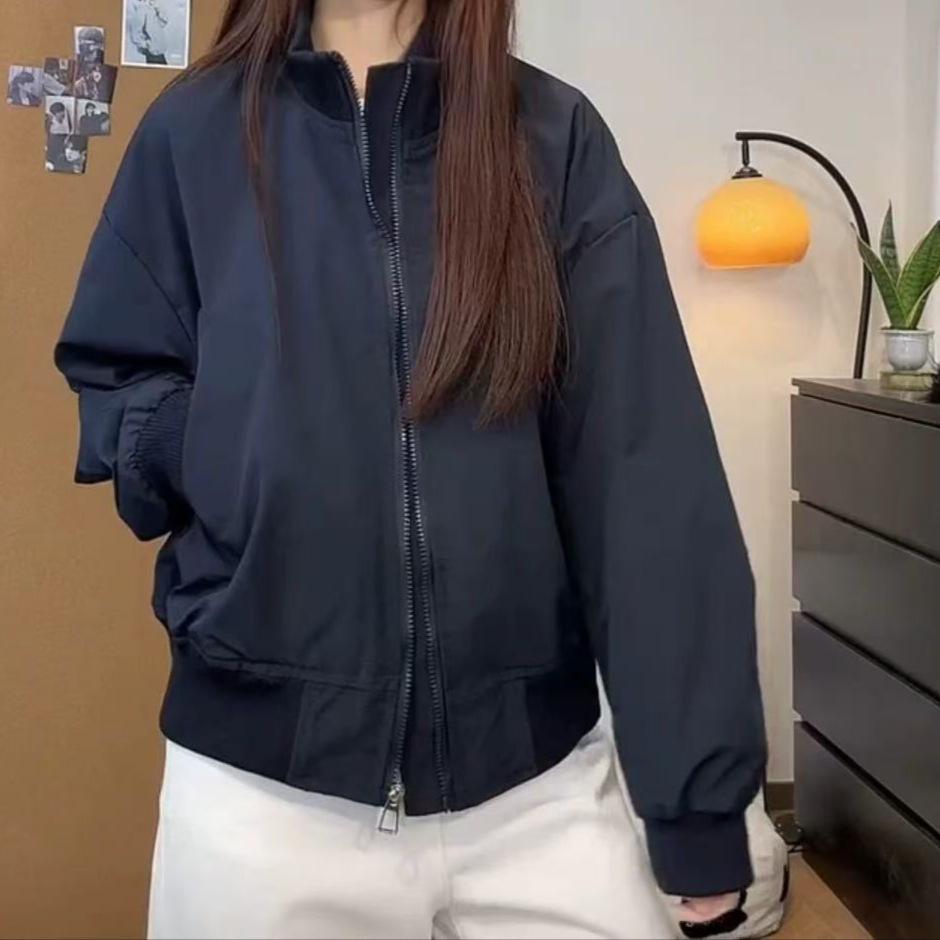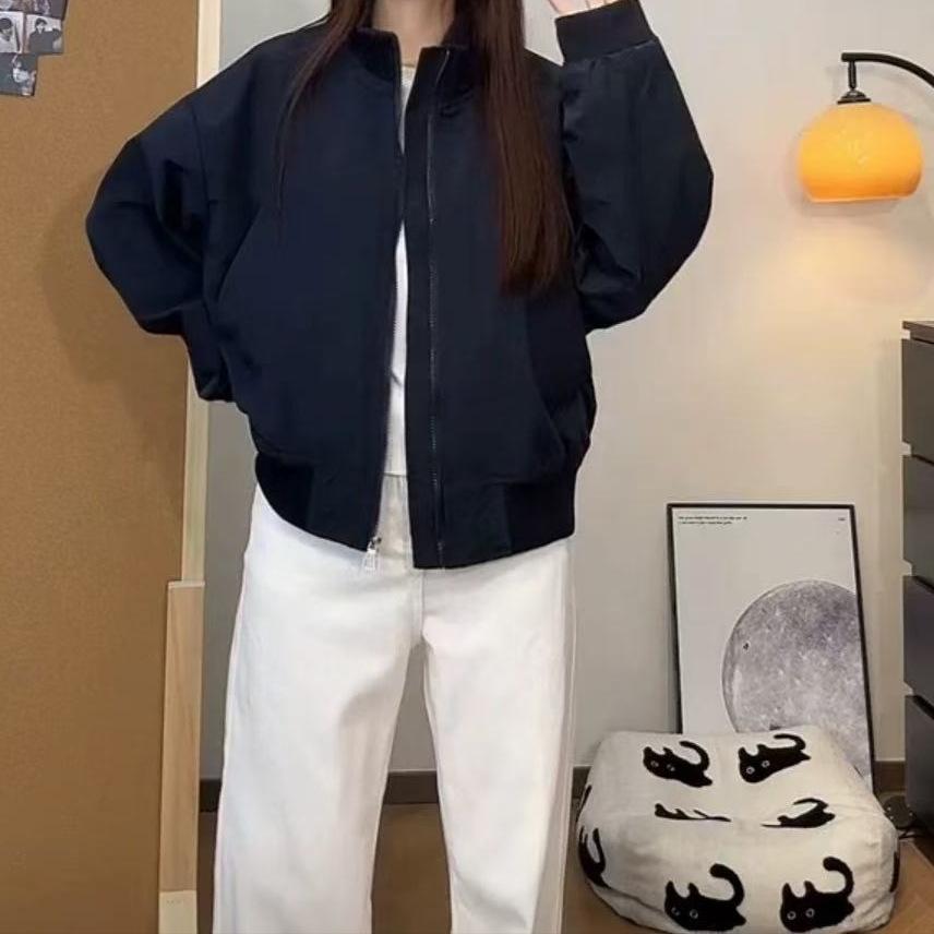 Chaqueta de béisbol sencilla para mujer, nueva de primavera y otoño, estilo coreano suelta, petite, versátil, casual, corta, abrigo, nueva tendencia