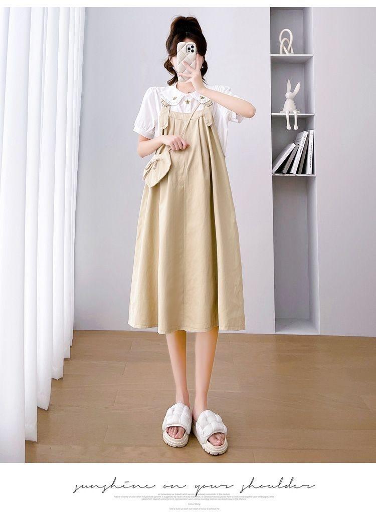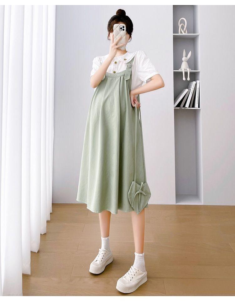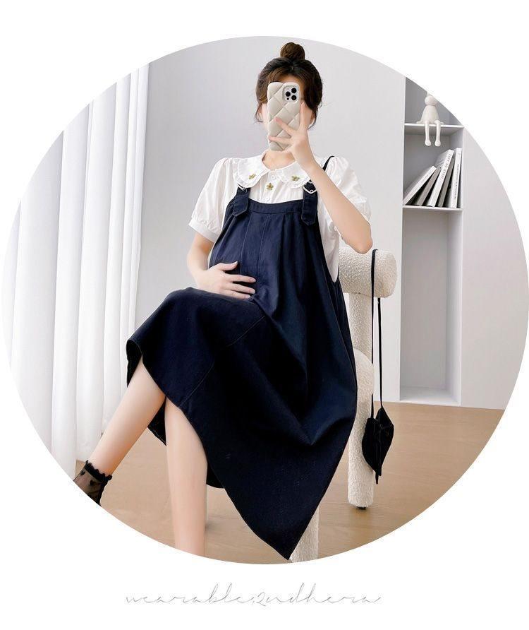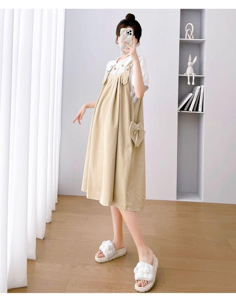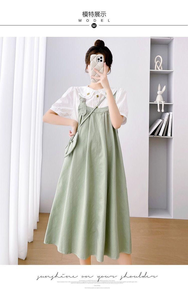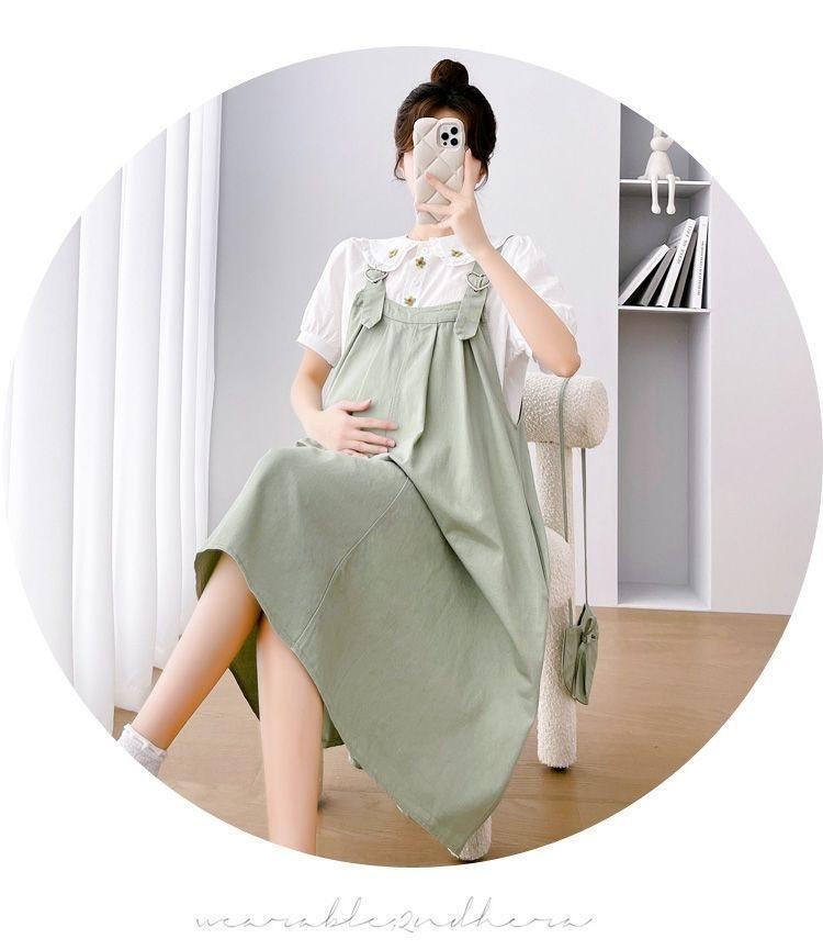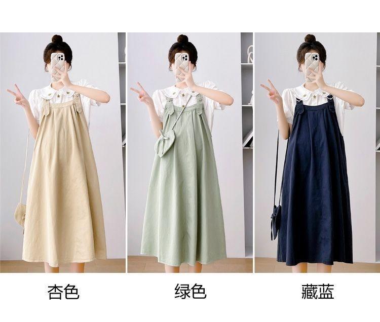 Vestido de Peto de Verano para Maternidad 2025 Nuevo Talla Pequeña Vestido Estilo Verano Set de Verano de Dos Piezas para Madre Embarazada