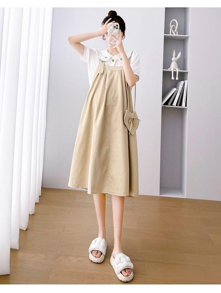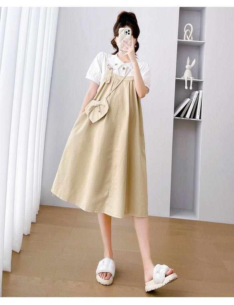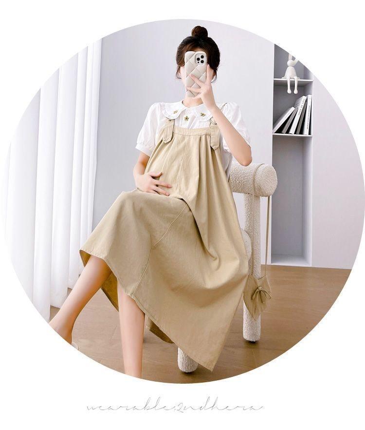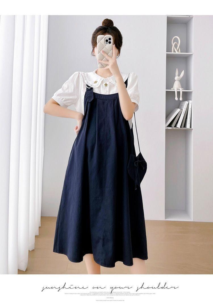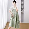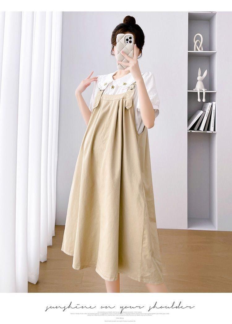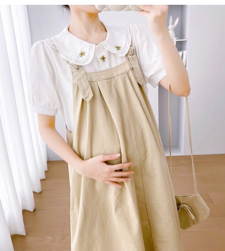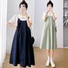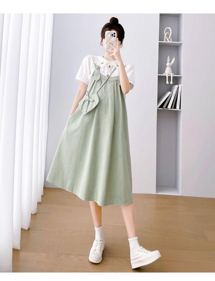 Vestido de Peto de Verano para Maternidad 2025 Nuevo Talla Pequeña Vestido Estilo Verano Set de Verano de Dos Piezas para Madre Embarazada