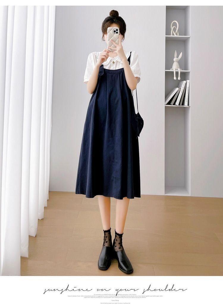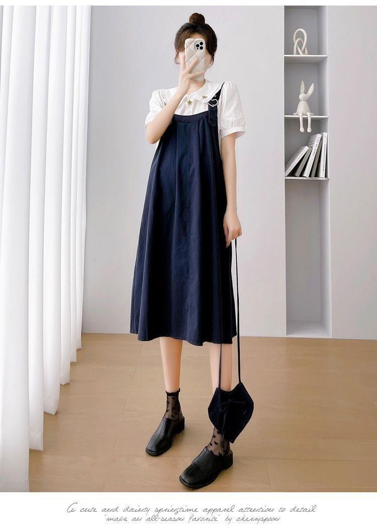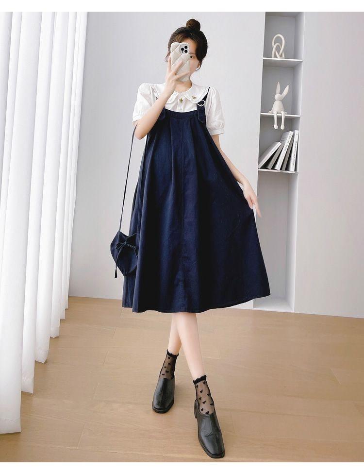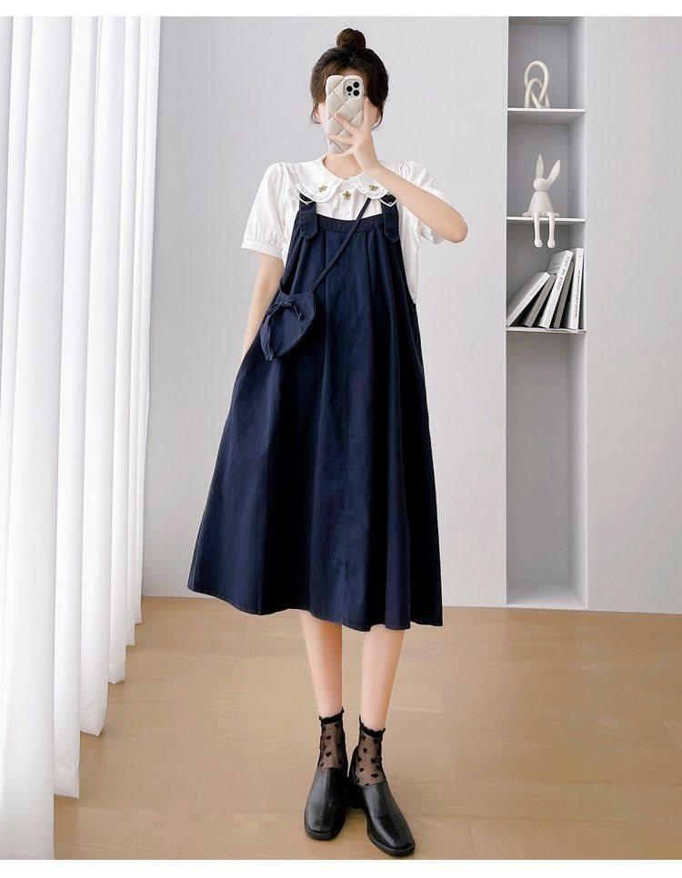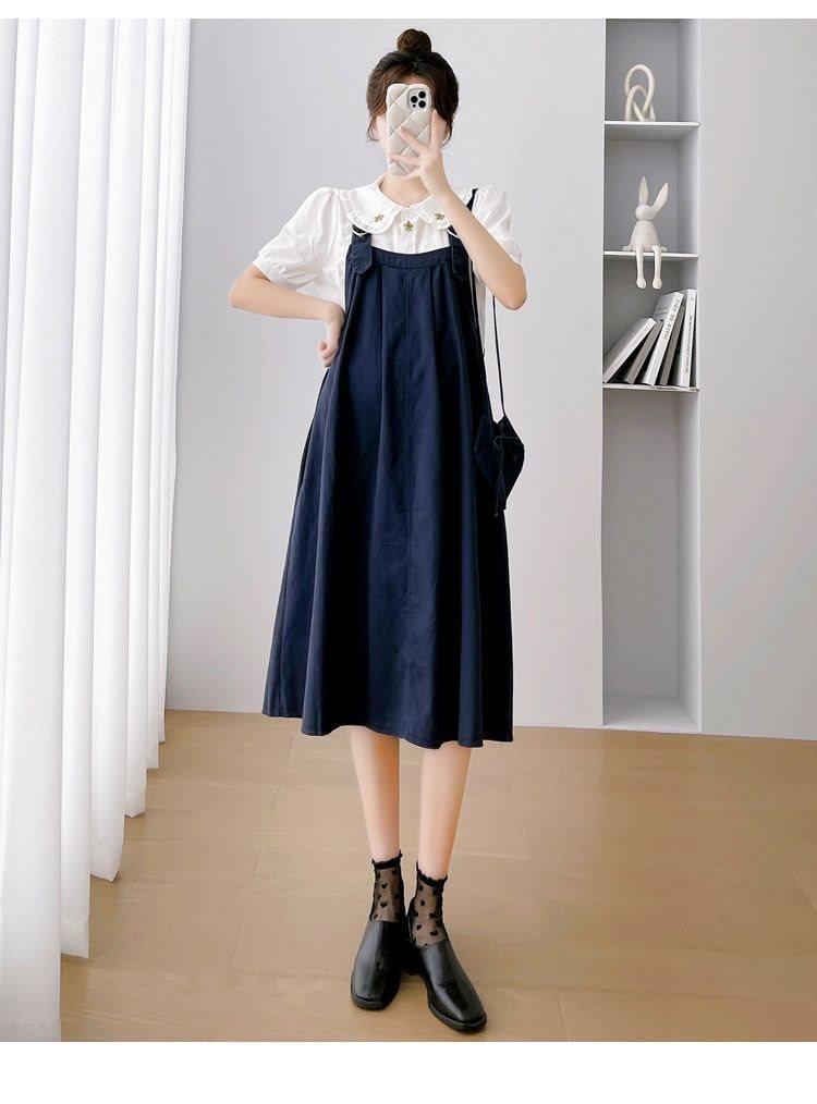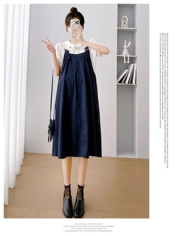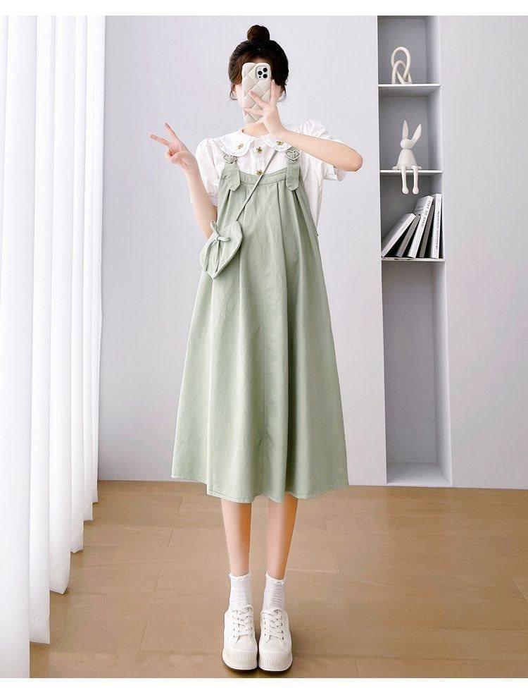 Vestido de Peto de Verano para Maternidad 2025 Nuevo Talla Pequeña Vestido Estilo Verano Set de Verano de Dos Piezas para Madre Embarazada
