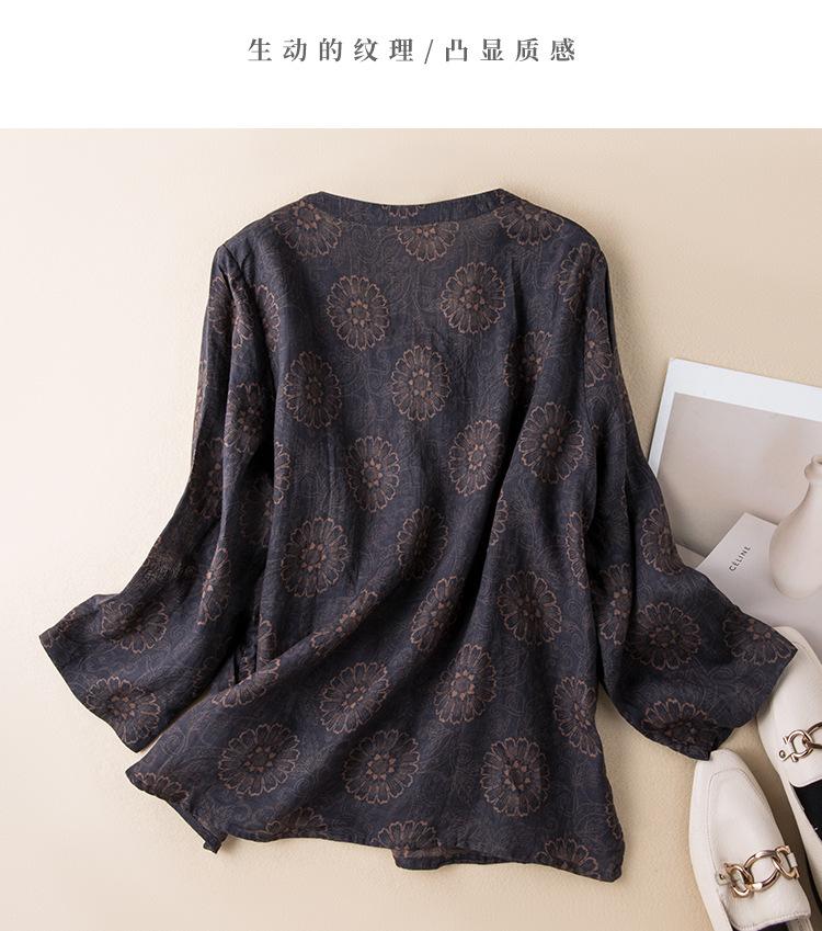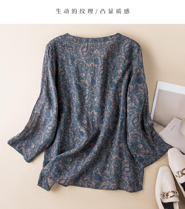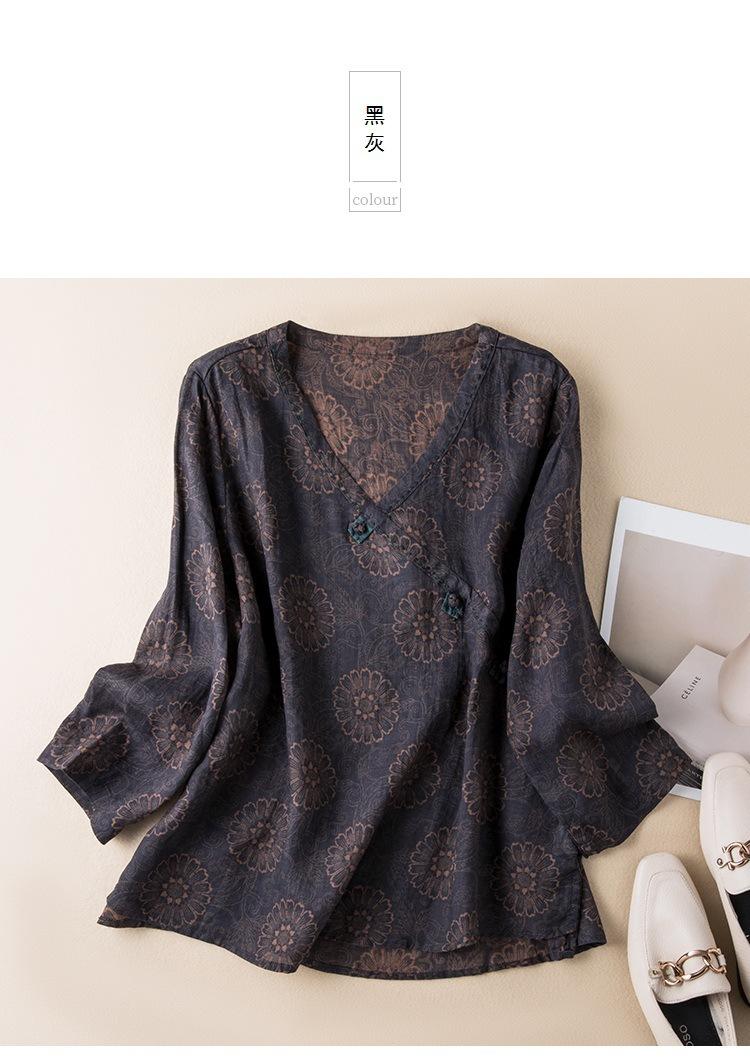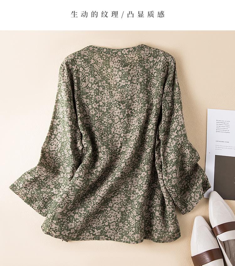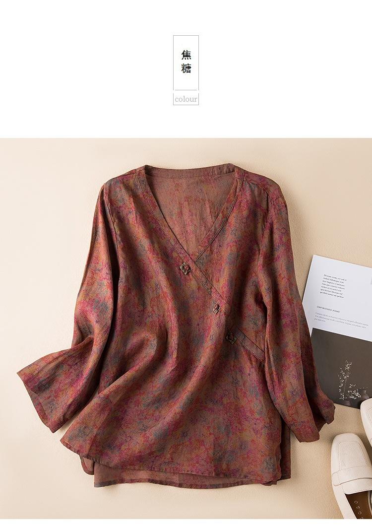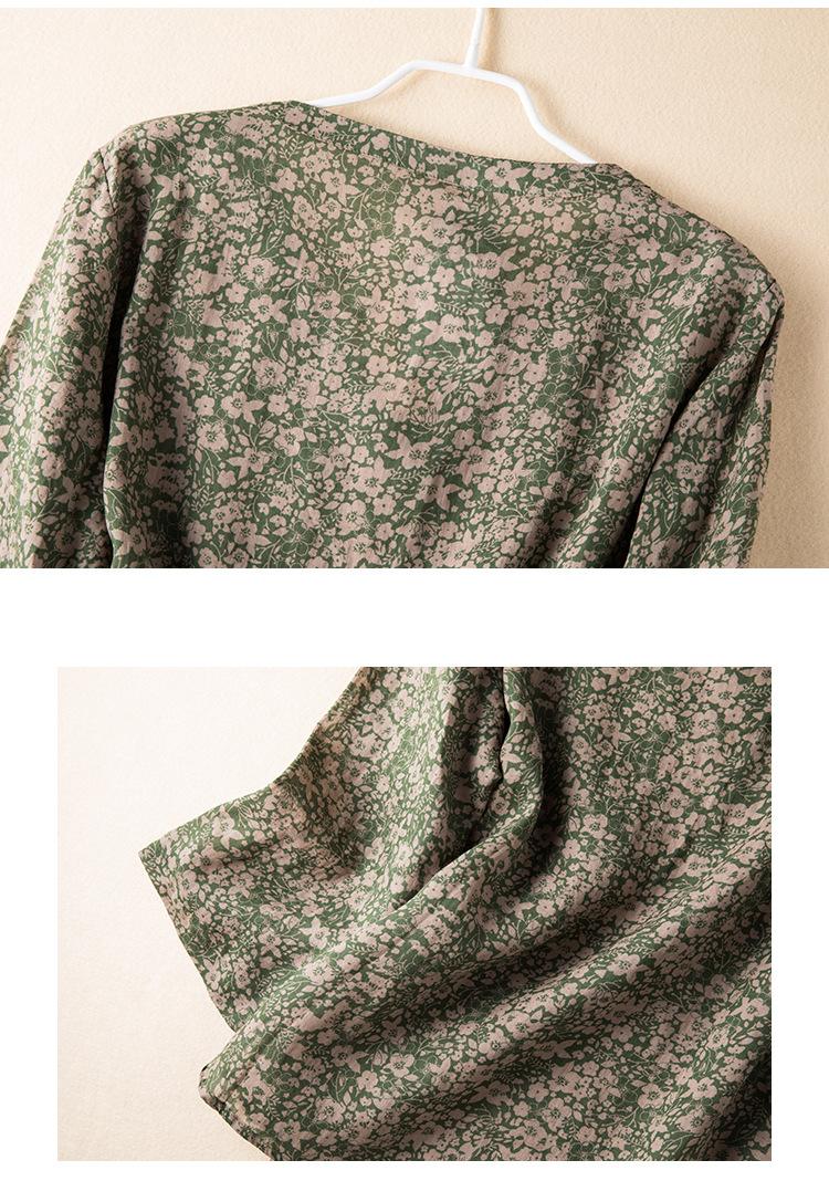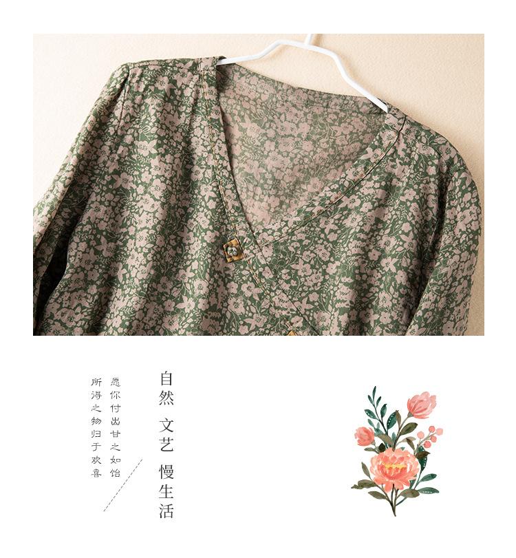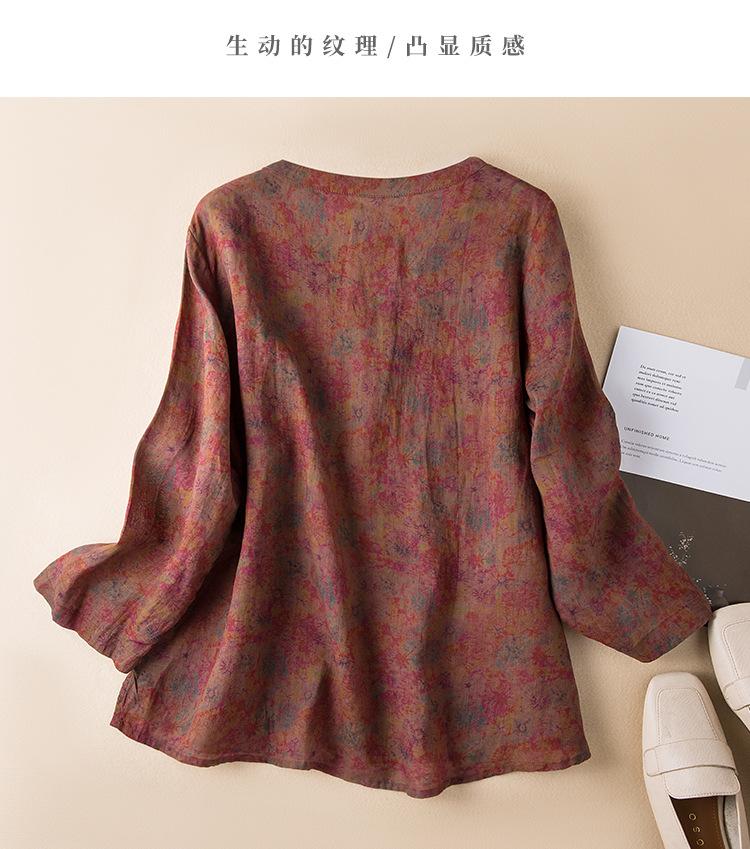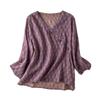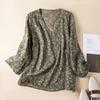 2025 Primavera Nuevo Simple Cuello en V Floral Vintage Literario Camisa Suelta Manga Larga Top Versátil Mujer