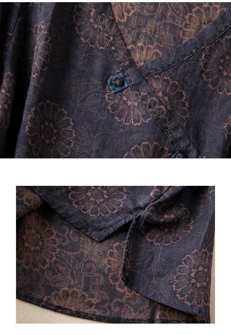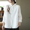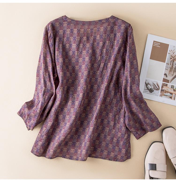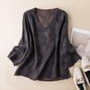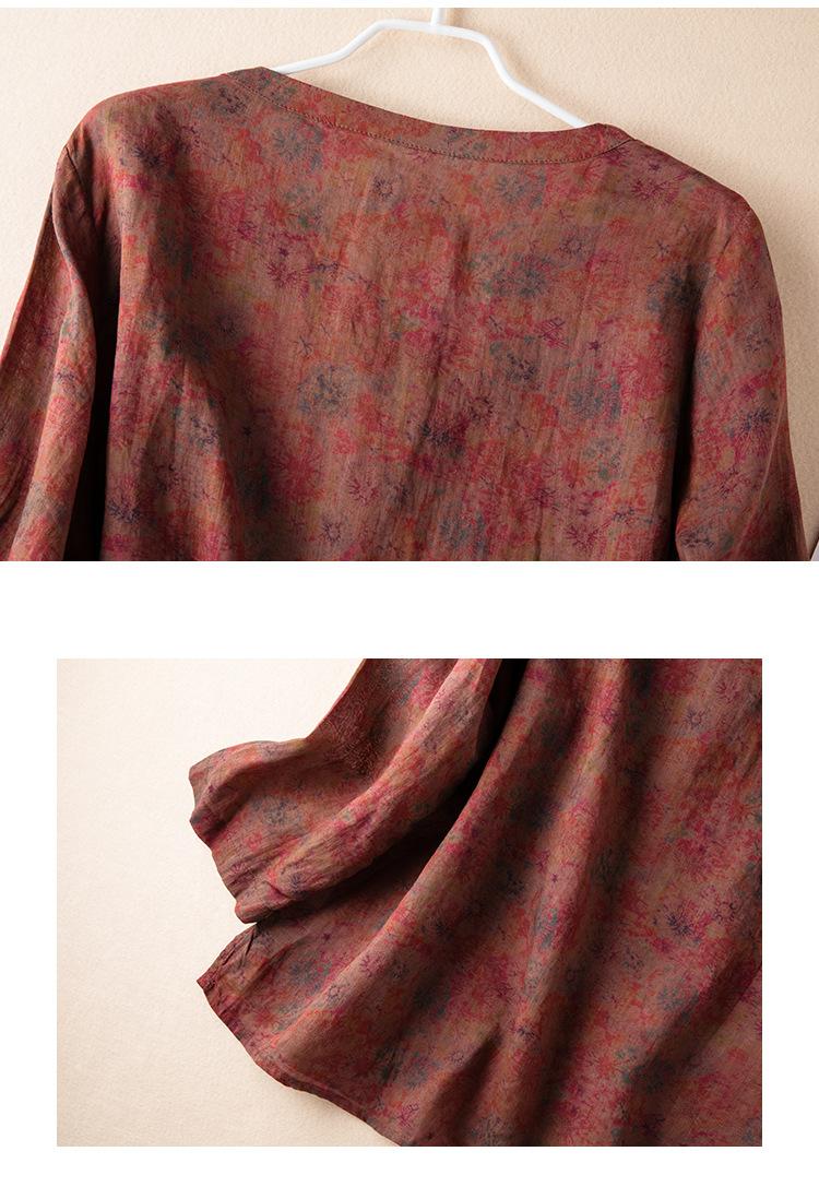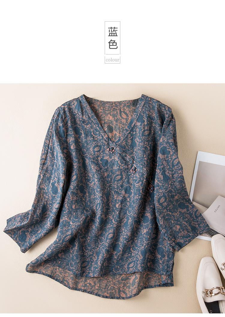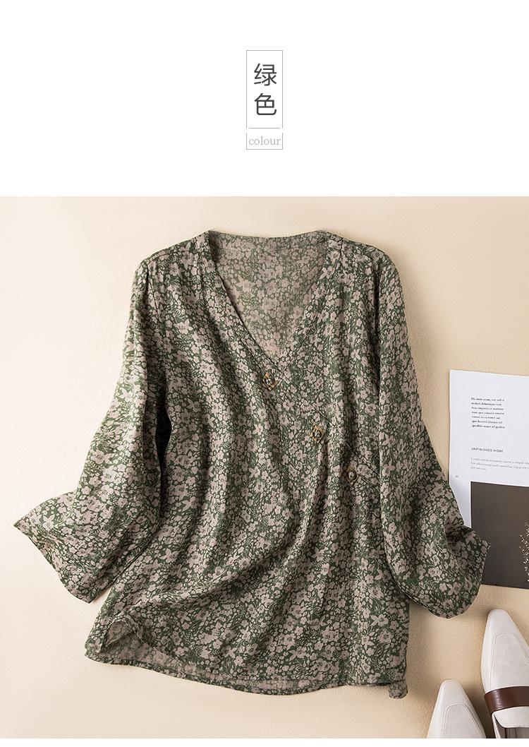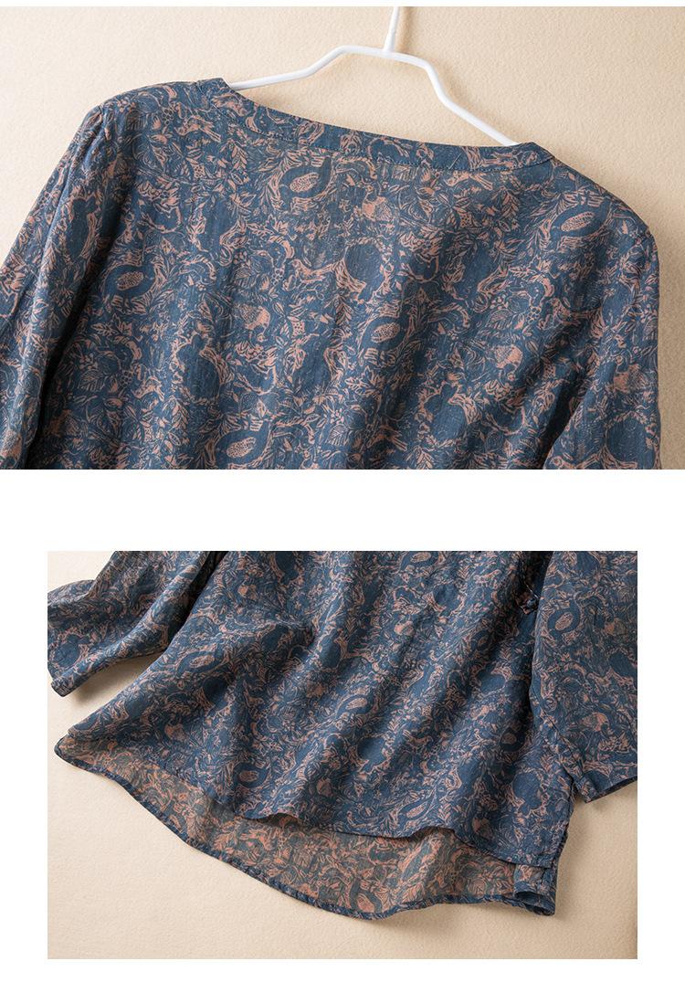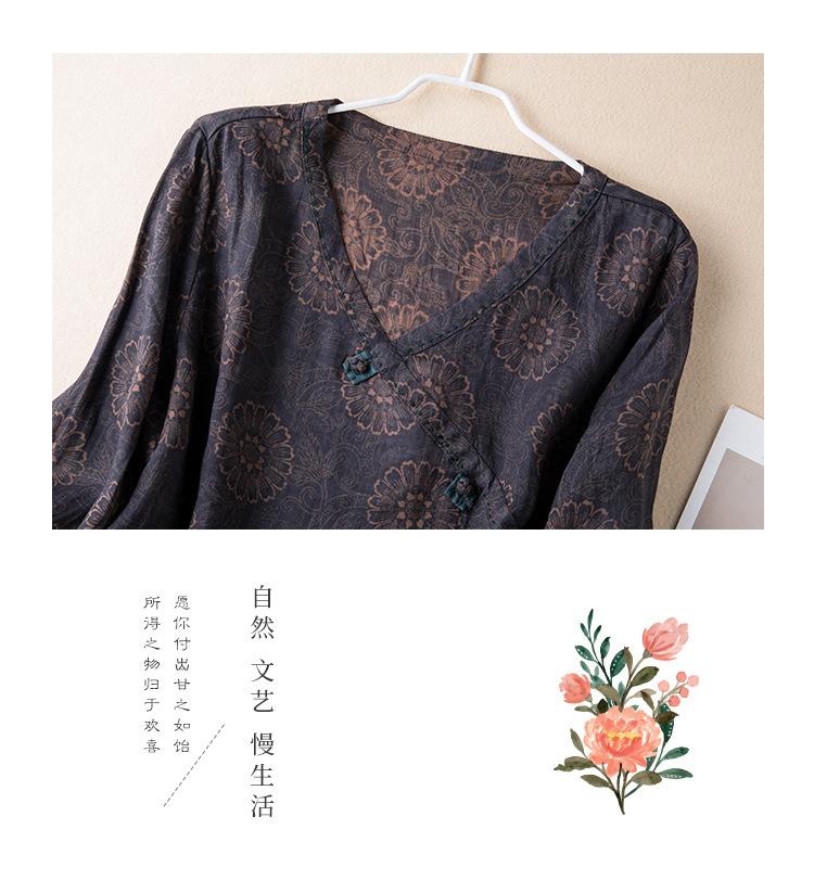 2025 Primavera Nuevo Simple Cuello en V Floral Vintage Literario Camisa Suelta Manga Larga Top Versátil Mujer